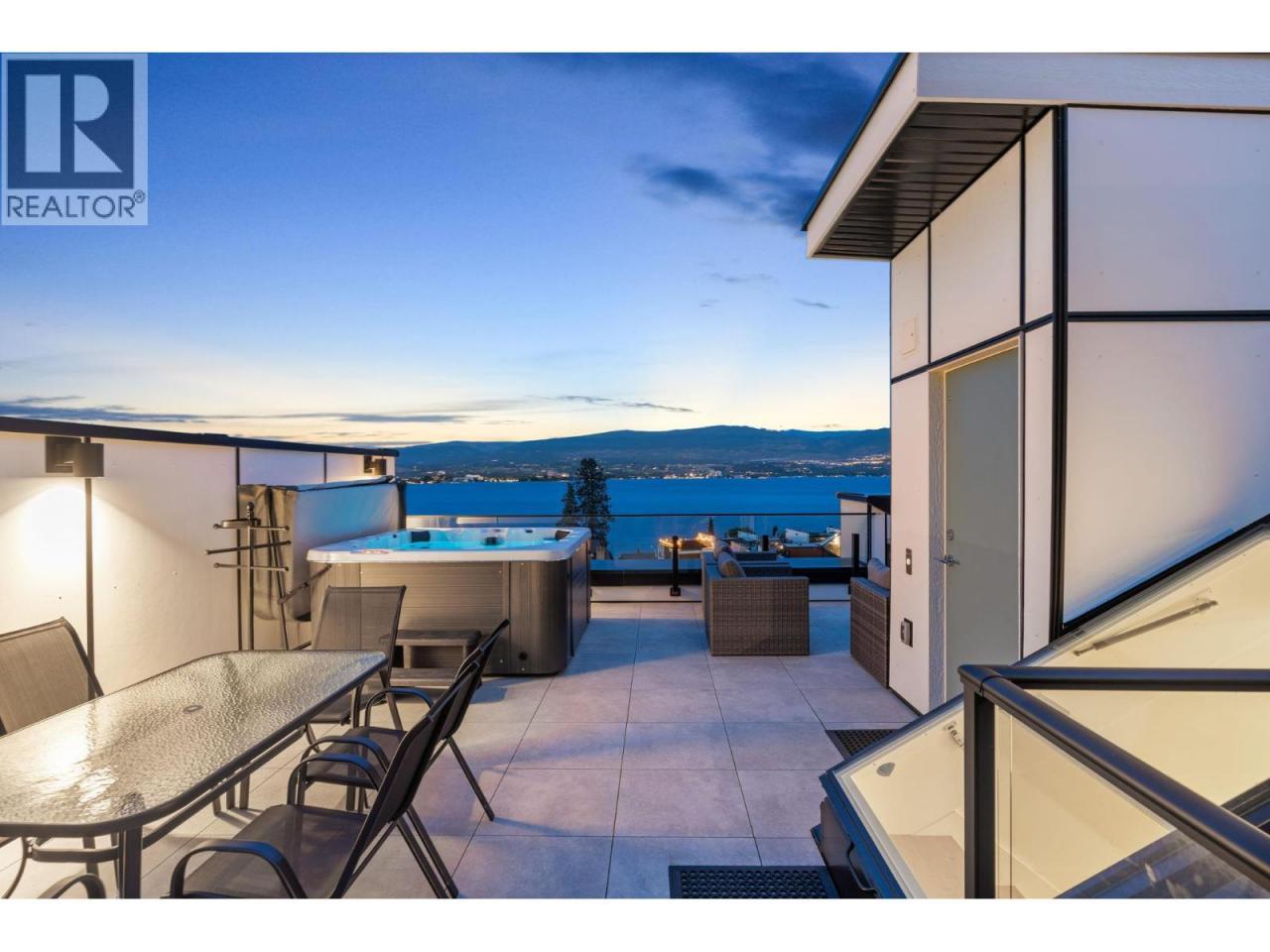 TURN KEY, FULLY FURNISHED, SHORT TERM RENTAL FRIENDLY, NO GST, NO PROPERTY TRANSFER TAX AND NO SPECULATION TAX!!! This is one of those opportunities that’s worth taking a closer look at: a near lakeside townhome with luxury finishings, offering refined modern living with stunning lake views from every level, while being located just minutes from downtown Kelowna. With one of the most desirable layouts in the complex, the U1 plan features 5 bedrooms PLUS a flex room, with a private elevator taking you between each of the 4 levels. Some notable features include an extra-wide layout, side-by-side double garage, open-concept design with exposed wood beams, private rear patio, high-end appliances and finishes throughout, and of course, a private roof top terrace. The terrace provides the perfect setting for entertaining with panoramic lake views, and is complete with a hot tub and built-in outdoor kitchen. Shelter Bay has quite the amenities: A private waterfront park is nearby, with a sandy beach, children’s playground, beach volleyball, a beach pavilion and picnic area as well as a wharf that is to be built. Once completed, the amenities centre will include a pool, hot tub, theatre, golf simulator, gym and open air sundeck on the upper level overlooking the lake, with a lower level complete with a lounge area, games room, and second sundeck. Upgrades to this townhome include a roof top built in BBQ and kitchen, hot tub, epoxy garage flooring & EV charger. (id:6769)