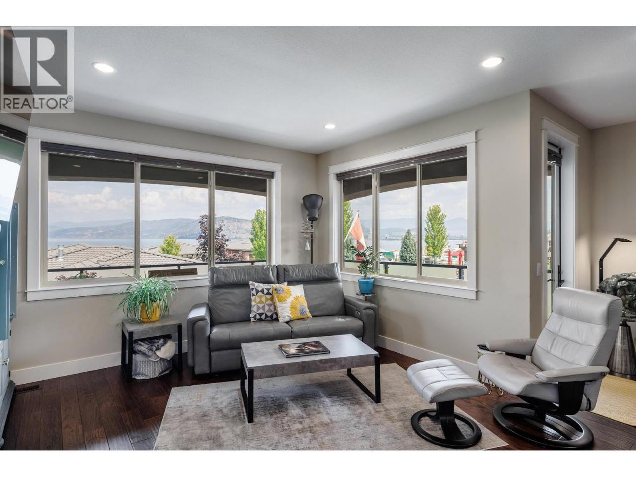 Welcome to West Harbour, a one of a kind community in West Kelowna. This lake view executive rancher home has almost too many benefits to list. Starting with the oversized lot at the end of a private lane, providing for extra off street parking (very rare for the community), with no neighbours on the one side of you, for a more expansive view. Located right beside the pool and hot tub amenities, a short golf cart ride to the private beach for the development, and there is even a club house, fitness centre and tennis courts. This home includes a titled 26’ boat slip in the marina for ease of access to the lake, and a short rip across to the downtown Kelowna Marina, to explore all that downtown Kelowna has to offer. The finishings in this home are first class, with engineered hard wood flooring, heated ensuite floors, quartz counters, soft close plywood boxed cabinetry with ball bearing tracks, a tile roof you’ll virtually never have to worry about, and there is even a 2 bedroom LEGAL suite as well which is extremely rare for the area. The suite is wheel chair accessible with a rubberized pathway, the house features 200amp service, and there are gas lines for bbq’s or fire pits both on the deck and lower patio; nothing was overlooked in the design of this home. There is no Property Transfer Tax or Speculation Tax applicable, and the lease has been prepaid to 2107 with the HOA managing a legacy fund to renew the lease at that time. (id:6769)