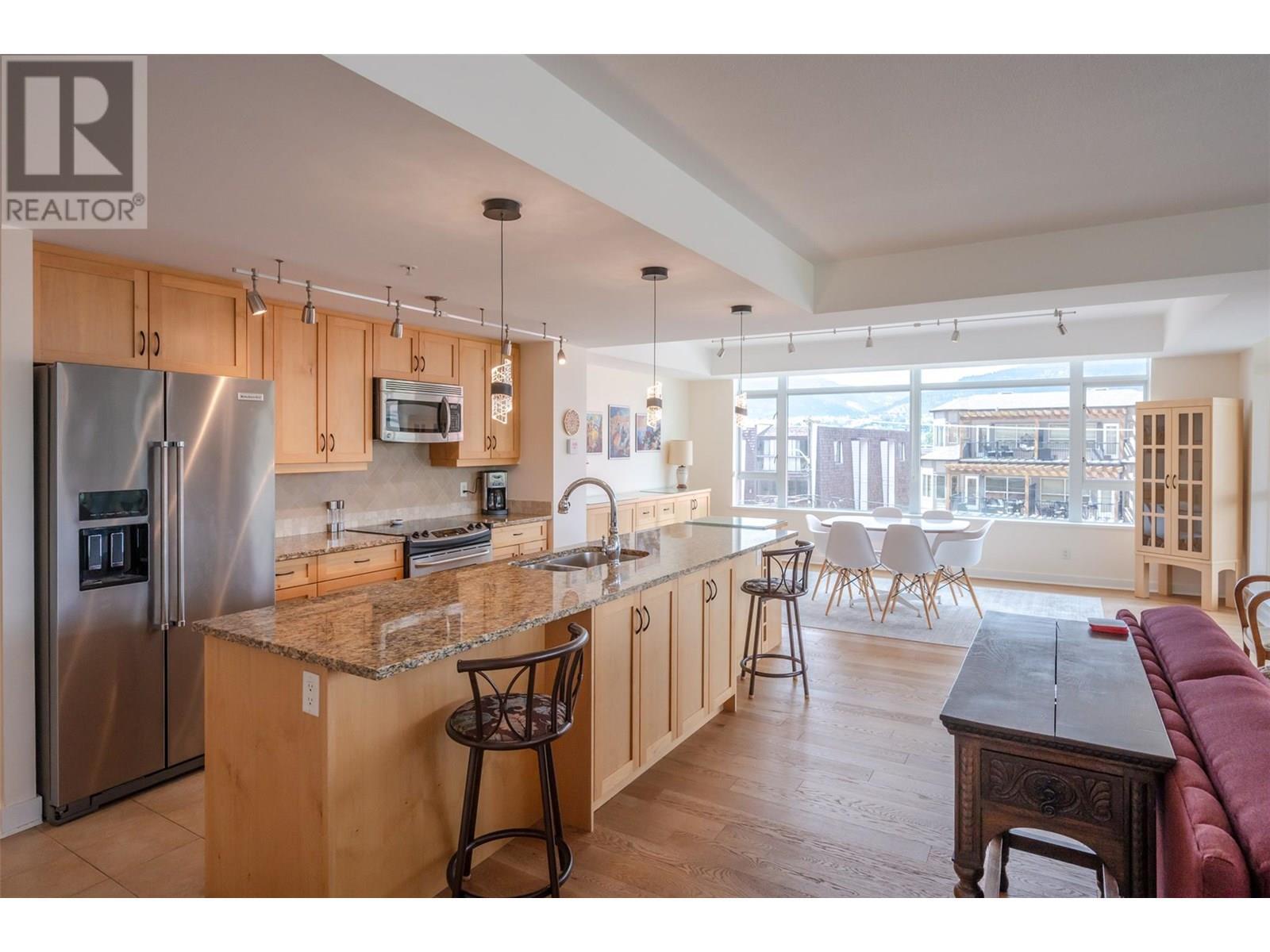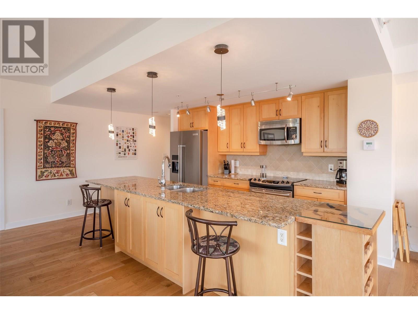 Elevated living with expansive lake and mountain views! This spacious and naturally bright home features an open concept design with large windows facing north and west. The oversized kitchen island and generous dining area are ideal for entertaining. Enjoy 2 outdoor living spaces; the main deck off the living area showcases stunning views and inspiring sunsets. The primary bedroom's private balcony allows for peaceful mornings. The walk-in closet and ensuite with tile shower and deep soaker tub offer a spa-like retreat. This prime location is steps to the beach, parks, Farmers Market, restaurants, boutique shopping and entertainment. Spend an afternoon exploring wine country, boating, hiking or biking; all of which is top-tier! Complex amenities include 2 exercise rooms, sauna, putting green, outdoor pool, hot tub, 3 amenity rooms and 2 guest suites. Lakeshore Towers offers an exceptional Okanagan lifestyle. Call today for a private viewing of this impressive property. (id:6769)