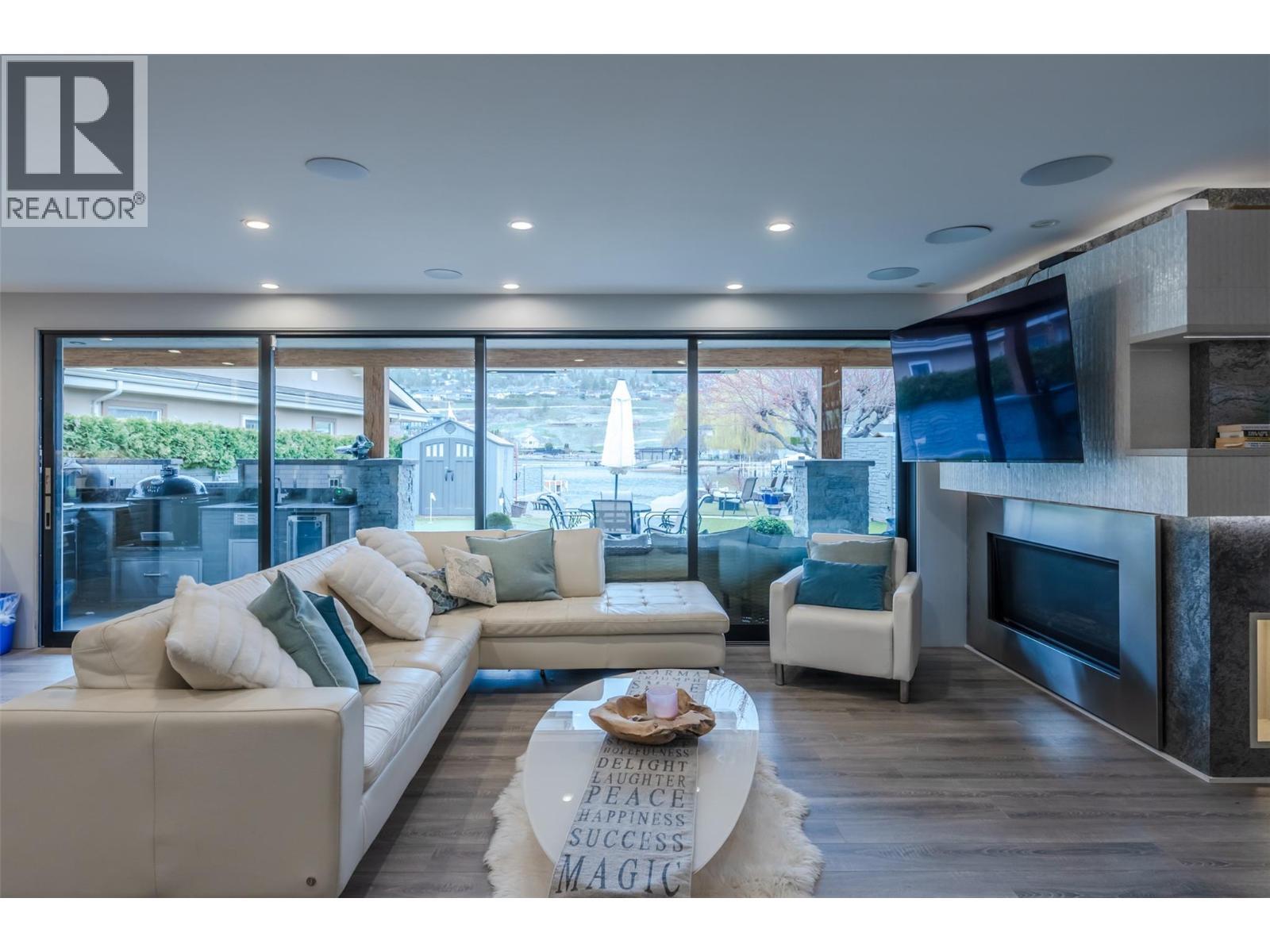 Home has been beautifully re-built from the studs out. Fantastic location overlooking an idyllic waterway and the vineyards of Quails Gate and Mission Hill. When people dream of an Okanagan lifestyle this is what they picture. Full sliders open up to the easy-care backyard where the lakeside and your private boat dock awaits. An outdoor kitchen completes the setting and allows for extended outdoor enjoyment with the built-in ceiling heathers. Top of the line appliances throughout and an open concept living area. Main bedroom ensuite complete with steam shower and over the top multi-function toilet. Extra room is located in the fully finished separate garage complete with its own bathroom, has not been included in the sq footage. (id:6769)