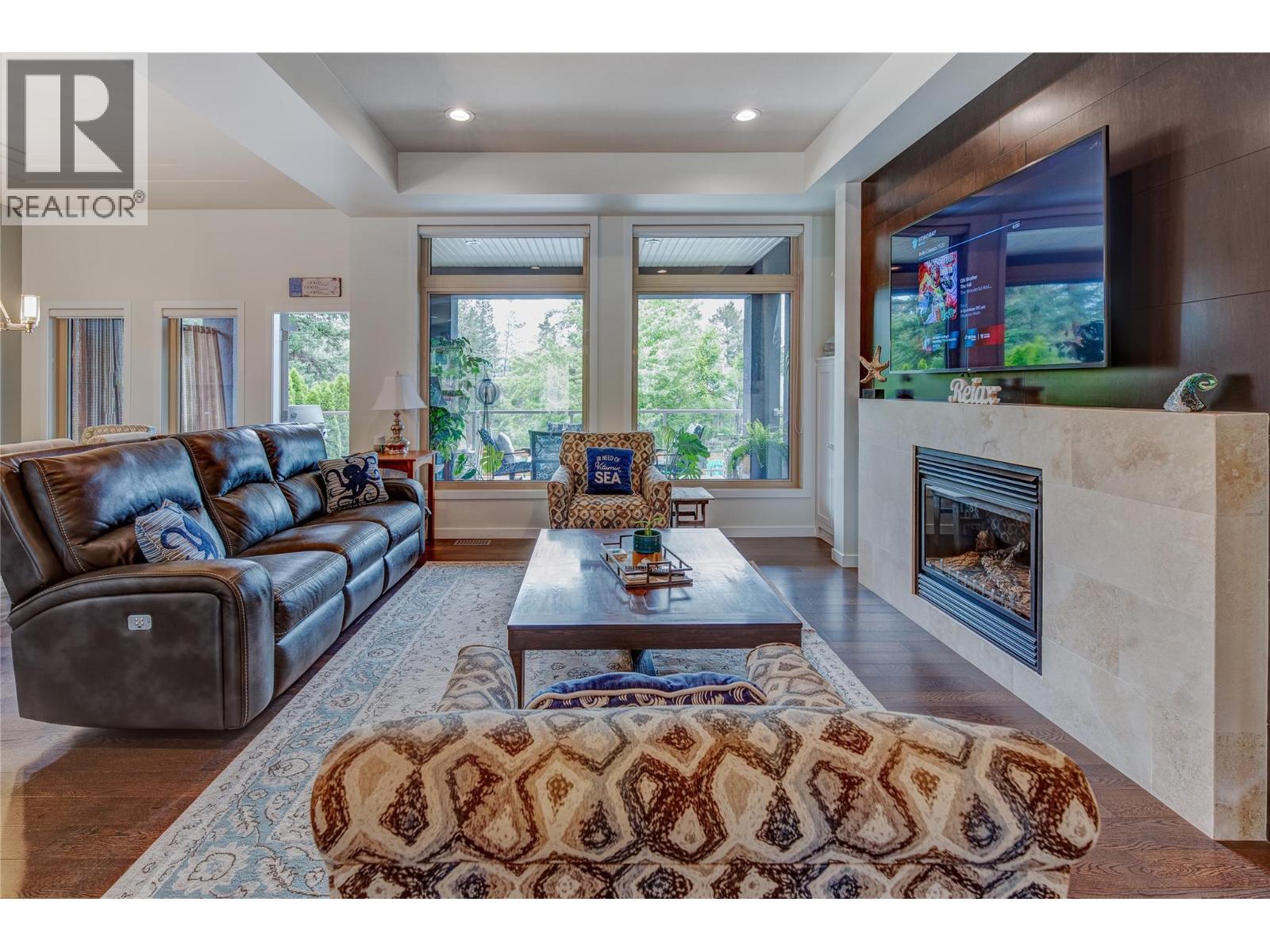 Beautifully UPDATED Walk-Out Rancher at Tallus Ridge. Private, Sun-drenched, Back Yard Oasis featuring a 1 piece fiber glass inground pool with lots of deck to lounge on! Open the front door & step into a ""Show Home"" decorated with an ""up to the minute"" color palette, feature walls, built in shelving & quartz counter tops throughout! Stunning Chef's kitchen is a joy to work in. Large Island with gas stove/oven with hood fan. Loads of cupboards, drawers, & eating bar. Dining Room has trayed ceiling & built in hutch. Living room also has a decorative ceiling & showcase travertine titled fireplace with gorgeous, solid wood wall feature. Primary Bedroom has spa-like ensuite: double sinks, corner tiled shower & separate tub, w/i closet and access to the deck. You will love the roomy Main Floor Laundry with a closet, cupboards, counters, and a sink. Large covered deck on main level overlooks the pool & patio. A curved staircase leads you downstairs to a massive recreation/family room with a 2 sided fireplace and wet bar. Loads of room for and outdoor kitchen. Bring your Pool Table! 2 more bedrooms! The storage room could become a Media Room or gym! More covered patio on the lower level to maximize your Okanagan lifestyle. Oversized garage has a epoxy floor, work bench, cabinetry, & lots of mezzanine storage. Lots of parking on driveway and room for an RV. 2 garden sheds in rear yard for pool equipment and garden tools. Minutes to golf, wineries & shopping. (id:6769)