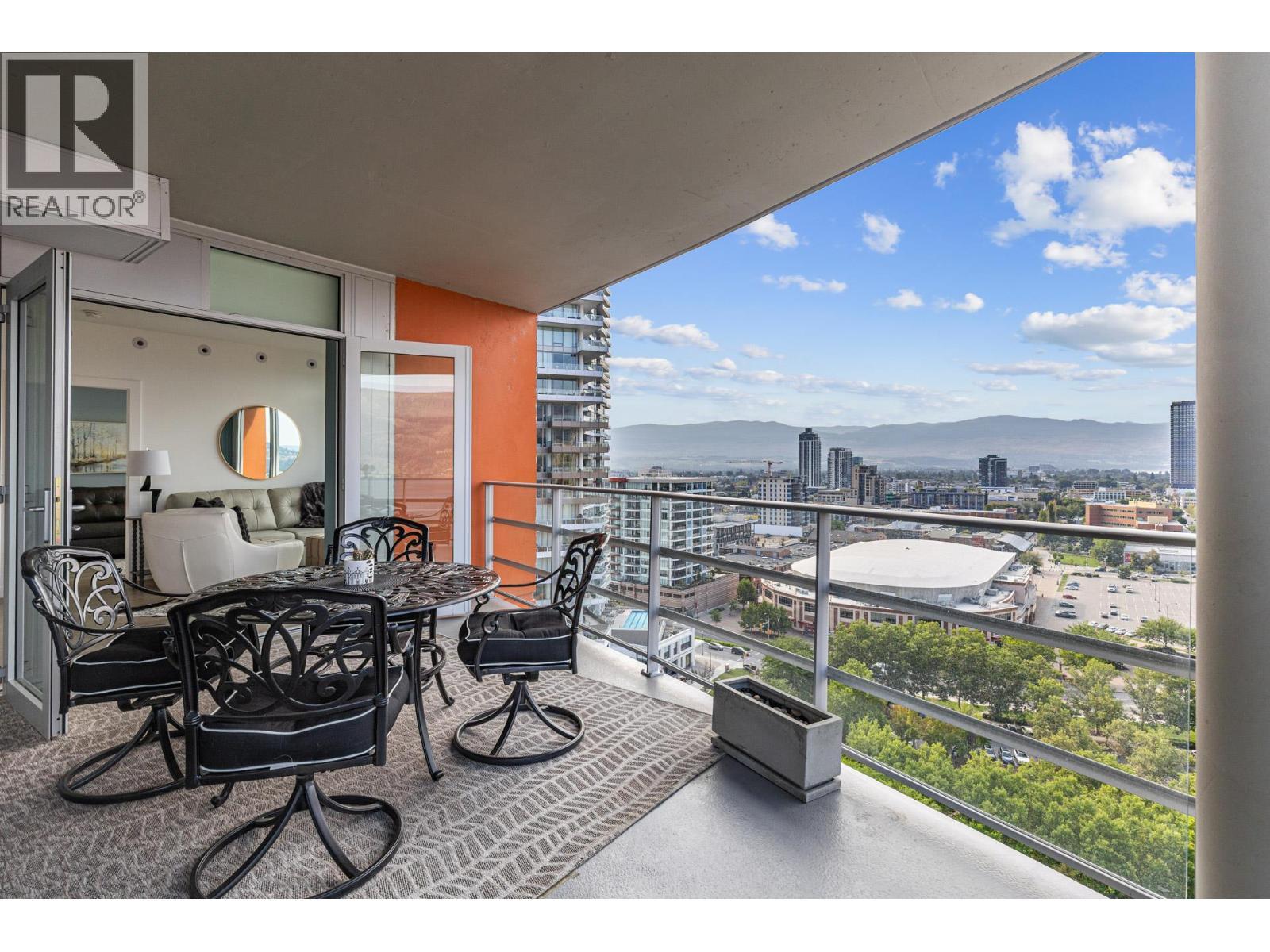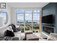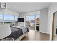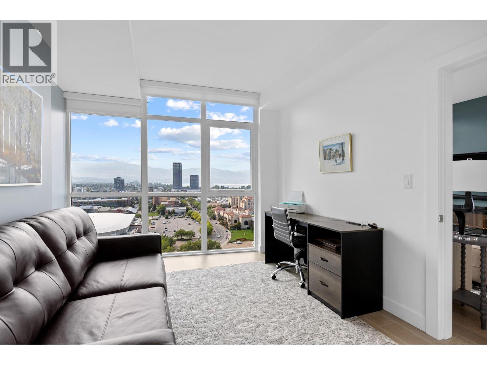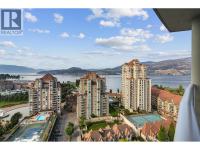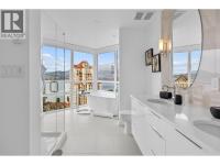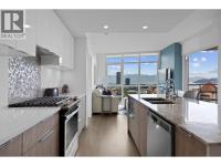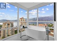 Experience elevated luxury living in the heart of downtown Kelowna. Soaring above the city on the 17th floor, this stunning 2 bed/2.5 bathroom home showcases west-facing views of Lake Okanagan, the city skyline, and evening sunsets-captured through dramatic floor-to-ceiling windows. Open the double doors to your wrap-around entertainer's balcony. The gourmet kitchen impresses with a waterfall island, stainless steel appliances including a gas stove, two-toned cabinetry, and an upgraded pantry with built-in storage. The primary retreat offers balcony access, custom walk-in closet storage, and a spa-inspired ensuite. A bathtub lover's dream-indulge the stand-alone soaker tub while taking in the breathtaking views, or refresh in the waterfall shower. Dual vanities with designer sinks complete the spa-like feel. The second bedroom also features a 4-piece ensuite, walk-through closet, and additional upgraded storage. Additional highlights include a cozy electric fireplace, in-suite laundry, 2 parking stalls and 1 storage locker. Residents enjoy resort-style amenities: fitness centre, social and BBQ areas, and a year-round plunge pool-heated in winter, cooled in summer. All this in a prime downtown location, just steps to the beach, boutique shops, award-winning restaurants, breweries, concerts, and Kelowna's vibrant cultural scene. 2 pets welcome with restrictions. (id:6769)