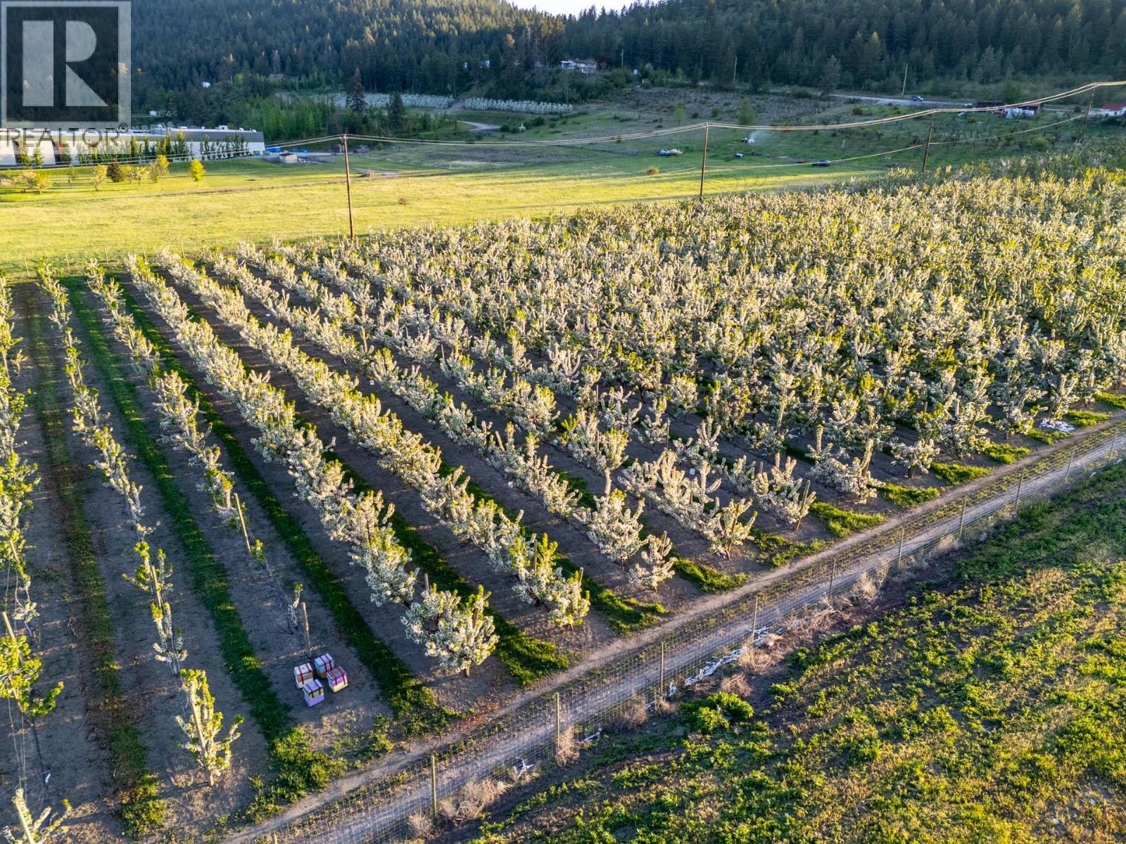 9.85 acre cherry orchard with Highway 97 Frontage and in City of Kelowna Limits, just minutes from the core of Lake Country. Newer plantings but in full production, this orchard presents a great opportunity for an orchardist/farmer to add to their portfolio. The property is deer fenced and has been well maintained. There is no lease on the property, meaning an orchardist can come in and utilize the next crop. The four bedroom, two bathroom home has two kitchens and is ideal for a rental or for farm worker accommodations (its current use). Property is serviced by municipal water. The land is agriculturally zoned and in the ALR. Sprinklers are micro-sprinklers. Orchard is planted to a mix of Staccato, Skeena, Sentennial, Regina, and Santina planted in 2018-2020. Good rootstocks with mix of Mazzard, Gisela 6 / 5. Some sweetheart nursery stock planted. Contact agent for precise information. Access via Shanks road and by appointment only. (id:6769)