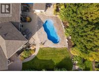Located in one of Kelowna's most sought-after communities just minutes from downtown, this award-winning home offers the perfect blend of elegance and lifestyle. The backyard is a true resort-style retreat featuring a sparkling saltwater pool, expansive stamped concrete patio, and multiple lounging areas. Beyond the pool, the property offers a large, lush yard with lawn and mature vegetation, a rare combination that provides space to play, entertain, and relax. Inside, soaring ceilings and hardwood flooring anchor an open-concept design with a Westwood custom kitchen, granite counters, oversized island, and professional-grade appliances. The dining and living areas, complete with a feature gas fireplace, flow seamlessly to the outdoor lounge. The king-sized primary suite includes a spacious walk-in closet, heated floors, double vanities, custom shower, and soaker tub. A second bedroom with wall bed/desk and private entrance is ideal for guests or a home office. The lower level offers a large recreation space, full wet bar, office, media/games room, additional bedroom, and bath. Additional features include a triple tandem garage, owned geothermal system, and a beautifully maintained, pet-friendly community with pathways and ponds. (id:6769)