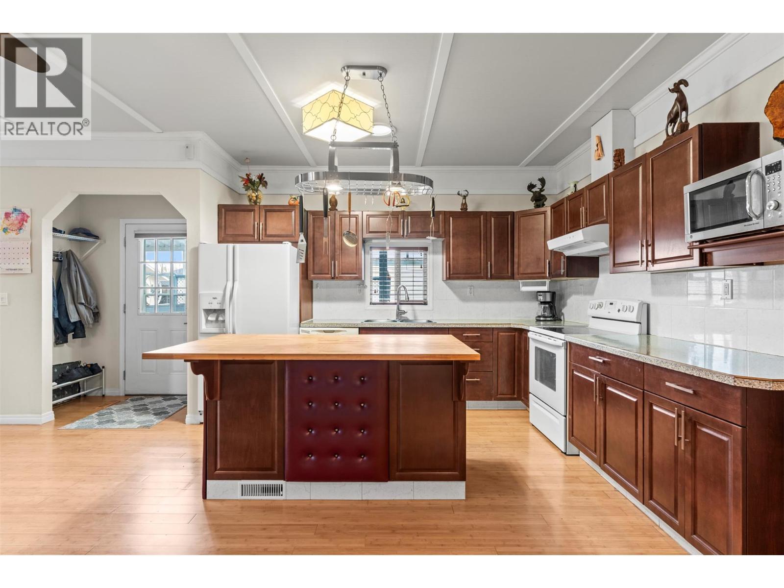 This spacious one-level home offers comfortable, accessible living with a thoughtful layout ideal for a variety of lifestyles. Fully wheelchair accessible, the property features an inviting open-concept kitchen, dining, and living area that creates a bright, connected space for daily living and entertaining. The well-equipped kitchen includes a generous 8' x 7.5' walk-in pantry, providing exceptional storage. With three bedrooms, two full bathrooms, including one with a walk-in shower and built-in bench, plus an multi-use craft room or den and a spacious office, the home offers plenty of flexibility for work, creativity, or guest accommodations. Comfort is enhanced by both a natural gas fireplace and an electric fireplace, along with a natural gas hot water tank and forced-air furnace. The exterior offers just as much appeal, with a large sun deck for relaxing outdoors, three parking spaces, and an 11' x 9' workshop or storage shed. The private backyard features a garden area, lawn space, and mature fruit trees, including one pear and one prune tree, creating a peaceful and productive outdoor setting. This well-rounded property is ideal for those seeking convenience, comfort, and single-level living in a welcoming environment. (id:6769)
