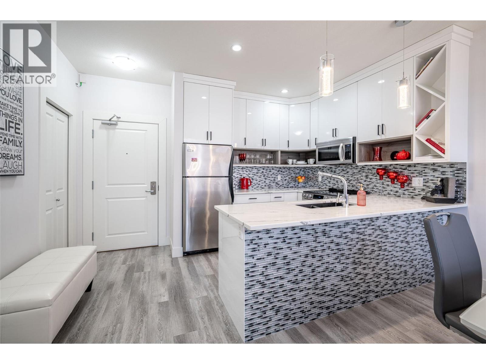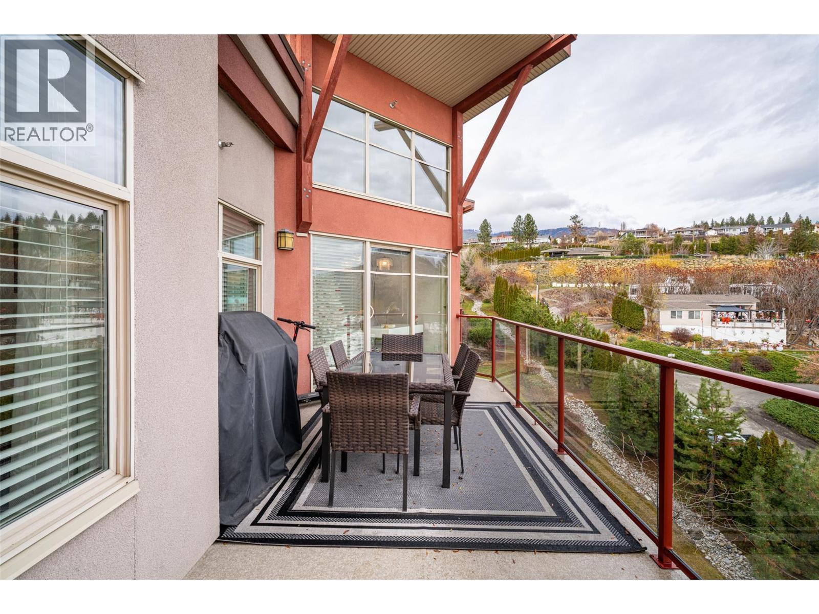 Fully Renovated Luxury unit at Coper Sky! Experience resort-style living in this fully and luxuriously renovated upper-floor residence at the renowned Cooper Sky. Showcasing soaring vaulted ceilings and an expansive, massive balcony, this exceptional home offers breathtaking, unobstructed views of Mission Hill, the surrounding hillside town, and Okanagan Lake. The residence features a stunning new white glossy kitchen with high-top cabinetry, elegant granite countertops, and a modern, open design ideal for both entertaining and everyday living. Engineered laminate flooring flows seamlessly throughout the home, enhancing its contemporary and cohesive aesthetic. Both bathrooms have been completely updated with sleek, glossy tile finishes, and a new washer and dryer adds everyday convenience. The hallway leads to two spacious bedrooms, including a luxurious primary suite with a private ensuite and walk-in closet. Modern, stylish furniture could be included in the purchase price, offering a true turnkey opportunity. The property is perfectly suited for Airbnb or short-term rental use, with strong potential for high revenue. Pets allowed with some restrictions. Bathed in natural light, residents enjoy access to an impressive living in one of the area’s most desirable resort-style communities, the amenity building offers, swimming pool, hot tubs, tennis court, gym, pool table, conference room, and a barbecue area, steam room, and resort-style living. (id:6769)
