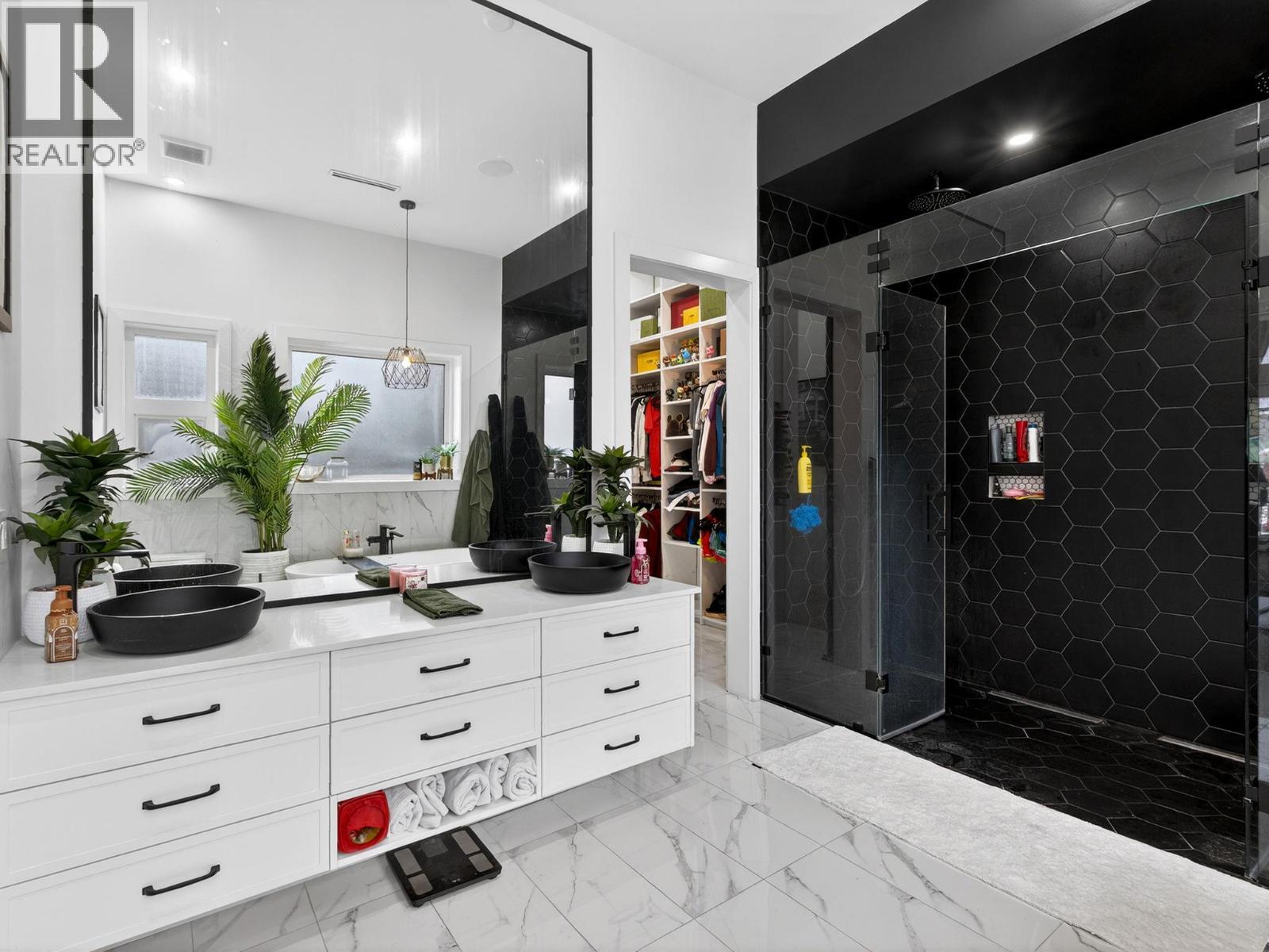 This exceptional modern residence blends high-end design with functional versatility and impressive income potential. This home offers 5 bedrooms in total—including a self-contained, legal 2 bedroom suite ideal for extended family, guests or as a mortgage helper. The main level is a showcase of contemporary elegance, featuring soaring 12-foot ceilings, radiant in-floor heating on both levels, and refined finishes throughout. The chef-inspired kitchen stands out with Fisher & Paykel appliances, a double island, beverage fridge and a walk-through butler’s pantry with prep sink. The luxurious primary suite offers a generous walk-in closet and a spa-like 5-piece ensuite, complete with a double rain shower. 2 additional bedrooms are located on the main floor and share a sleek 4-piece bathroom. On the lower level, a spacious flex area provides the perfect canvas for a media room, games room or additional living space. There is also a dedicated “man cave,” a full 3-piece bathroom and flexible space that could easily adapt to multi-generational living needs. The legal suite offers a private entrance, 2 bedrooms, bathroom, in-suite laundry, electric stove and independent heating & electrical systems. Currently tenanted, it presents a turnkey revenue opportunity. Additional highlights include built-in Sonos speakers, on-demand hot water and a generously sized double garage with 12-foot ceilings—ideal for extra storage or even a car lift. (id:6769)