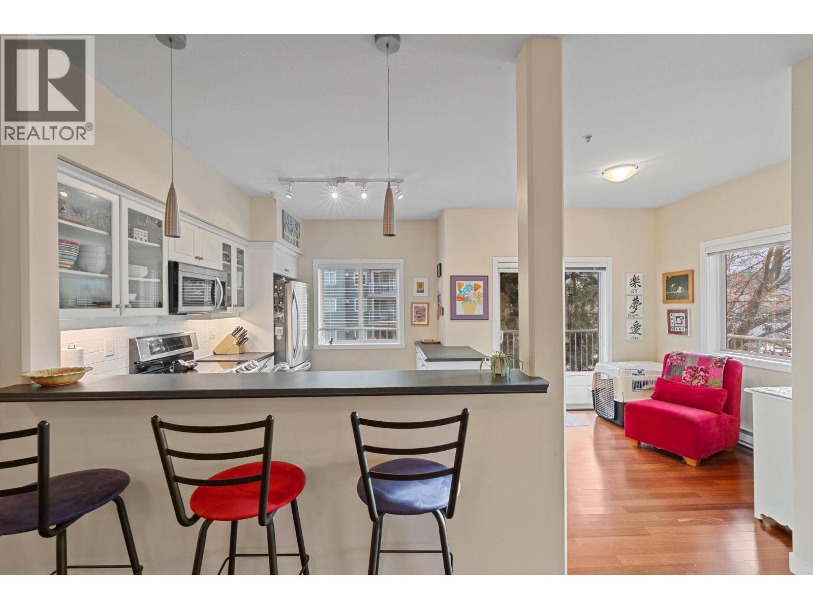 One of the best units in Wildwood Village, this exceptional corner unit is perfectly located just minutes from beaches, the H2O Centre, schools, and shopping. Bright and inviting, the home features hardwood floors and a wraparound balcony that extends your living space outdoors. The gorgeous kitchen offers a counter bar and a charming breakfast nook, ideal for both everyday living and entertaining. A cozy fireplace anchors the living room, creating a warm and welcoming atmosphere. The oversized bedrooms are positioned on opposite sides of the unit, providing excellent privacy for family, guests, or a roommate. The primary bedroom includes a full ensuite with linen storage and generous closet space. A second full bathroom and a separate laundry room for added convenience. (id:6769)