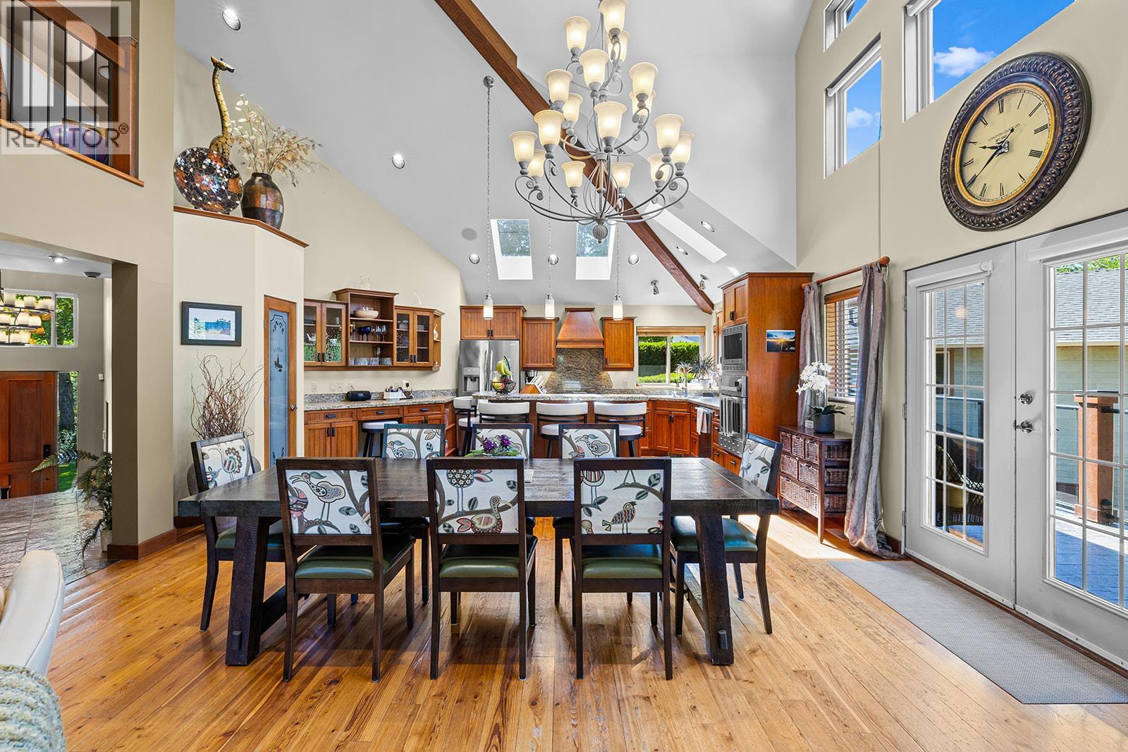Experience true Okanagan living in Crawford Estates with your own private pool paradise. Featuring brand NEW roofs on both the main home and detached garage, this 6-bedroom, 6-bathroom home seamlessly blends timeless craftsmanship with modern comfort on a private, beautifully landscaped 0.4-acre lot. The striking exterior showcases timber and stone accents with dramatic rooflines that set the tone for the elegance within. Step inside to soaring vaulted ceilings, oversized windows, and a bright, open-concept design that fills the home with natural light. The chef-inspired granite kitchen features built-in appliances, a massive island, and abundant storage perfect for everyday living and entertaining. The spa-like primary suite offers a jetted tub, luxurious finishes, and tranquil views of the surrounding landscape. The walkout basement is an entertainer’s dream, complete with a custom bar, media lounge, and direct access to your private backyard oasis featuring a heated saltwater pool, hot tub, rock waterfall, and lush gardens. A detached, heated two-level garage/workshop adds versatility with its own bathroom, sauna, and wine cellar, ideal for hobbies, guests, or additional living space. With four covered parking spots, RV space, and ample room for family and visitors, this home perfectly balances function and sophistication. Nestled in one of Kelowna’s most desirable neighborhoods, Crawford Estates is known for its proximity to parks, trails, and top-rated schools. (id:6769)