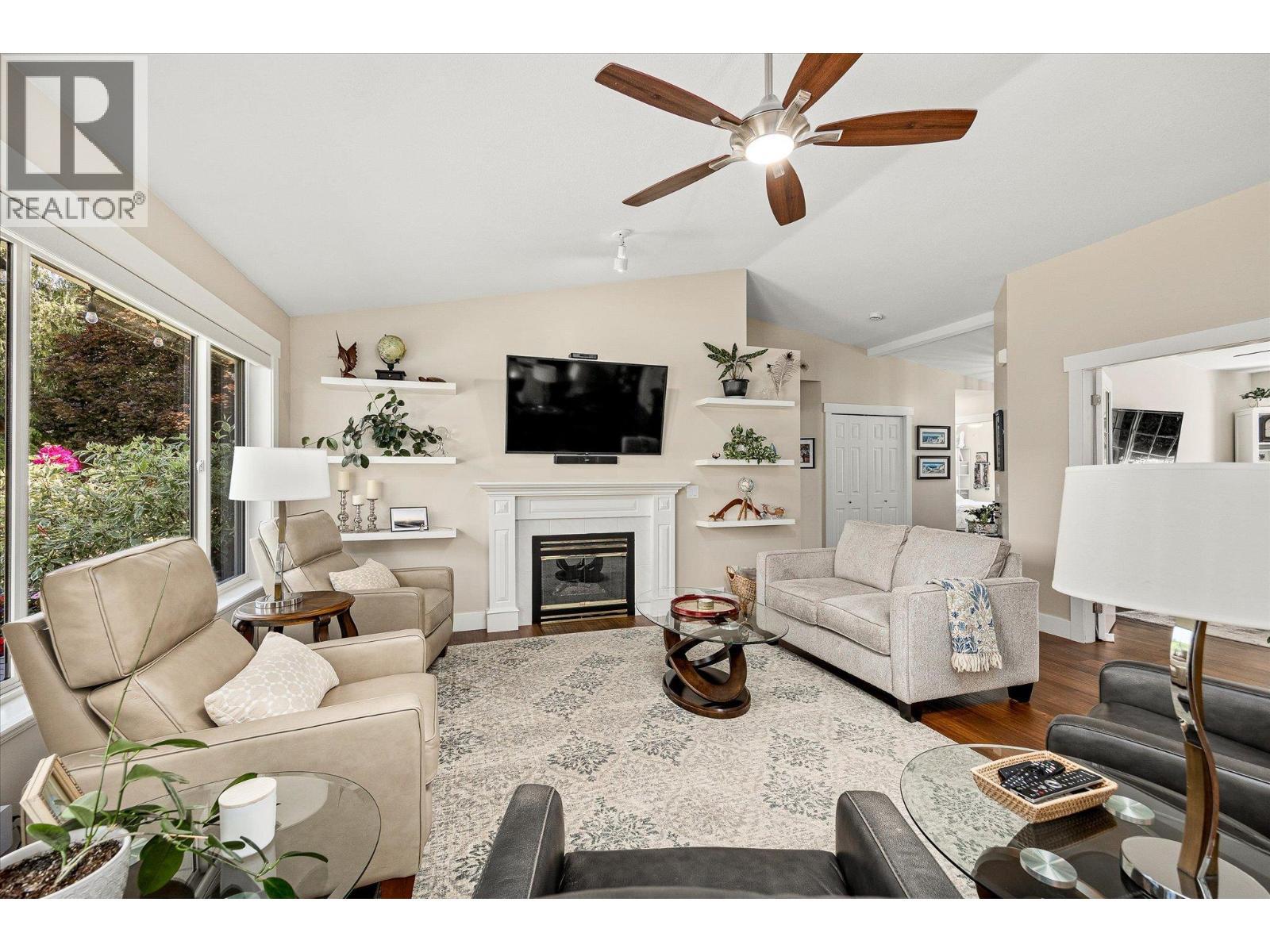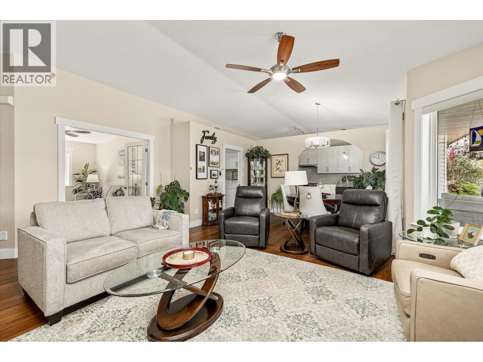 Welcome to Cedar Ridge Estates – a serene 55+ community designed for comfort, convenience, and connection. This beautifully renovated rancher-style townhome offers over 1,450 sq. ft. of bright, one-level living in a tranquil, park-like setting. With 2 bedrooms, including a spacious primary with an ensuite, plus an oversized den/flex room, this home provides the perfect blend of functionality and flexibility. Step inside to discover an impressive list of upgrades: new Westwood kitchen cabinets with stone countertops, stainless steel appliances, engineered hardwood flooring, updated bathrooms with modern vanities and fixtures, fresh paint, new baseboards and trim, closet organizers, and stylish window coverings throughout. Thoughtful touches, such as a new Murphy bed in the guest room and built-in garage storage, add to the convenience. Enjoy a double garage, RV/boat storage, and a clubhouse for social gatherings. The community is pet and rental-friendly (with restrictions) and offers a true lock-and-leave lifestyle. Ideally located just minutes to world-class wineries, farmers’ markets, golf, hiking and biking trails, pristine lake access, and the city centre, this hidden gem is the perfect place to downsize and embrace the Okanagan lifestyle. Move-in ready and waiting for you! (id:6769)