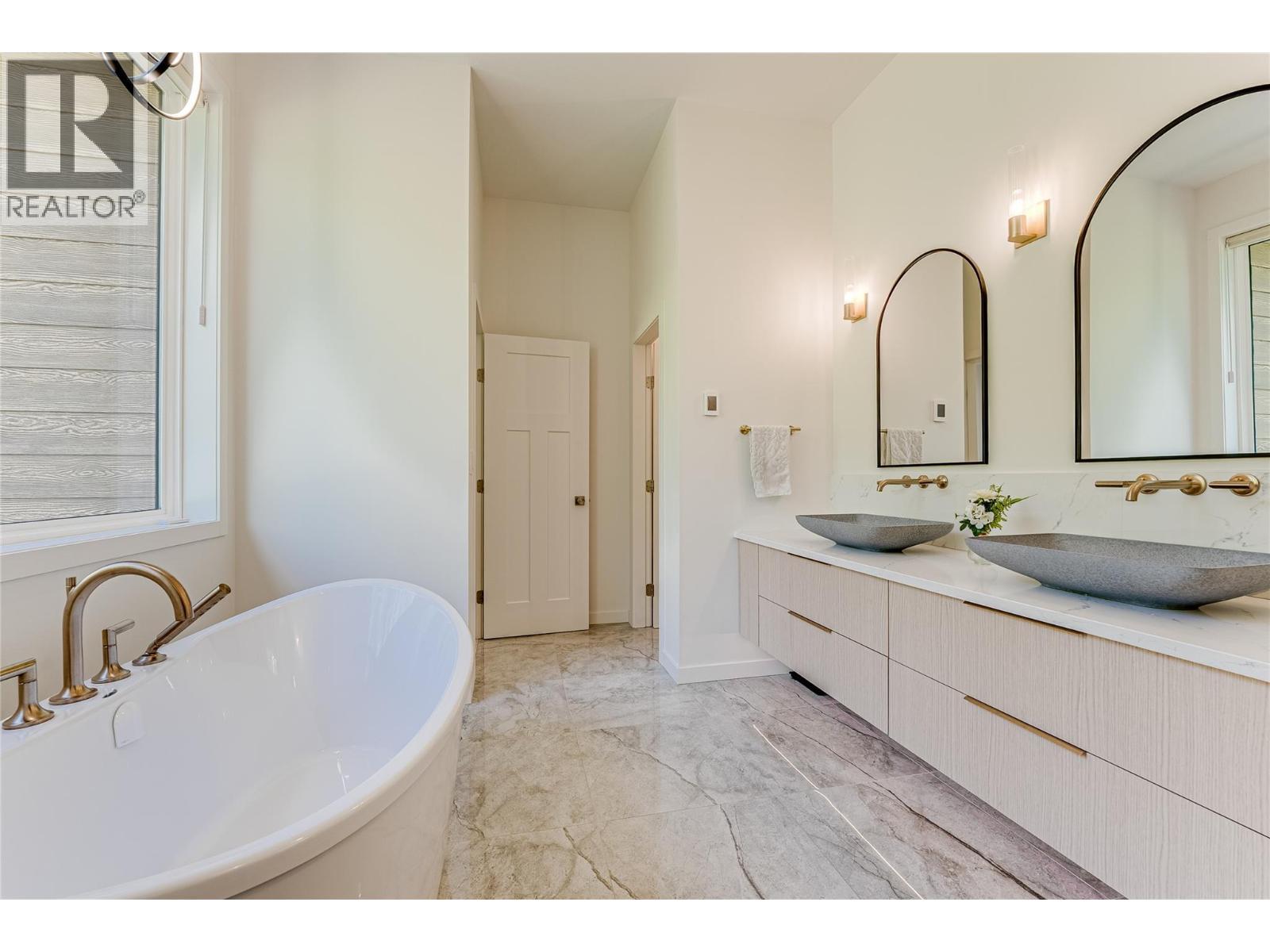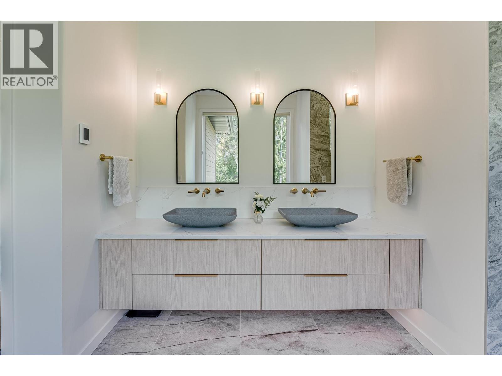 An unexpectedly intuitive fusion of the Okanagan Valley’s rustic natural beauty and the calming clean lines of modern design, this stunning 6-bedroom new construction property on nearly 5 acres that allows for a secondary suite or carriage house, boasts incredible privacy with room for expansion. Ski lovers will adore the location, mere minutes from Silver Star Resort. Upon arrival, over 8000 square feet of exposed aggregate driveway and walkways welcome you, seamlessly complimented by contemporary and low-maintenance landscaping. Upon entry, an expansive and open concept living, dining, and kitchen area unveils itself with custom millwork and cabinetry throughout and gleaming premium engineered hardwood underfoot. The gourmet kitchen impresses with bespoke design, an oversized centre island, quartz countertops, stainless steel appliances, and slatted wood accents. A main floor primary suite comes complete with a walk-in closet and ensuite bathroom with double vanity. Two bedrooms plus an additional office or third bedroom share a superbly appointed full hall bathroom. Upstairs two more bedrooms a shared full bathroom and a bonus room could be utilized for a number of purposes. Move right into this marBuilt by Avalanche Construction, electric in-floor heating in tiled areas. Roughed in for future pool. For more informationor to submit an offer please contact Laura Reners at 250-307-4596 or laura@saltfowler.com.vellous home and imagine the possibilities for the future, whether you have your sights set on a pool or large shop, the expansive property is ready to serve. (id:6769)