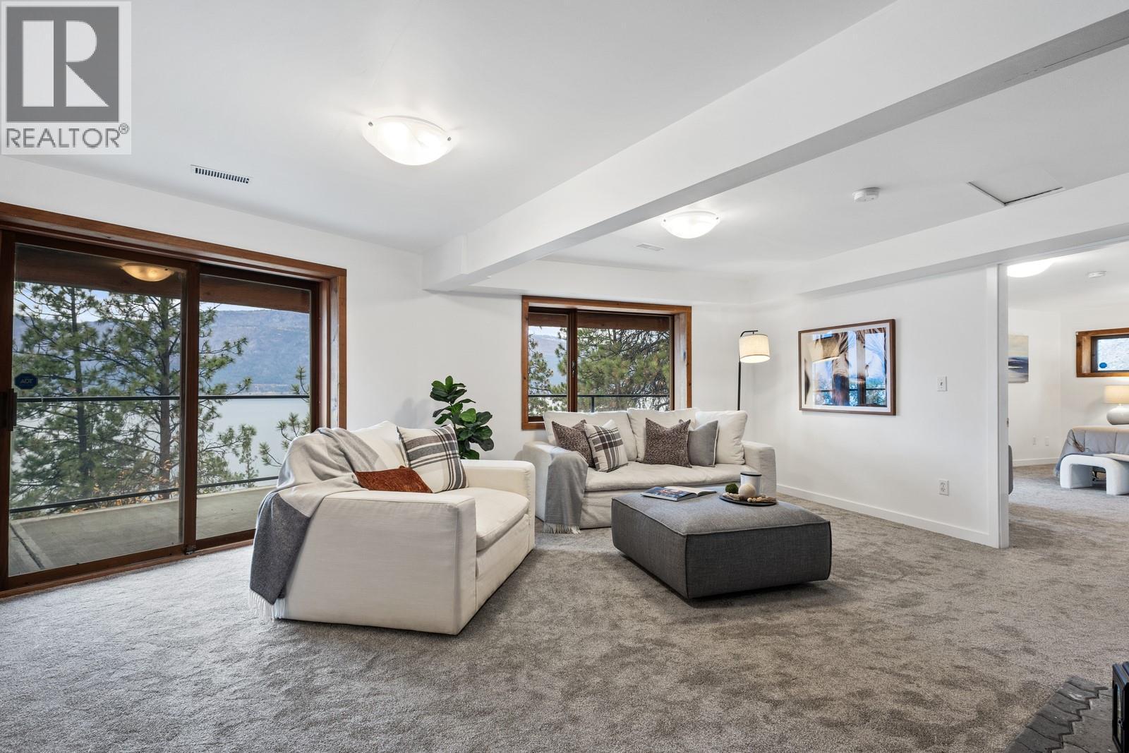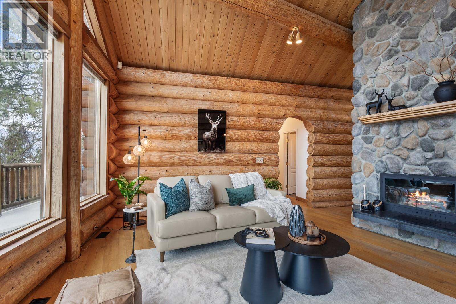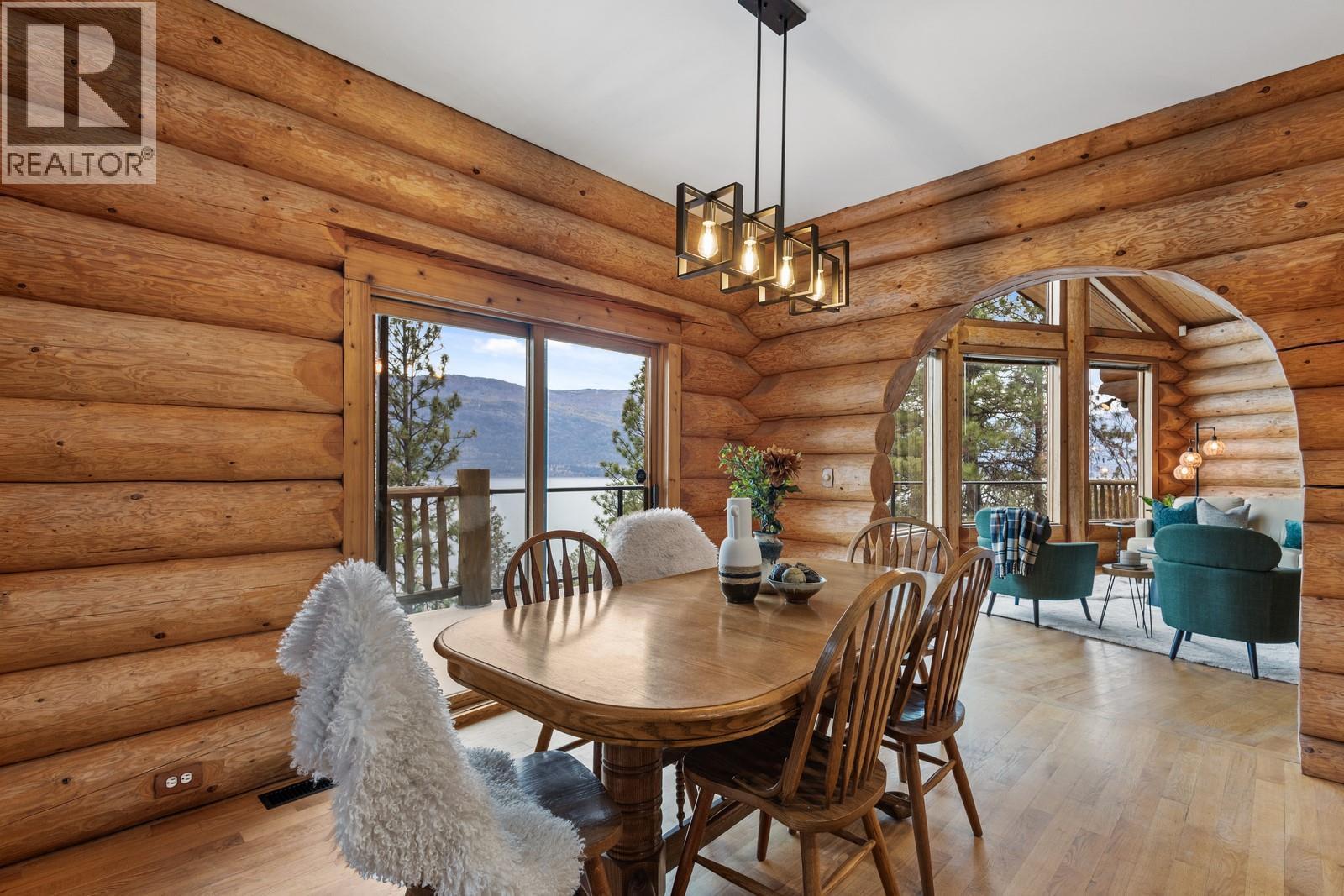 Step into the warmth and character of this authentic log home, perfectly perched to capture panoramic lake views from both decks. Enter through the double doors to vaulted ceilings framing the views and a floor-to-ceiling stone fireplace that makes the great room a showstopper. The updated kitchen features new countertops, appliances, and flooring, and the cozy dining space flows seamlessly into the living room. The primary bedroom opens directly onto the balcony, perfect for morning coffee with a view. Downstairs you’ll find a third bedroom (ensuite roughed in), a recently updated bathroom, and a family room where you can cozy up by the wood stove surrounded by cedar beams. This home is beautifully updated and ready for you to move right in; at this price a brand new HVAC package is included, worth approximately $15,000. An attached woodshop off the laundry room offers space for creative projects, while abundant parking and room to build a future shop make this property as functional as it is beautiful. Located in a region surrounded by world-class wineries and luxury estates, this property also includes a large unused parcel across the road. A true blend of craftsmanship, warmth, and Okanagan lifestyle; your Carr’s Landing sanctuary awaits. (id:6769)