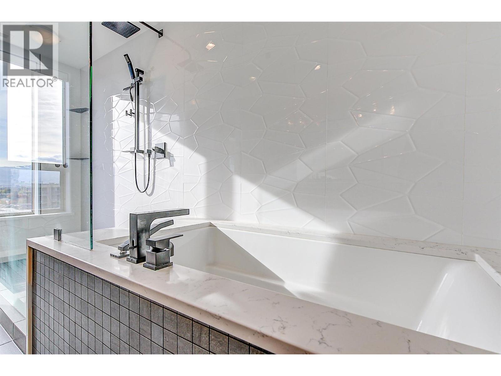 Over 2,000+sq.ft of living space with panoramic, unobstructed lakeview & highly coveted SW exposure define this luxury Kelowna condo. Exceptionally low strata fees and one of Kelowna’s rare suites offering full perimeter windows– 3 walls of magnificent views without neighbouring units! Each room captures the Okanagan scenery, double-door primary bed, walk-in closet & custom fireplace. Steps to downtown, with resort-style amenities POOL, HOT TUB, SAUNA, STEAM ROOM & FULLY EQUIPPED GYM, extra-large PRIVATE STORAGE UNIT immediately beside your 2 SECURE UNDERGROUND PARKING STALLS. Bright oversized layout 3 beds, 3 baths & glass-enclosed den with stunning tiled accent wall – perfect for home office & video conferencing. Fully reno’d: premium professional-grade kitchen appliances, soft-close cupboards/drawers, new baths, extensive custom tile-work, flooring, dedicated bar with wine fridge, POWER blinds for windows via phone & remote-control, quartz counter tops & backsplashes, 2019 heat pumps. Large balcony, pergola & gas BBQ hookup overlooking downtown & the lake— best sunset views. ‘No-Frills’ Grocery Store & ‘Anytime Fitness’ immediately attached to the building. Easy walk to downtown, entertainment, & beach. Efficiently equipped with 3 large elevators, this building has community-minded residents, and durable steel-&-concrete construction for exceptional soundproofing. Live in one of Kelowna’s best-managed buildings. Unit is unoccupied & immediate possession available. (id:6769)