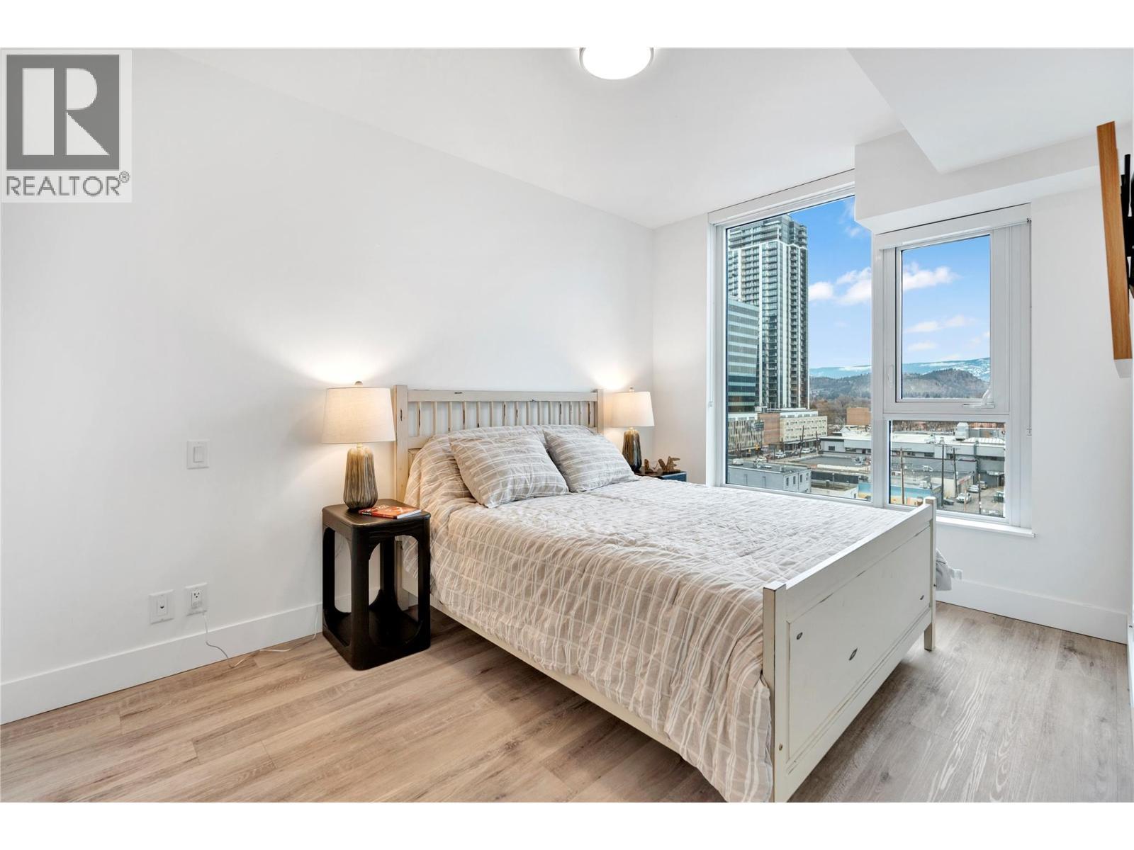 Extraordinary value at ELLA, Kelowna’s most central downtown luxury condo building. This bright East facing one bedroom and den home offers lovely city and mountain views from the 7th floor. Finishings by Award-winning interior design i3 Design Group include quartz countertops throughout the home, soft vinyl plank flooring, surround ceramic tile in the bathroom and under cabinet lighting in the kitchen. Cook gourmet meals on your gas range with quartz backsplash and enjoy the sleek and designer aesthetic of the integrated paneled refrigerator. Located on the corner of Ellis street & Lawrence Ave, this home comes with 1 parking stall in the secure parkade plus 1 secure storage locker. Electric vehicle charging stations are available for ELLA residents’ exclusive use. The building boasts a bike & pet washing station, resident bike storage & guest suite for resident’s visitors. This home offers an in-suite washer & dryer along with ample storage and closet space to make this a functional and comfortable condo. This is the perfect home for affordable downtown living or the savvy investor looking for great value. (id:6769)