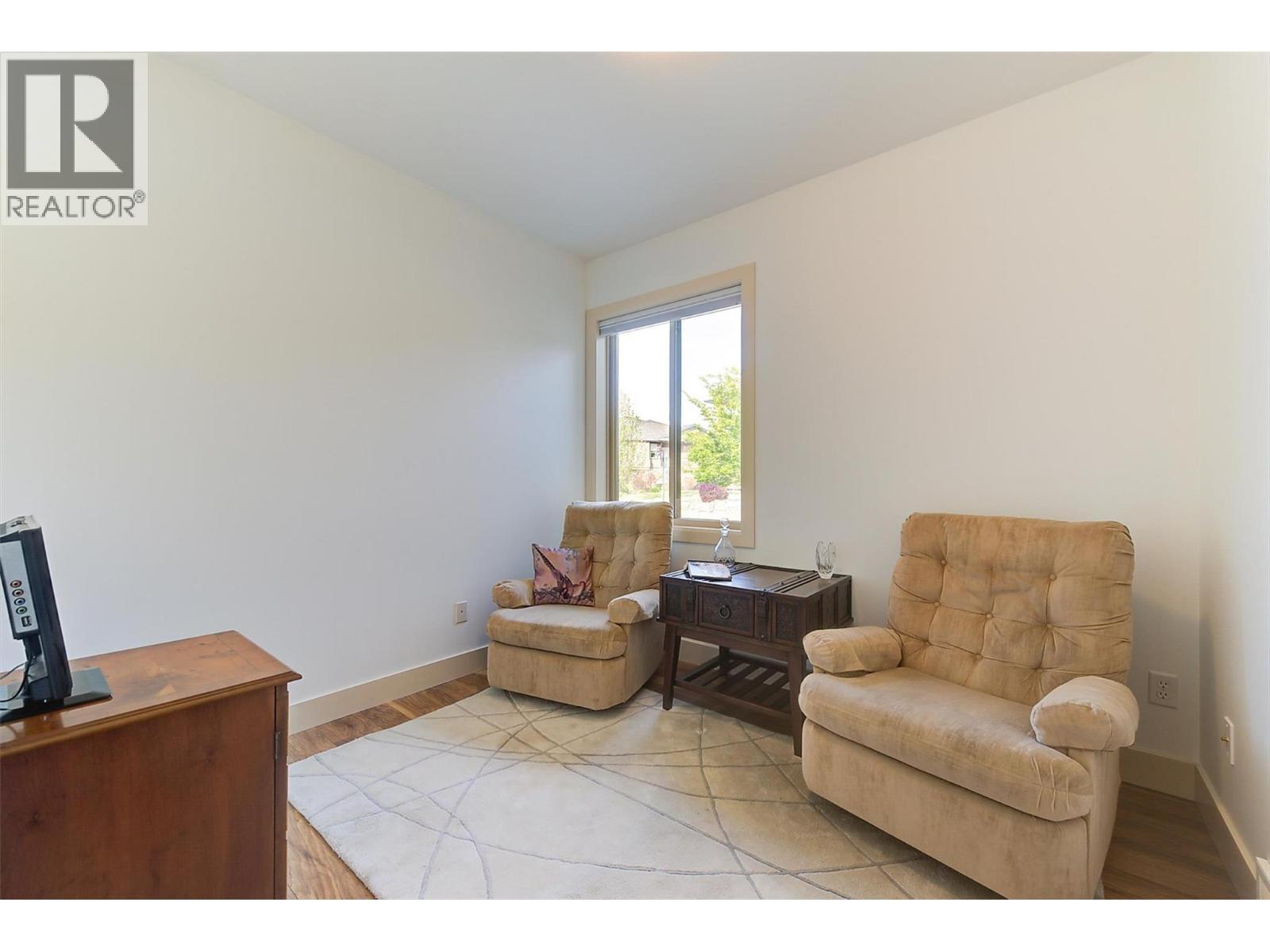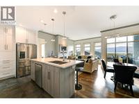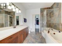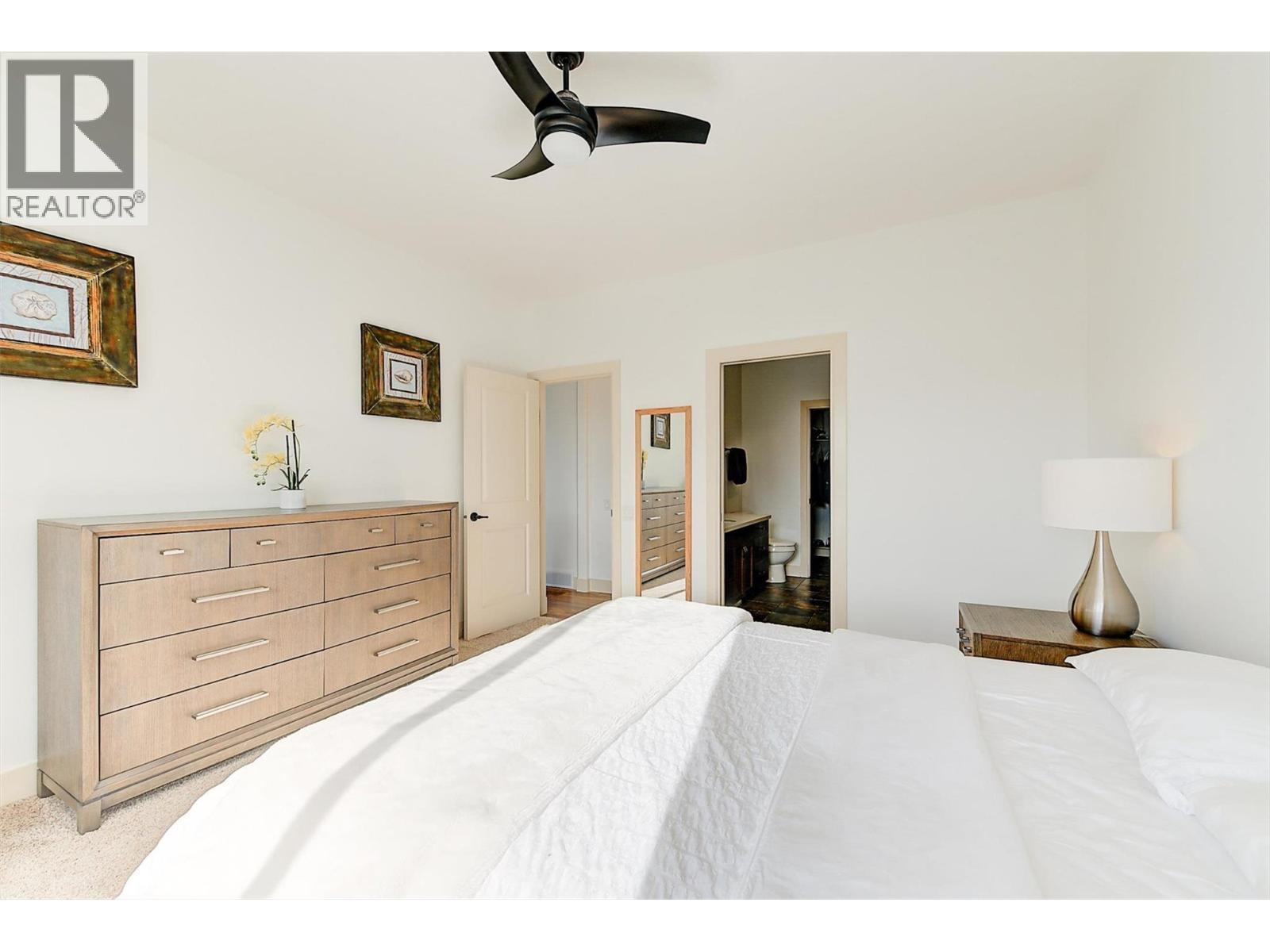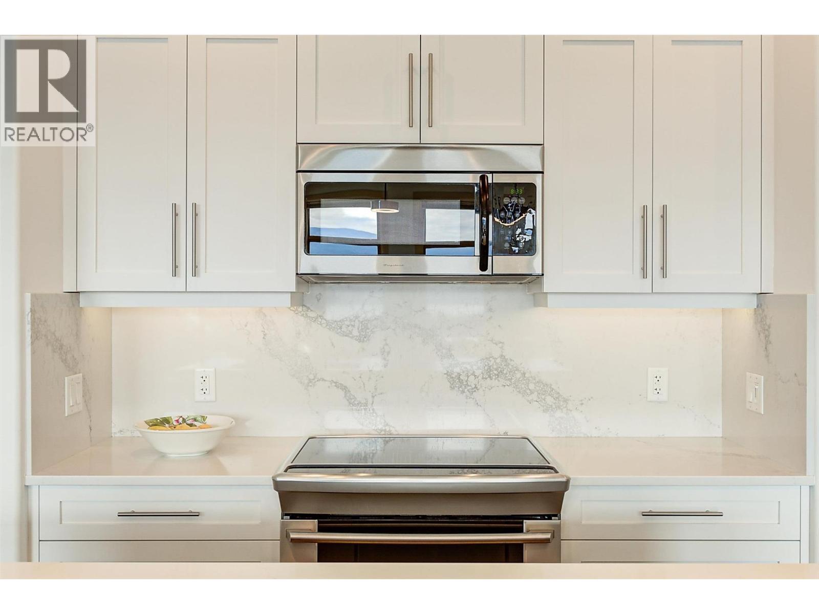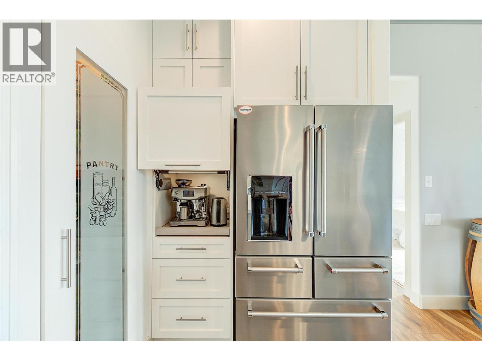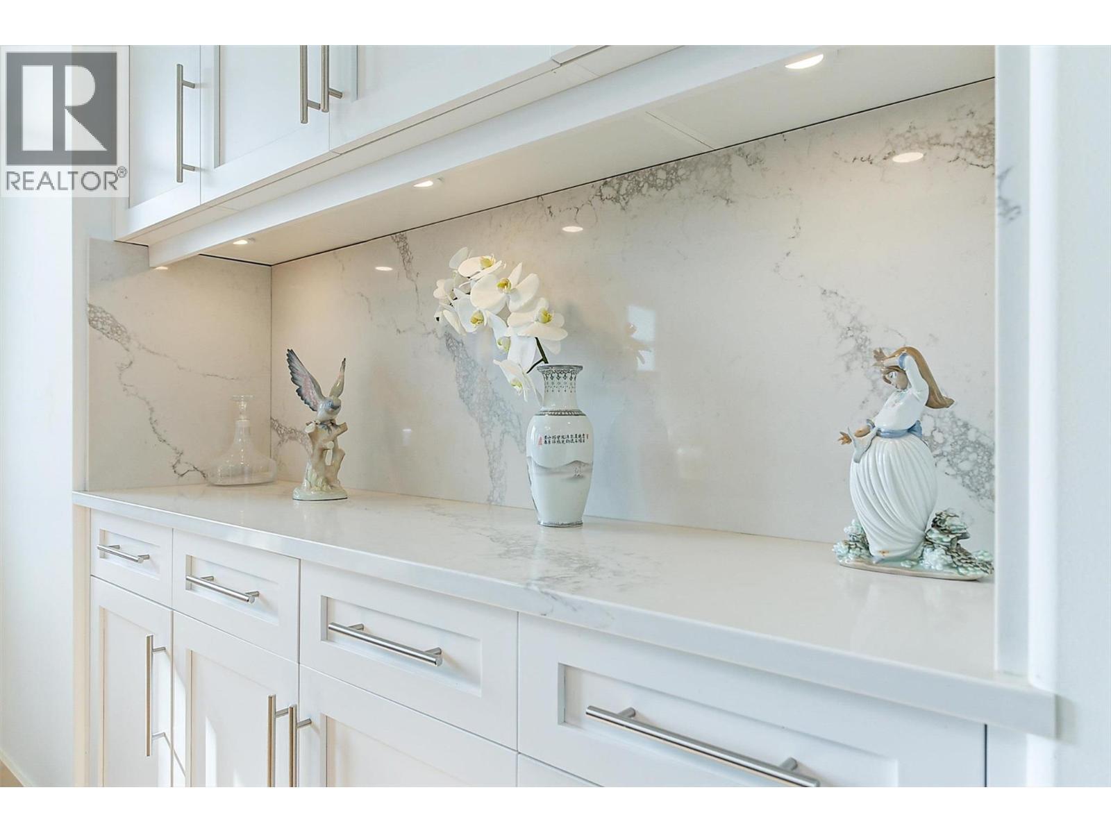 Welcome to this beautifully updated semi-detached townhome in the highly desirable Sonoma Pines community! Step into the stylish, modern custom kitchen featuring white shaker-style soft-close cabinets extended to the ceiling, sleek quartz countertops, stainless steel appliances, a convenient coffee station, a wave-activated Moen kitchen faucet, and updated lighting. The open-concept living room boasts newer laminate flooring, a cozy gas fireplace, and stunning lake views. Adjacent, the dining room includes custom built-in cabinetry and opens onto a spacious deck with topless glass railings—perfect for soaking in the panoramic lake views. The deck also comes equipped with gas hookups for BBQ. The bright and inviting primary bedroom features lake views, newer carpet, a walk-in closet, and a 4-piece ensuite with Corian counters. A second bedroom, full bathroom, and convenient laundry area complete the main floor layout. Downstairs, you'll find a spacious family room with an electric fireplace, a flex room ideal for a home office or gym, a third bedroom, another full bathroom, a large storage room, and access to a lower covered patio with hot tub hookup—perfect for year-round enjoyment. Additional highlights include a double garage, flat driveway, and low-maintenance living in a fantastic location close to golf, shopping, and Okanagan Lake. Sonoma Pines amenities include a clubhouse with gym, library, billiard room, and sizeable social room with a full kitchen available to rent. Secure RV parking is also available on-site. This is the perfect blend of comfort, style, and breathtaking views—don’t miss it. NO PTT, PREPAID LEASE. (id:6769)