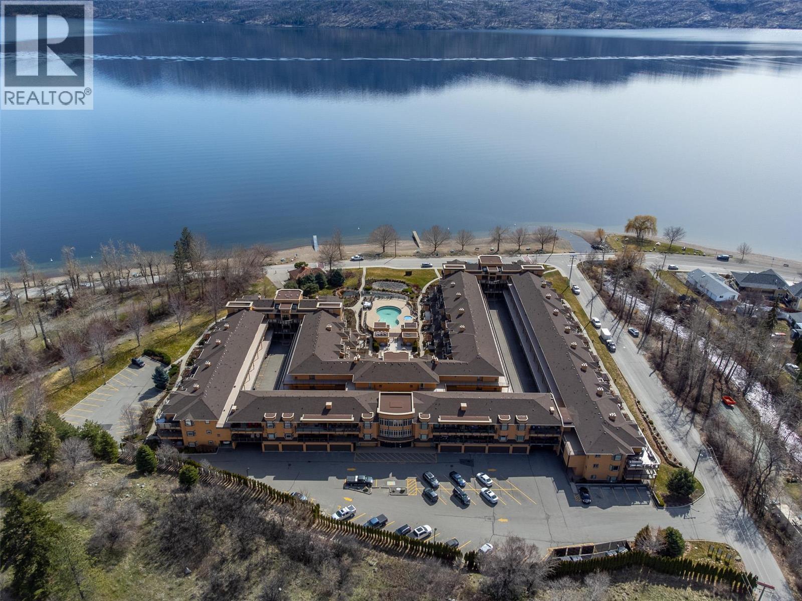 Semi-waterfront living at Lakeshore Gardens. This bright and open 2-bedroom, 2-bathroom home offers approximately 1,373 sq. ft. of thoughtfully designed space. Enjoy a large deck ideal for entertaining, complete with a gas BBQ hookup. Features include a gas fireplace, and light oak cabinetry throughout. The spacious primary suite boasts a walk-in closet and private access to the deck. The unit includes one secured parking stall, with additional parking available for owners. The seller is offering select furniture for a turnkey purchase, excluding personal items. Residents can take advantage of exceptional amenities, including an outdoor in-ground pool, hot tub, well-equipped gym, and beautifully landscaped grounds with water features. Just steps from the beach and walking paths, this location is perfect for those who enjoy an active, outdoor lifestyle. No short-term rentals permitted. No age restrictions. Pets allowed (one dog or one cat). Well-maintained building with an on-site manager. (id:6769)