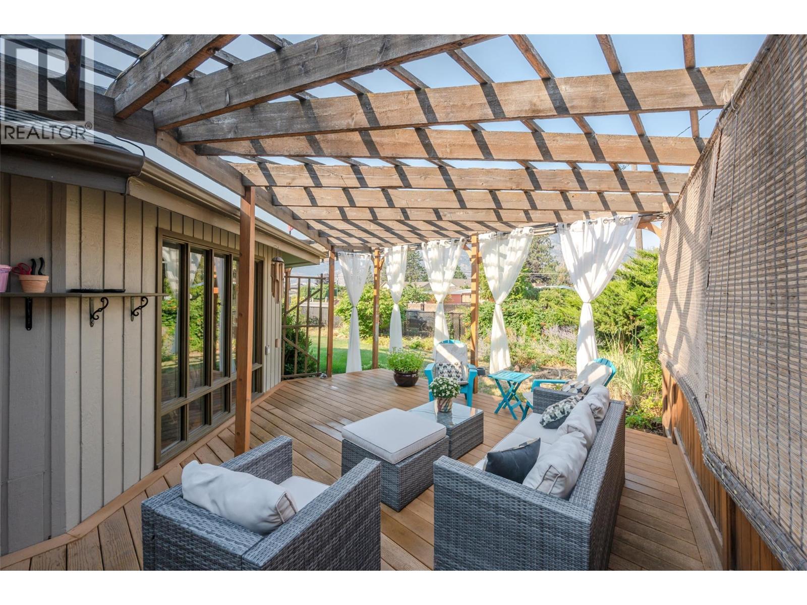 Welcome to your private oasis on 0.54 acres just steps from Skaha Lake! Only minutes from town and a short stroll to the water, this meticulously maintained rancher with a brand new furnace offers 2 bedrooms and 2 bathrooms, showcasing true pride of ownership! Inside, you’ll love the gorgeous, vaulted ceilings and a wall of windows that flood the home with natural light. The large kitchen and dining area with stainless steel appliances is perfect for hosting family and friends. While the gas fireplace and hardwood parquet floors add warmth and charm throughout the home. The spacious primary suite features a 3-piece ensuite, and the second bedroom is a perfect flex space, complete with a murphy bed for guests or a home office. Outside is a private oasis with a gorgeous pergola providing privacy and shade to the large composite deck, creating an inviting setting for gatherings or quiet evenings! The front and side yards are the perfect space to play or have a large garden! Ample driveway space provides easy parking for vehicles, guests, and summer toys. BONUS: Lake access is right across the road—launch your paddleboard or kayak in under a minute! This one-of-a-kind home combines comfort, privacy, and an unbeatable location near Skaha Lake—truly a rare find! (id:6769)