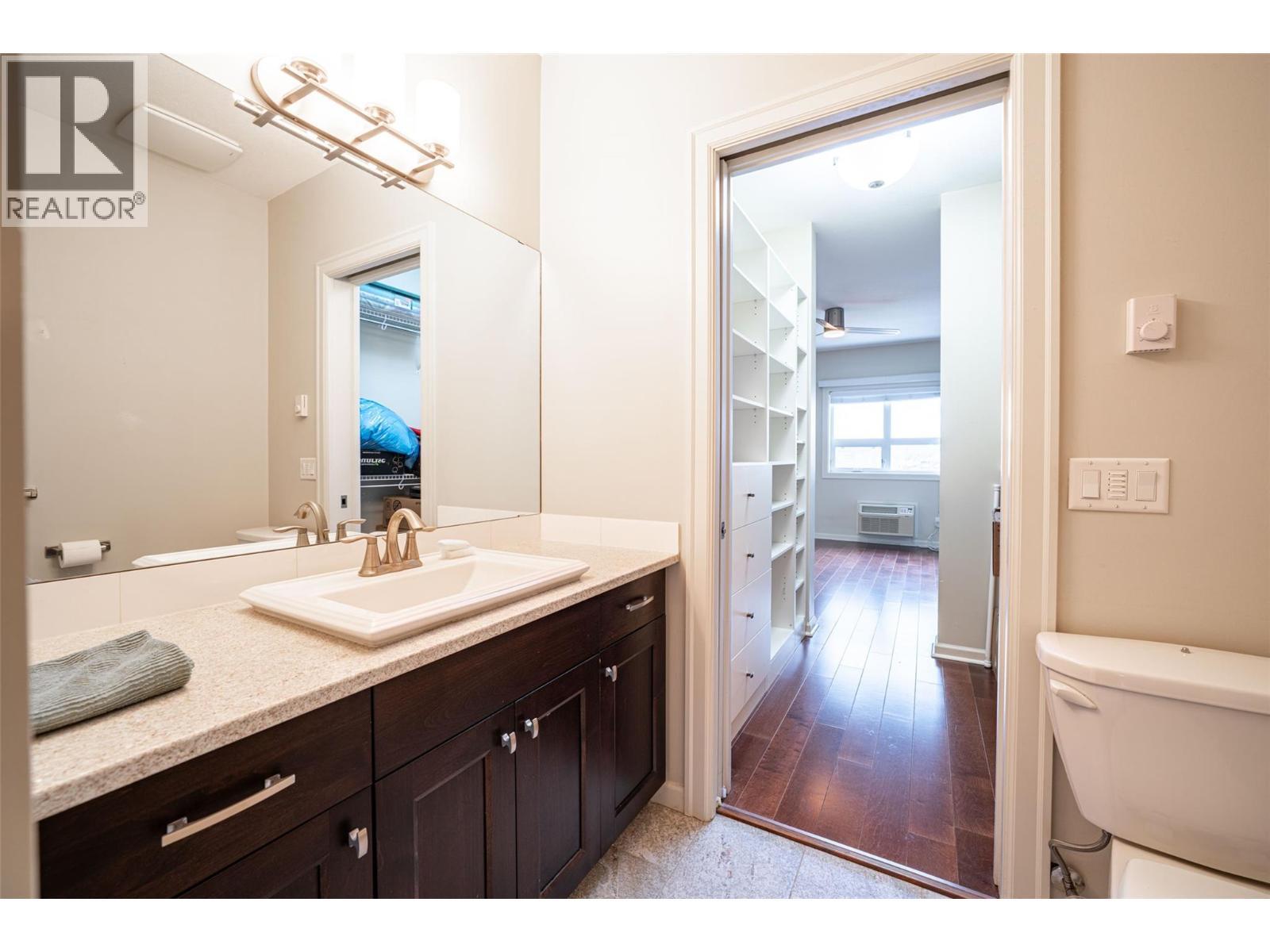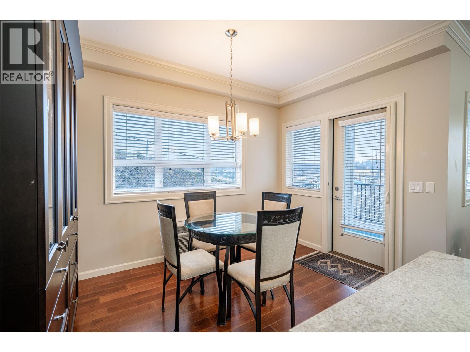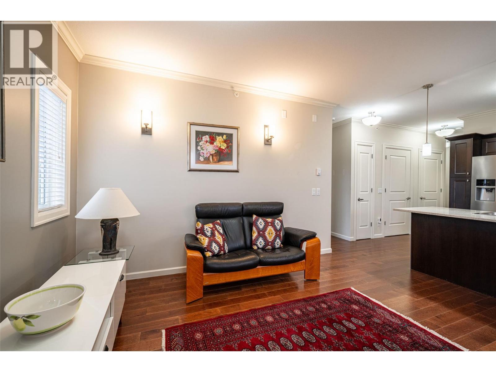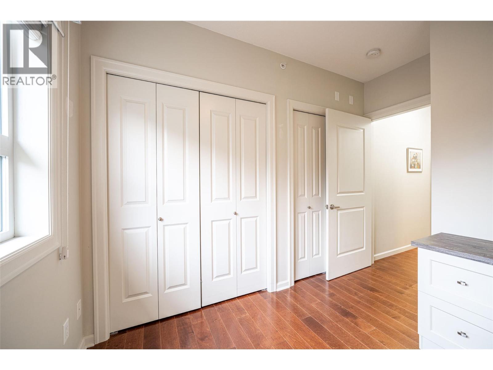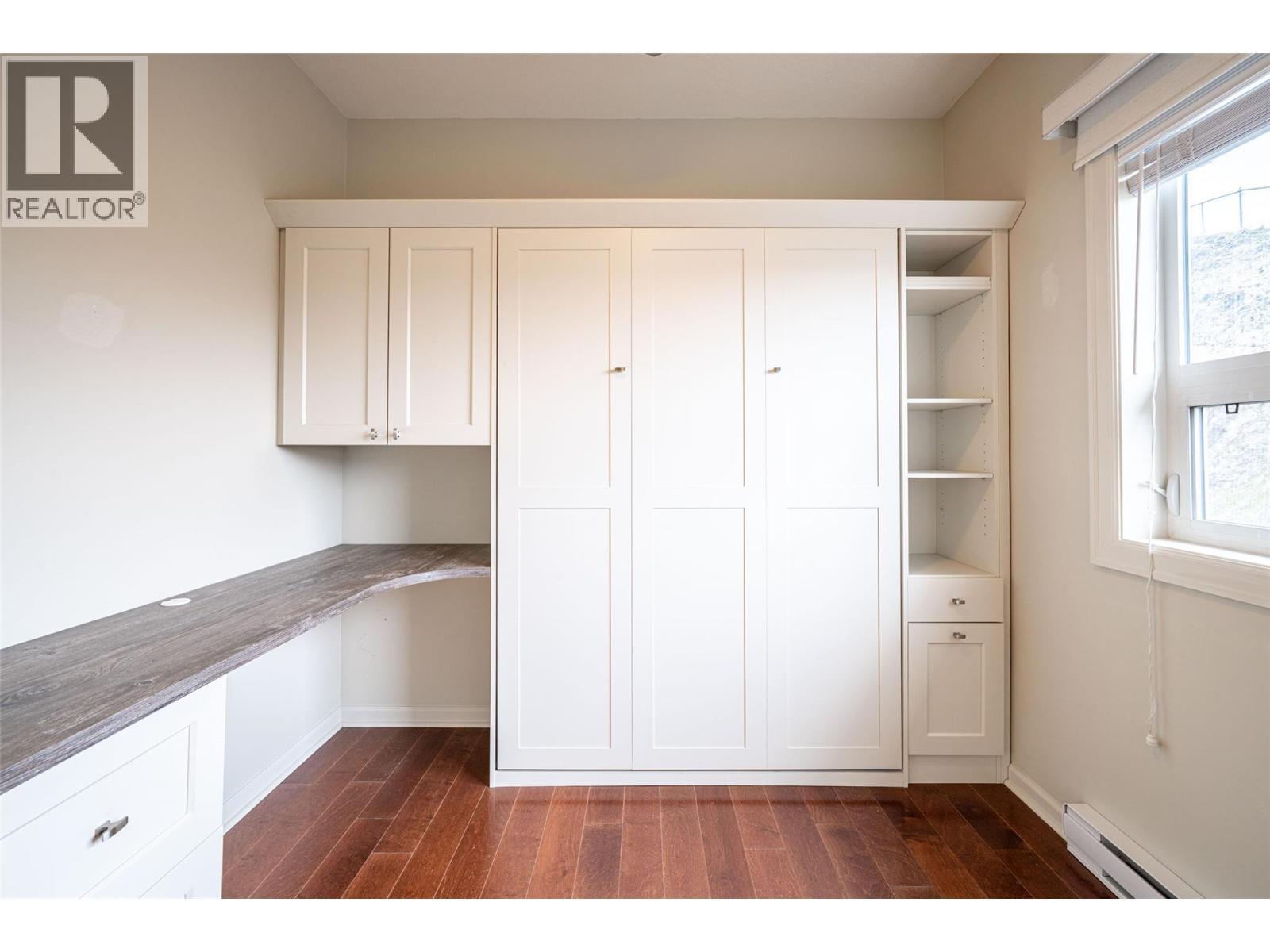 Gorgeous top floor corner suite East exposure for lots of natural light & beautiful mountain & city views. This bright 2 bdrm offers an open floor plan with 9' ceilings, a kitchen complete with stone counters, 4 stainless appliances & large island with a breakfast bar. Easy care laminate flooring thru-out and decorative crown molding in the main living area are two features you will be sure to enjoy. A large deck is located off the dining room where you can sit & enjoy the morning sunshine while you look out to the tree lined street and watch all the activity outside. Spacious 2nd bdrm features a convenient built-in murphy bed with computer desk. The main bath with has a nice soaker tub if you are so inclined. The master can accommodate a king-sized bed, has a generous walk-thru closet with convenient built-in shelving & full ensuite with walk-in shower. Secure u/g parking + a downtown location just a few minutes to all shopping. No property purchase tax & 1 Year Schubert Center Membership. Building is pet friendly! Catherine Gardens is a non-profit society dedicated to providing affordable 55+ housing with the peace of mind of a newer building. No responsibility to sit on a strata council & a maintenance/occupancy fee that covers EVERYTHING (water, sewer, garbage, snow removal, TAXES, electrical/plumbing maintenance & repairs, appliance repairs/replacement & landscaping) except content insurance, hydro, cable & telephone! Come and enjoy a carefree lifestyle. (id:6769)