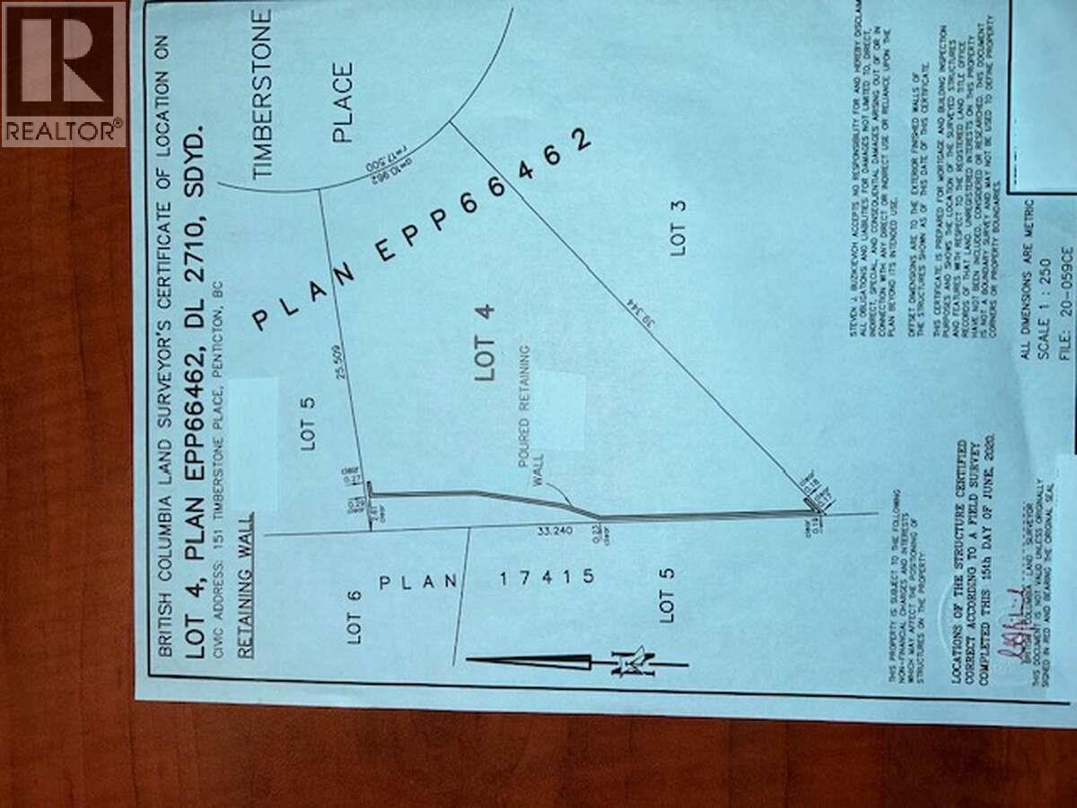 For more information, please click Brochure button. Build your dream home on this fully serviced, city-view lot located in the prestigious and family-friendly Wiltse neighbourhood of Penticton. Nestled in a quiet cul-de-sac within a recently developed area, this property offers the perfect combination of privacy, natural beauty, and convenience. The lot has been professionally prepared with engineered concrete retaining walls and comes with a custom-designed home plan specifically tailored for this site, which can be used if desired. All major utilities are available at the lot line, including sewer, water, electricity, and natural gas—making it truly ready for development. Enjoy breathtaking panoramic views of the city and surrounding landscape from your future home, while being just minutes away from all essential amenities. Cherry Lane Shopping Centre, Penticton Regional Hospital, schools, parks, and other local conveniences are all within a five-minute drive. This is a rare opportunity to build a custom home in one of Penticton’s most desirable and well-serviced neighbourhoods. Don’t miss out! (id:6769)