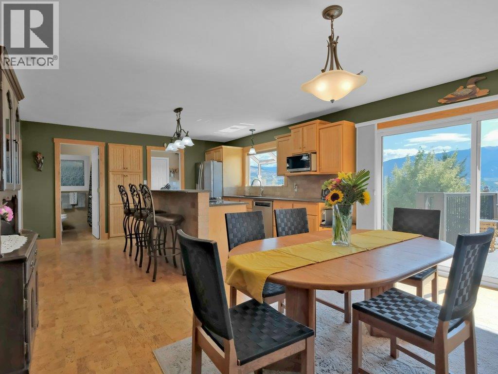 Welcome to 6475 Blue Jay Rd. A versatile 4-Bedroom Home with in-law, Huge SHOP, and Incredible Entertainer’s Deck, over looking a lovely mountain view. Inside, the open-concept main floor is anchored by a chef-inspired island kitchen featuring a gas range, ample counter space, and a large island with seating—ideal for casual meals or hosting friends. The kitchen flows seamlessly into the dining and living areas, all filled with natural light. Step through sliding doors to the expansive covered deck, thoughtfully designed for year-round entertaining, complete with a built-in BBQ, beverage fridge, ceiling heater, fam and plenty of room for outdoor dining and lounging while enjoying the view. Private 1-bedroom suite with a separate entrance and shared laundry—perfect for extended family, guests, or rental income. Car enthusiasts, hobbyists, or tradespeople will love the massive detached workshop, quipped with a 220V plug, this space is truly a mechanic’s dream, offering room for projects, tools, and storage with it's own drive. Double driveway with room for plenty of parking. The backyard is private and inviting, with space to relax and unwind in the included hot tub. With an EnerGuide rating of 76 (2010), the home offers solid energy efficiency to help keep utility costs down. This property truly checks every box—spacious living, income potential, exceptional storage and workspace, and a setting that offers both privacy and convenience. (id:6769)