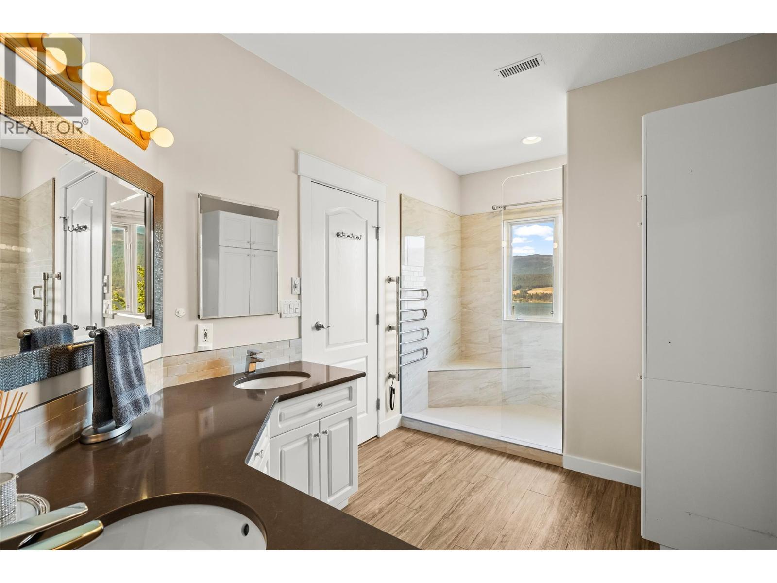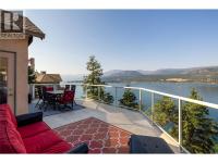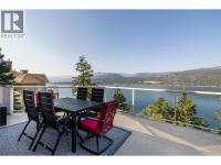 On the bluffs of Okanagan Lake sits a one-of-a-kind complex and this stunning 3 bed/2 bath rancher-style home offering breathtaking panoramic views and all the perks of waterfront living. The open layout is designed to showcase the scenery, starting with an updated kitchen featuring granite counters, tile backsplash, newer appliances, and abundant storage. The dining area with a cozy two-way gas fireplace flows seamlessly into the spacious living room with vaulted ceilings and new power blinds. The primary suite boasts deck access, a spa-inspired ensuite with custom tile shower, dual sinks, private water closet, and a generous walk-in closet. Two additional bedrooms, a full guest bath, and a laundry room with extra storage complete the thoughtful floor plan. Step outside to the expansive deck with two new power awnings—ideal for summer BBQs and endless outdoor enjoyment. Parking includes a single garage, an extra outdoor stall, and ample guest spaces. This gated community showcases over 500’ of private beachfront with washrooms, a swimming dock, boat launch, moorage, picnic areas, walking paths, a romantic gazebo, and a local access to tennis/pickleball courts & playground. With no age restrictions and pet-friendly policies, this “lock and leave” lifestyle offers the ultimate downsizing opportunity without compromise. (id:6769)