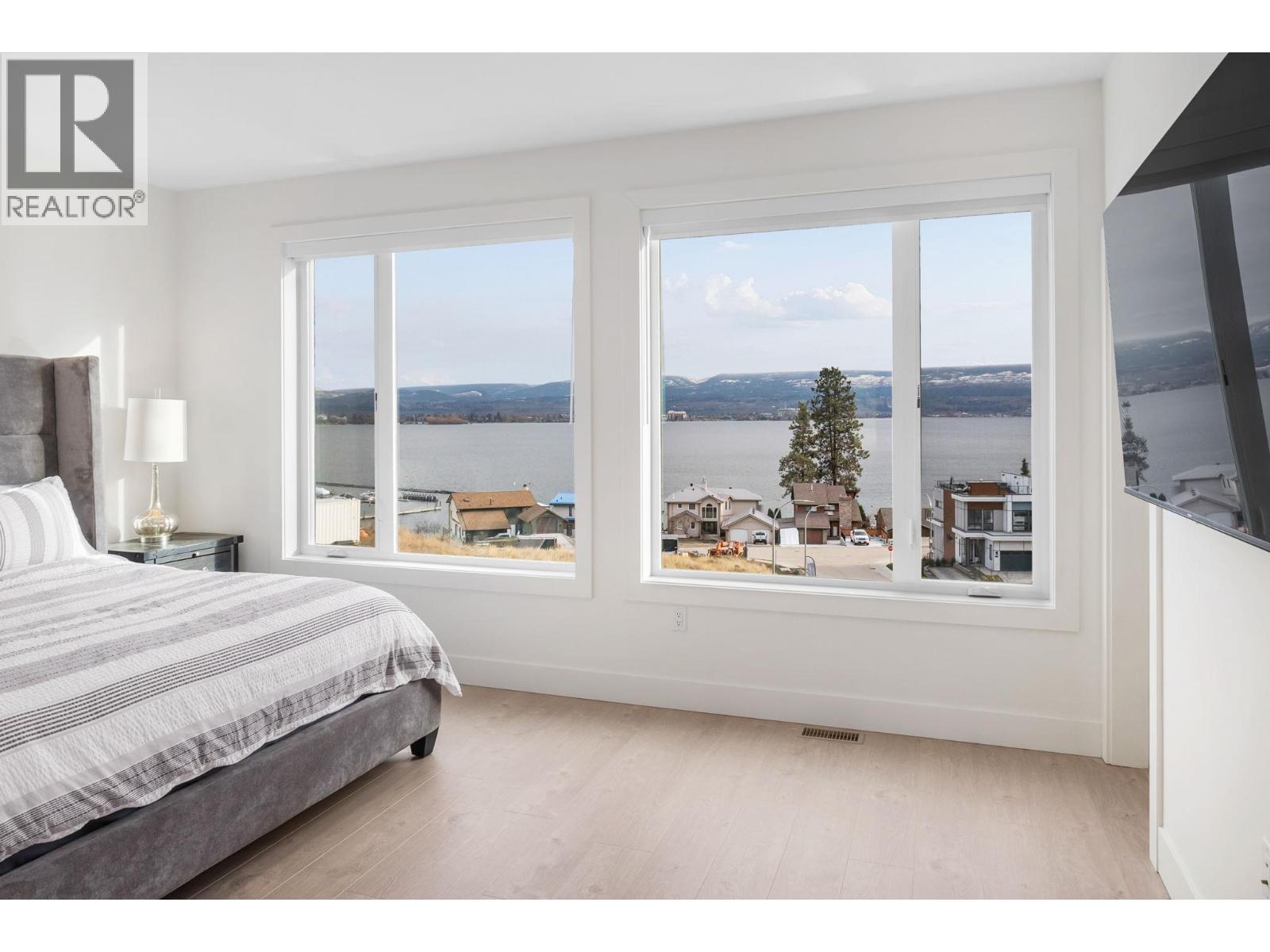 TURN KEY, FULLY FURNISHED, SHORT TERM RENTAL FRIENDLY, NO GST, NO PROPERTY TRANSFER TAX AND NO SPECULATION TAX!!! This is one of those opportunities that’s worth taking a closer look at: a near lakeside townhome with luxury finishings, offering refined modern living with stunning lake views from every level, while being located just minutes from downtown Kelowna. With one of the most desirable layouts in the complex, the U1 plan features 5 bedrooms PLUS a flex room, with a private elevator taking you between each of the 4 levels. Some notable features include an extra-wide layout, side-by-side double garage, open-concept design with exposed wood beams, private rear patio, high-end appliances and finishes throughout, and of course, a private roof top terrace. The terrace provides the perfect setting for entertaining with panoramic lake views, and is complete with a hot tub and built-in outdoor kitchen. Shelter Bay has quite the amenities: A private waterfront park is nearby, with a sandy beach, children’s playground, beach volleyball, a beach pavilion and picnic area as well as a wharf that is to be built. Once completed, the amenities centre will include a pool, hot tub, theatre, golf simulator, gym and open air sundeck on the upper level overlooking the lake, with a lower level complete with a lounge area, games room, and second sundeck. Upgrades to this townhome include a roof top built in BBQ and kitchen, hot tub, epoxy garage flooring & EV charger. (id:6769)