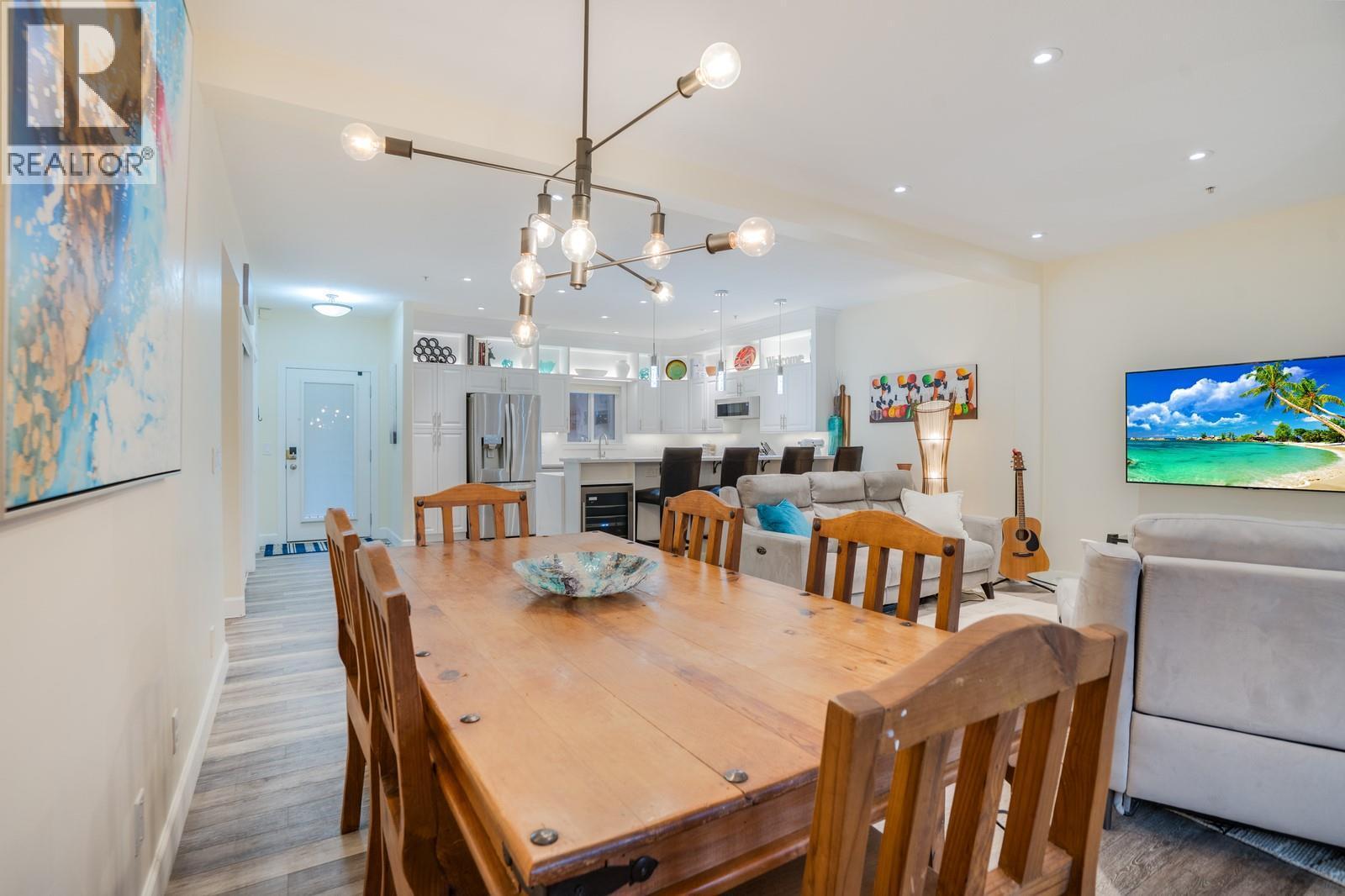 Welcome to your Okanagan escape—where everyday living feels like a year-round getaway. This beautifully reimagined 2-bedroom, 2-bathroom sanctuary at Lakeshore Gardens isn’t just a home; it’s a lifestyle upgrade wrapped in over $70K of thoughtful renovations and sun-soaked Okanagan charm. Step inside 1,308 sq. ft. of single-level living, where every detail has been carefully curated. The heart of this home is a stunning 2024 kitchen transformation, featuring floor-to-ceiling cabinetry with inset lighting, high-end Silestone countertops, quartz sink, and premium appliance package including 5-burner gas range, smart fridge with water filtration, and built-in beverage fridge—a true blend of style, function, and durability. Custom smart lighting on dimmers sets the perfect ambiance, while the spacious covered patio with gas BBQ hookup—your private outdoor oasis—invites year-round entertaining and relaxed morning coffee rituals. Both bedrooms are generously sized with walk-in closets, and the primary suite features a spa-like ensuite with custom vanity drawers and modern finishes. The second full bathroom has been completely refreshed with new fixtures, vanity, and rainfall shower head. But here’s where Lakeshore Gardens truly shines -- located directly across from the beach, it offers an outdoor heated pool, year-round hot tub, fully equipped gym, two guest rental suites for visiting friends & family, and additional flexible parking options for residents. Your huge secure storage room just steps from your unit means kayaks, paddleboards, and bikes have their own home. Walk to coffee shops, groceries, and waterfront dining—or simply stroll the beach trails that define the Okanagan lifestyle. This is more than semi-waterfront living; it’s waking up vacation-ready, every single day. Your Okanagan story starts here! (id:6769)