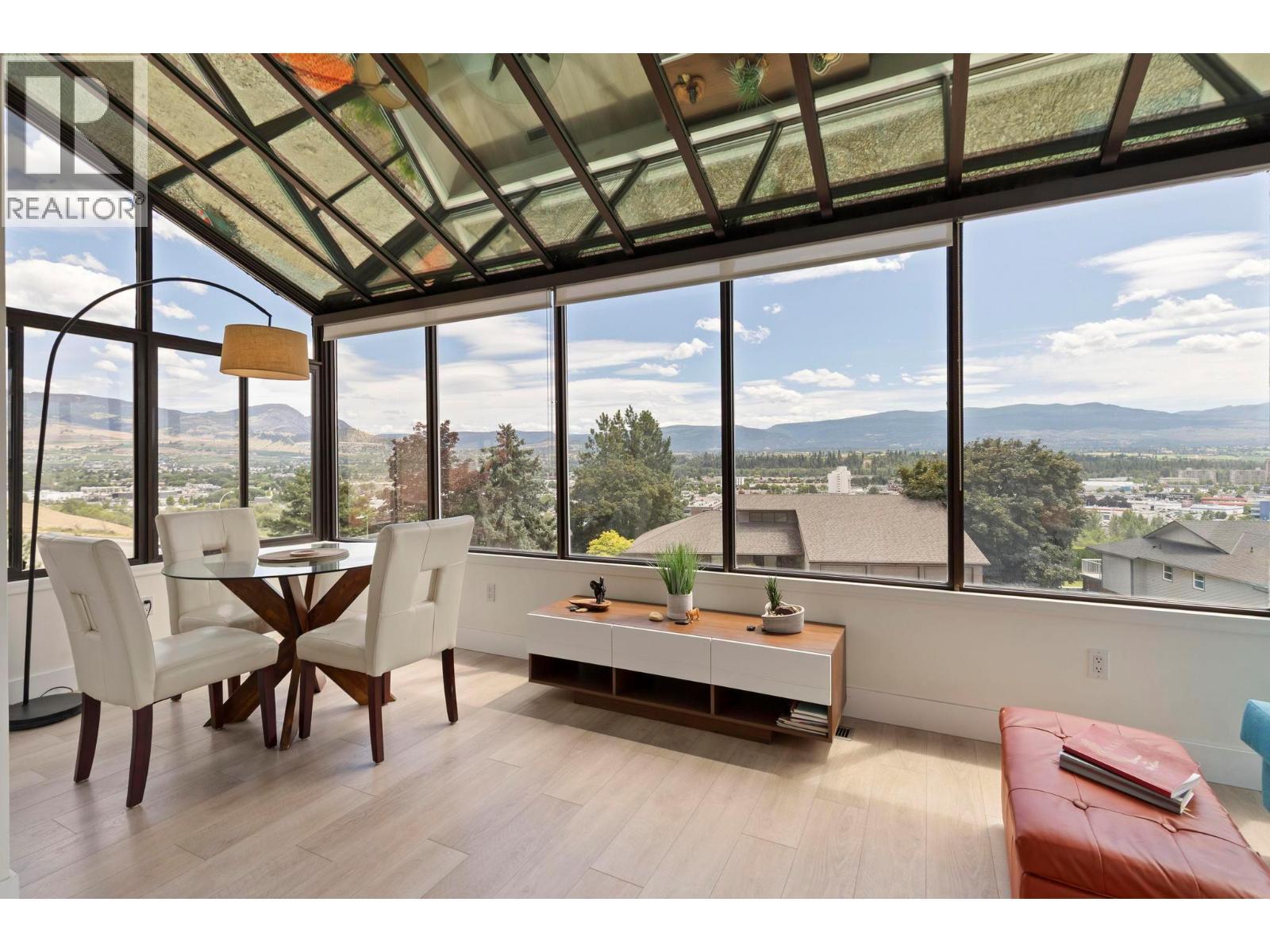 Channeling the spirit of L.A.’s iconic hillside homes, this architectural West Coast Contemporary masterpiece has been completely reimagined with sophistication and style. With around $400K in updates, every inch has been thoughtfully redesigned while preserving its original charm. Set on prestigious Dilworth Mountain, just minutes to downtown Kelowna, this 4-bed, 4.5-bath showpiece blends modern luxury with timeless character. Vaulted ceilings, a sleek gas fireplace, and a bold quartz kitchen with stainless steel appliances make the main living space unforgettable. The lofted area flex space is ideal for a home office, workout space, artistic retreat, or can be used as a bedroom. Enjoy breathtaking lake and mountain views from the solarium, oversized balcony, or your private hot tub patio off the vaulted primary suite. The spa-inspired ensuite, huge walk-in closet, and sunrise views elevate everyday living. Complete with a separate dining room, in-law suite, and incredible indoor-outdoor flow with multiple entertaining patios. Double garage plus plenty of extra parking. There’s even room to add a pool—perfectly positioned to capture the view and complete your mountainside oasis. Omineca Place isn’t just a home—it’s a vibe. (id:6769)