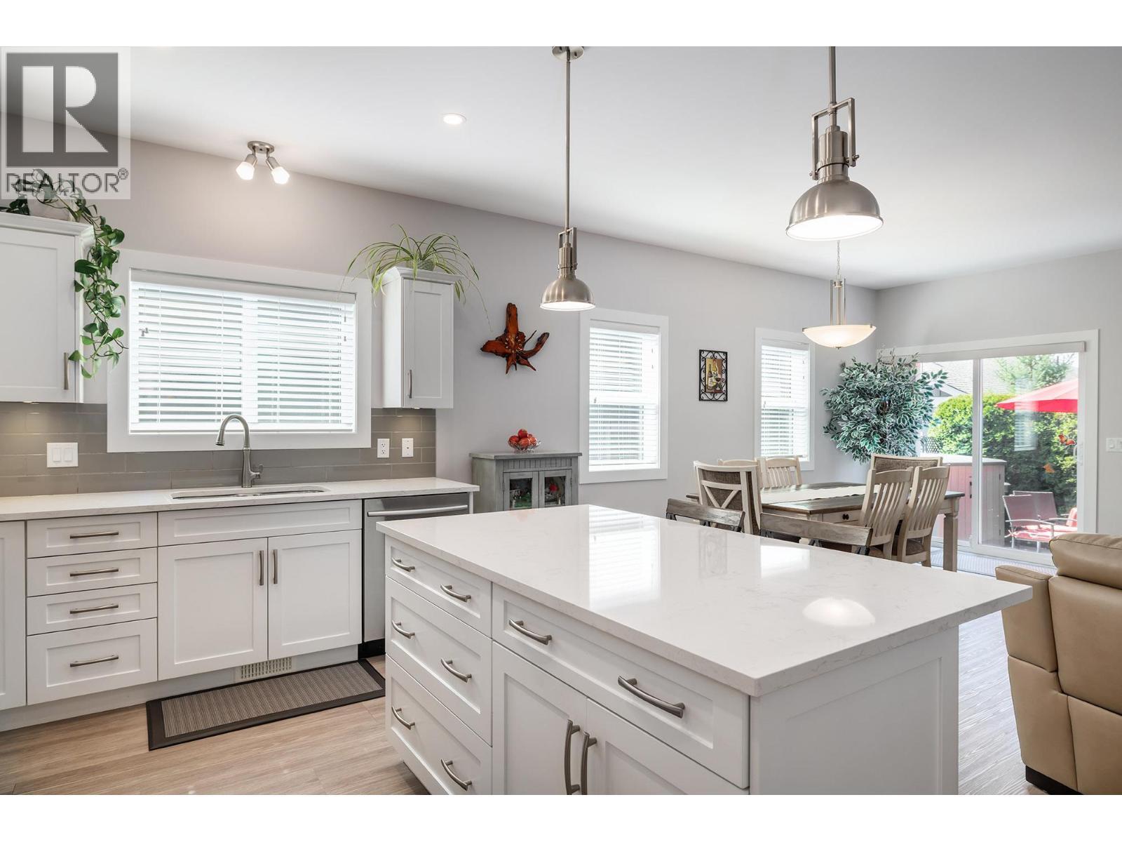 Thoughtfully designed, tastefully finished and a wonderful place to call home. Many extra features like solid surface countertops, open access to the den, lighting, rock, gas fireplace, extended dining area, exposed aggregate walkways and patios, covered gazebo, and more. Over $15,000 in extras packed into this beautiful property that all combine to make a difference. You really want to take your time and explore this gem. Large primary bedroom, a walk thru closet and oversized ensuite making this area a little oasis. The den is used as a TV room, making the living room ideal for relaxing or entertaining. Additional cabinetry in the garage for the handyman and for storage. FABULOUS LOCATION...right across from Two Eagles Golf Course and so close to shopping, dining, wineries and the lake. Take advantage of the beautiful Sage Creek Clubhouse, including a fitness center, party facilities and games room. No property transfer tax and strata fees of $625/month. So much value in this home - come and see for yourself. (id:6769)