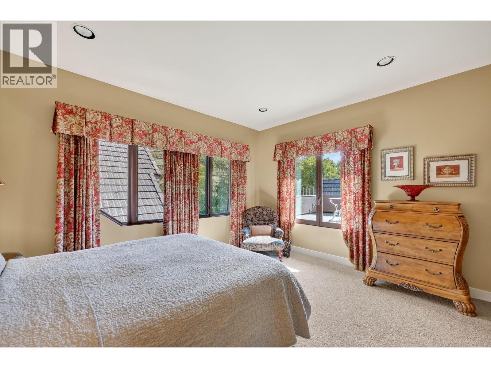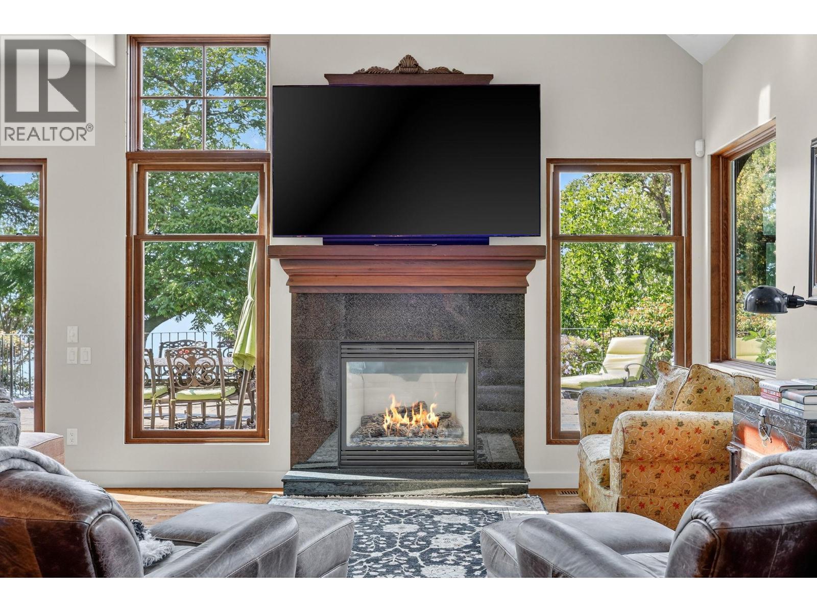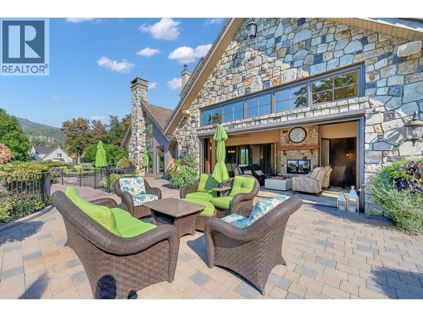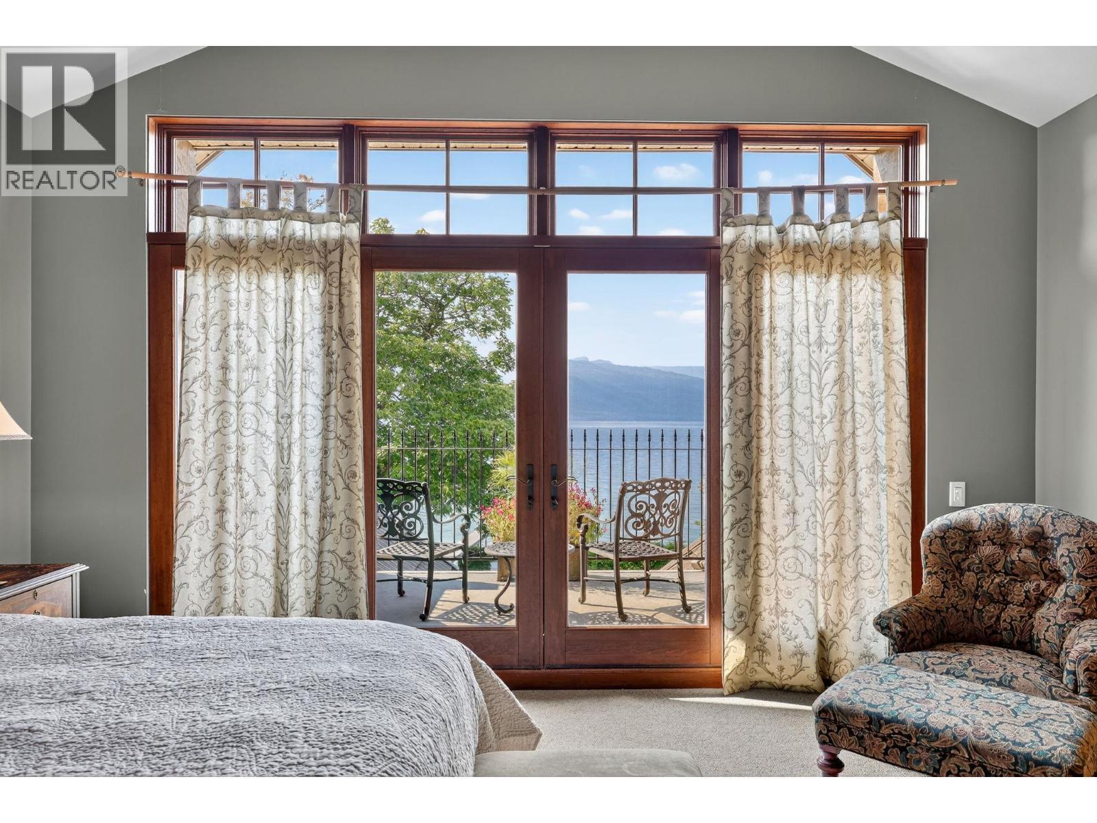 This is a rare opportunity to acquire one of the most distinguished lakefront estates on Okanagan Lake, perfectly positioned in the heart of Okanagan Centre in Lake Country. Set on approximately five and a half acres of impeccably manicured, park-like grounds with approximately 400 feet of private shoreline, and an orchard for farm status, this estate offers an extraordinary combination of expansive acreage, pristine waterfront, and exceptional privacy, just minutes from town amenities. The estate features a grand Tuscan-inspired main residence with four bedrooms and four bathrooms, complemented by a separate lakeside cottage, steps from the water, offering three bedrooms and two bathrooms, ideal for guests or extended family. Thoughtfully designed as a private resort-style retreat, the property includes a dock with private moorage, boat and jet ski lifts, an expansive private beach with pergola and outdoor living area, a large workshop, and beautifully maintained grounds that frame breathtaking lake views in every direction. The main residence is defined by timeless architecture, refined craftsmanship, and panoramic vistas of Okanagan Lake throughout. Floor-to-ceiling windows and sliding fold-away glass doors create a seamless indoor-outdoor living experience. Multiple fireplaces, including a dramatic stone-encased feature, add warmth and sophistication. The luxurious primary suite is a private sanctuary, offering a lake-facing terrace and a Capri-inspired ensuite complete with an elevated soaker tub and walk-in stone shower. An attached three-car garage, workshop, and ample additional parking enhance the estate’s versatility and hosting potential. Completing the outdoor experience is a custom-built Forno pizza oven, perfect for alfresco dining and unforgettable lakeside gatherings. A truly exceptional offering, this estate captures the essence of refined Okanagan lakefront living at its finest. (id:6769)