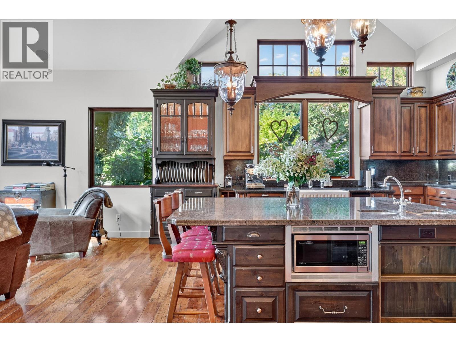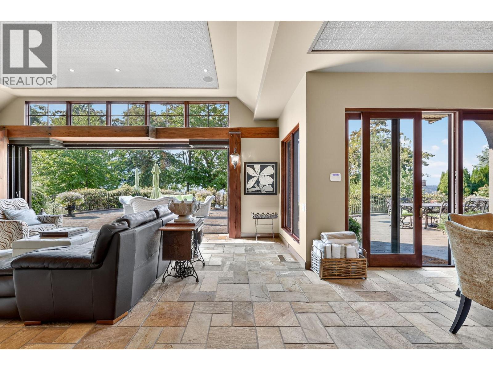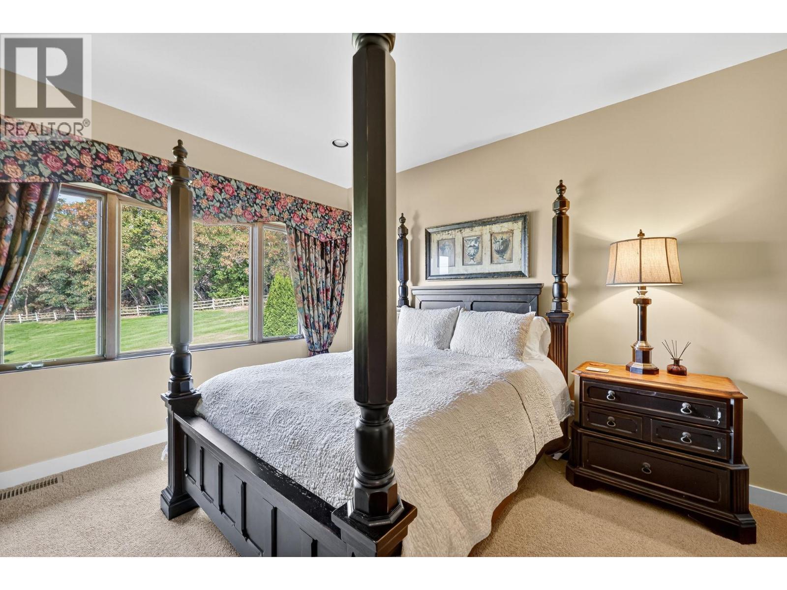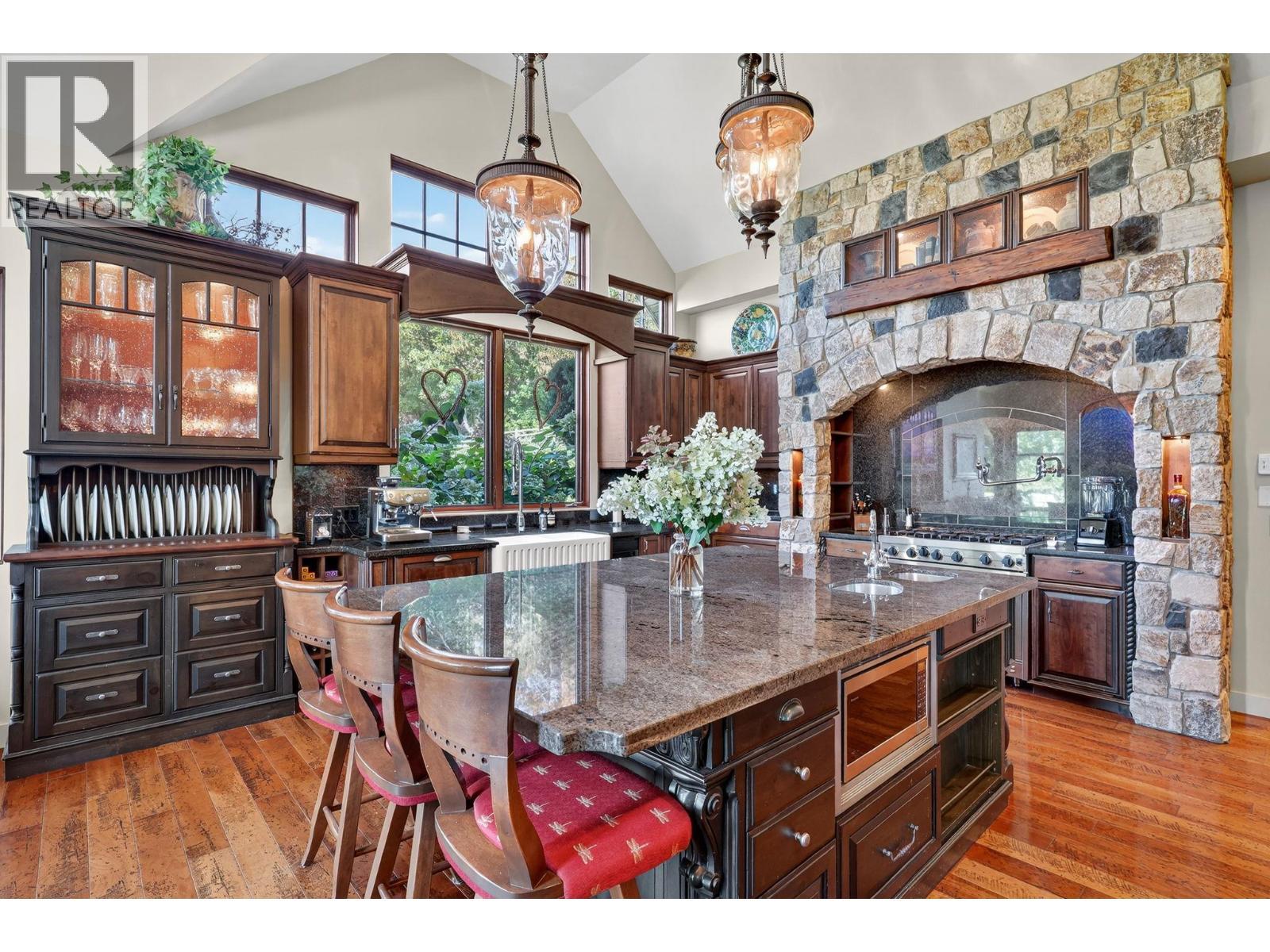 This is a rare opportunity to acquire one of the most distinguished lakefront estates on Okanagan Lake, perfectly positioned in the heart of Okanagan Centre in Lake Country. Set on approximately five and a half acres of impeccably manicured, park-like grounds with approximately 400 feet of private shoreline, and an orchard for farm status, this estate offers an extraordinary combination of expansive acreage, pristine waterfront, and exceptional privacy, just minutes from town amenities. The estate features a grand Tuscan-inspired main residence with four bedrooms and four bathrooms, complemented by a separate lakeside cottage, steps from the water, offering three bedrooms and two bathrooms, ideal for guests or extended family. Thoughtfully designed as a private resort-style retreat, the property includes a dock with private moorage, boat and jet ski lifts, an expansive private beach with pergola and outdoor living area, a large workshop, and beautifully maintained grounds that frame breathtaking lake views in every direction. The main residence is defined by timeless architecture, refined craftsmanship, and panoramic vistas of Okanagan Lake throughout. Floor-to-ceiling windows and sliding fold-away glass doors create a seamless indoor-outdoor living experience. Multiple fireplaces, including a dramatic stone-encased feature, add warmth and sophistication. The luxurious primary suite is a private sanctuary, offering a lake-facing terrace and a Capri-inspired ensuite complete with an elevated soaker tub and walk-in stone shower. An attached three-car garage, workshop, and ample additional parking enhance the estate’s versatility and hosting potential. Completing the outdoor experience is a custom-built Forno pizza oven, perfect for alfresco dining and unforgettable lakeside gatherings. A truly exceptional offering, this estate captures the essence of refined Okanagan lakefront living at its finest. (id:6769)