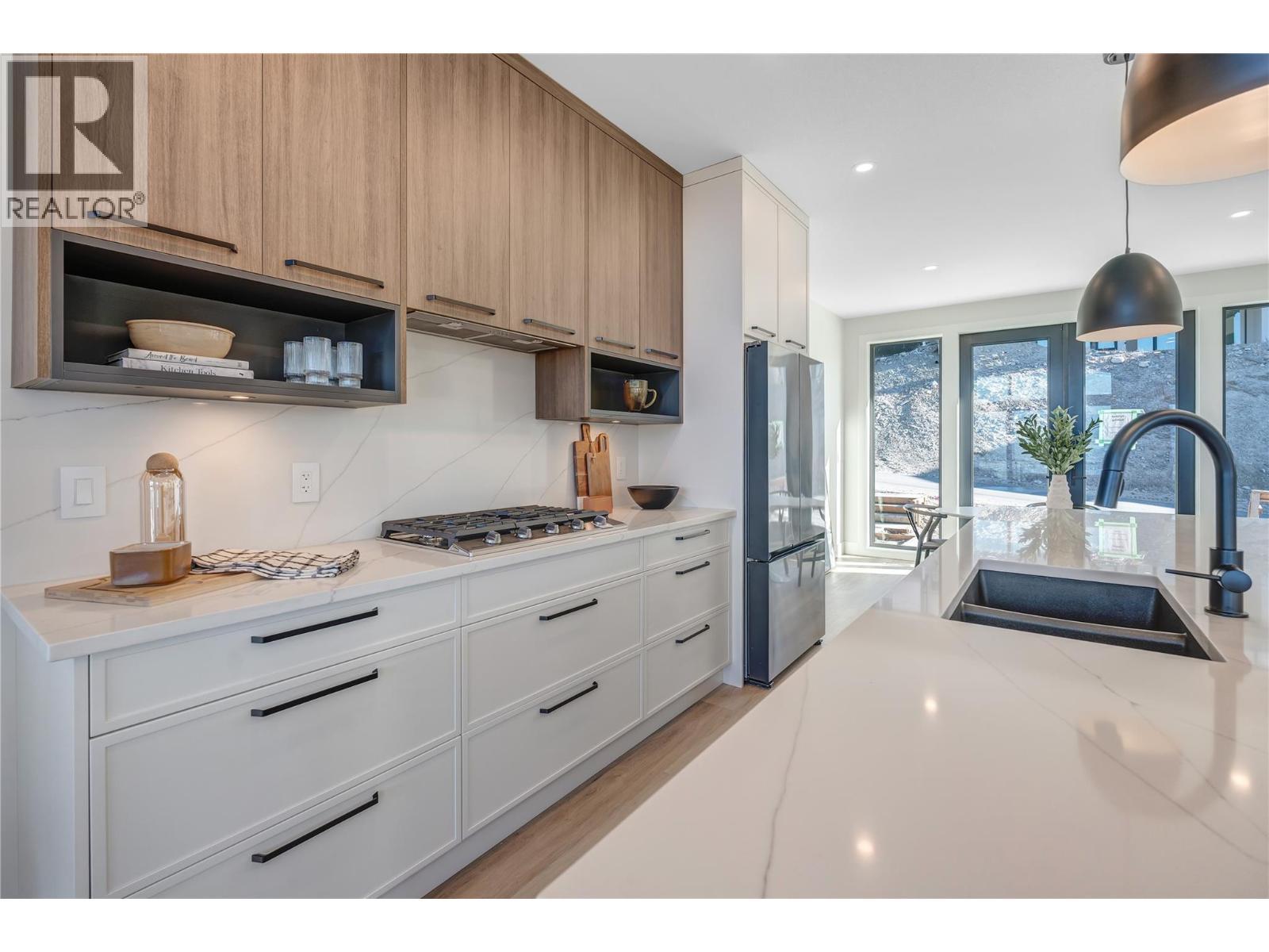 Thoughtfully designed modern duplex with breathtaking views of Skaha Lake and the Okanagan Valley located in The Ridge Penticton. This home boasts 3 storey's of luxurious living space spanning over 2100 square feet and has been designed with convenience in mind, featuring an elevator to take you to each level with ease. Enjoy the amazing views from the top floor while having your morning coffee or entertaining guests for dinner. This floor also has a conveniently located bedroom/den or office space. Bring in groceries with ease from the level laneway access. On the second floor you'll find a spacious laundry room, primary bedroom with 5 piece ensuite with in floor heating and walk in closet. Another spacious bedroom with it's own 4 piece ensuite is also located on this floor. The theatre room on the lower level is perfect for watching sporting events or family movie nights. Featuring quartz countertops, luxury vinyl plank floors, stainless steel appliances, modern lighting packages and 2 car tandem parking in the garage. Enjoy the Okanagan lifestyle with this easy, turnkey living home. (id:6769)