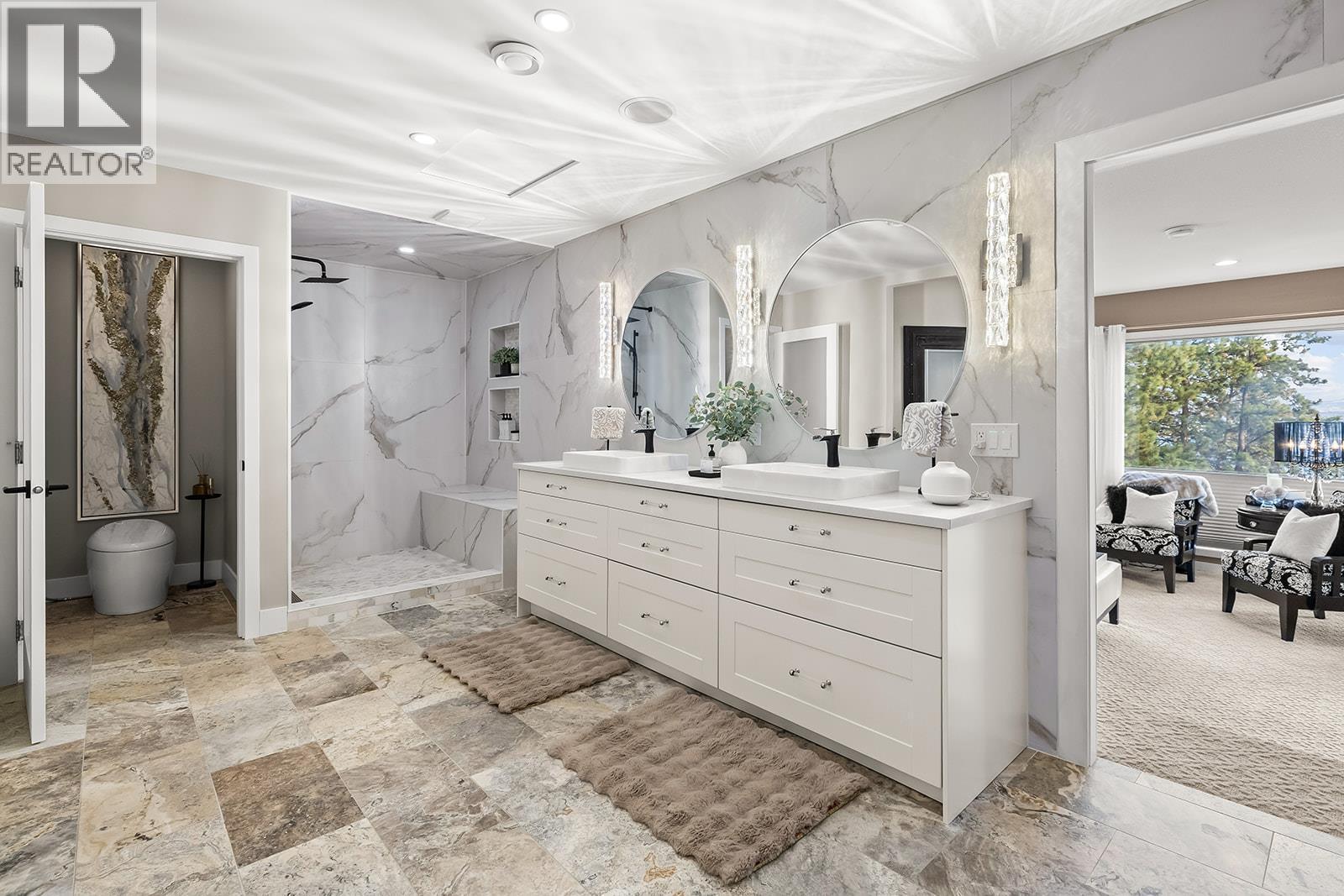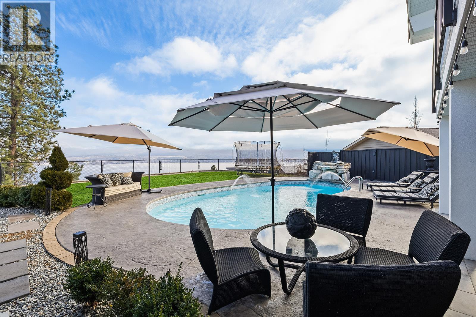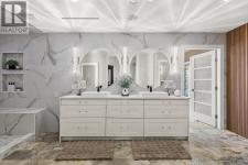 Luxury Living with Resort Style Comfort. Experience privacy and lifestyle in this updated 3-level split home featuring 4 bedrooms and 4 bathrooms. The primary bedroom is located in a private wing, while the upper level offers 3 bedrooms, 2 bathrooms, including another primary bedroom with its own ensuite and deck access. The chef’s kitchen dazzles with custom leathered granite countertops, heated Travertine floors and premium Electrolux appliances. The primary bedroom wing offers panoramic pool views with direct pool access, a spa inspired ensuite featuring a smart toilet, heated floors, and a luxurious shower with humidifier, creating a true retreat. The lower level an entertainer’s dream with a rec/movie room with bar, gas fireplace, and hardwired interior and exterior sound system. A bathroom convenient for pool access with heated floors and Thermasol steam shower. Step outside to a refinished tiled in-ground pool with waterfall, limestone pathways, lush hydrangeas, a covered all season patio with stone construction, outdoor heating, and electrical. Additional features include cement siding with black trim, concrete tile roof, water on demand, upgraded 200 amp service, central vacuum, wainscoting and crown moulding and Kohler fixtures. Finishing the property is a newly built 1 bathroom legal suite above the garage with panoramic lake views. Perfect place for an Airbnb business. A rare offering that combines luxury, lifestyle, and an excellent investment opportunity awaits. (id:6769)