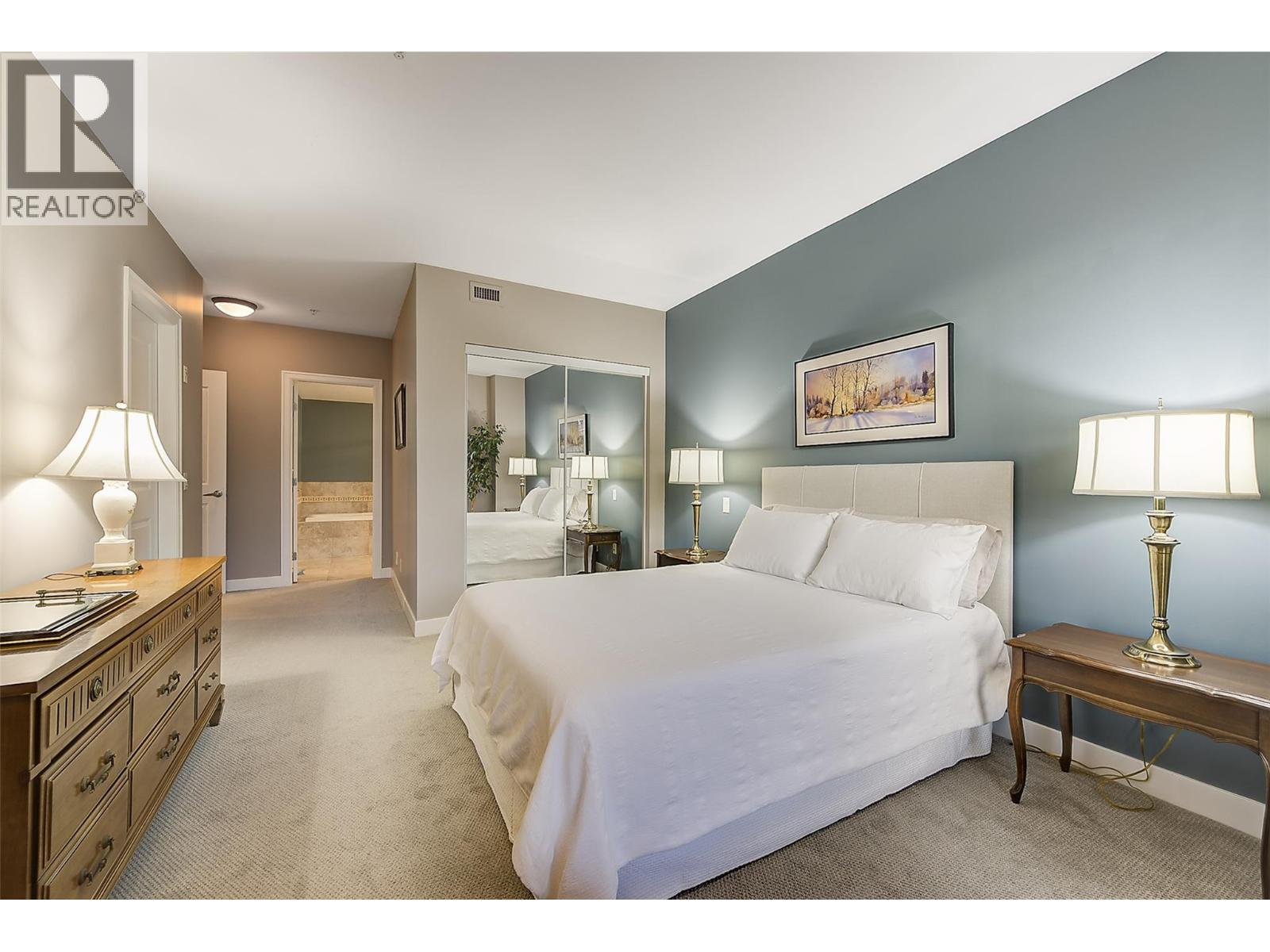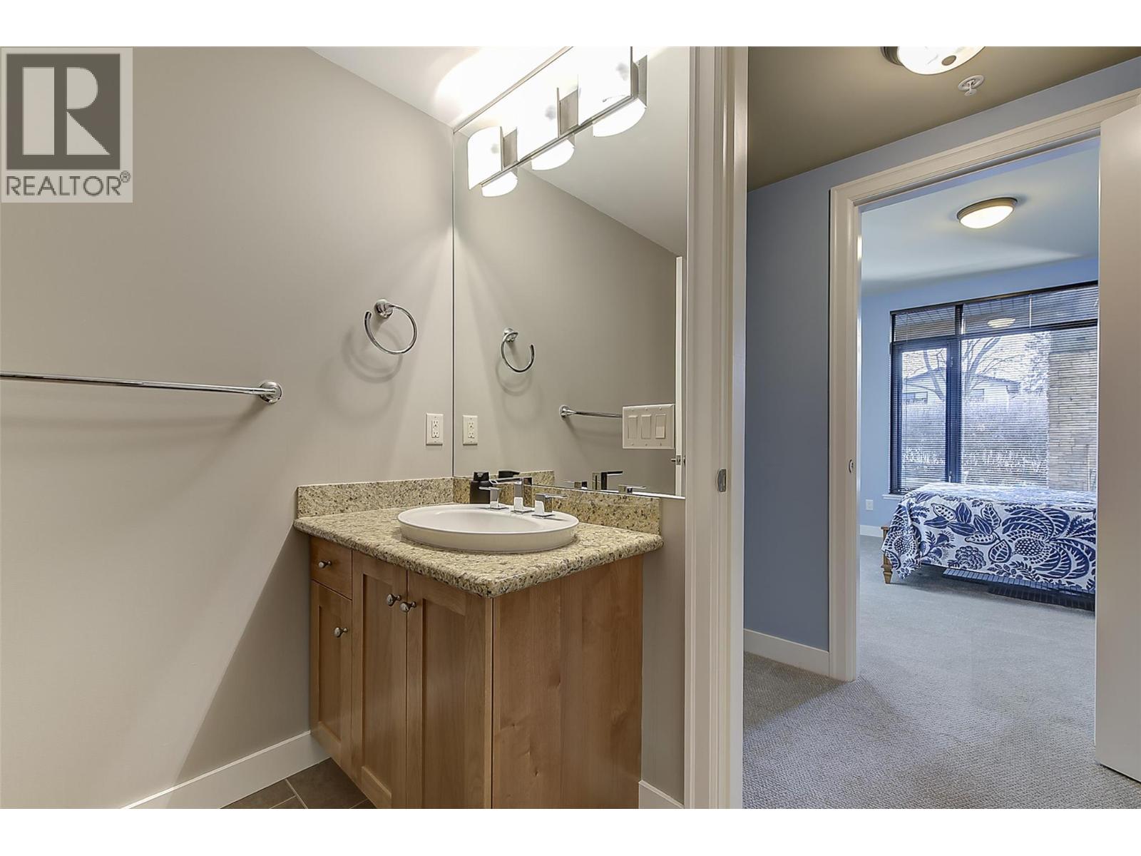 OPEN HOUSE SAT FEB 14 1-3PM! LUXURIOUS LIVING AT UPSCALE ""SOUTHWINDS AT SARSONS"" only a 10 minute walk to Lake and lovely Sarsons Beach and Park! This stunning 1497 SF Level Entry Condo with a Beautiful South facing Covered Patio on landscaped grounds is Beautiful. Huge windows flood the open plan with tons of natural light! 9' ceilings, warm decor, engineered hickory hardwood in main living areas, tile in bathrooms and cozy carpets in bedrooms. Large Open Maple Kitchen with large island, granite counters, oodles of cabinets, and under cabinet lighting. SS appliances, New Bosch dishwasher! Dining area has glass door to a covered concrete patio and garden area for seamless in-out lifestyle. Generous Great room features a gas feature fireplace and huge wall to wall windows bringing the outside in. Double glass doors to a separate office/den off the entry. Luxurious prinary bedroom with Extra large 5 piece Ensuite with separate soaker tub/shower, travertine style tile floors, granite counters. Split bedroom design. 2nd bedroom has walk through closet, generous 3 piece bathroom with huge walk in tile/glass shower. Big laundry with cabinets. Southwinds is a ""Cut Above"" in luxury design with an Impressive main entry, Separate clubhouse with full fitness facilities, big indoor pool and hot tub, & extensive landscaped and pond areas, walking trails & gardening opportunities for the green thumb! Underground parking & big secure storage. 1 dog or cat, 15"" or 12kg. (id:6769)