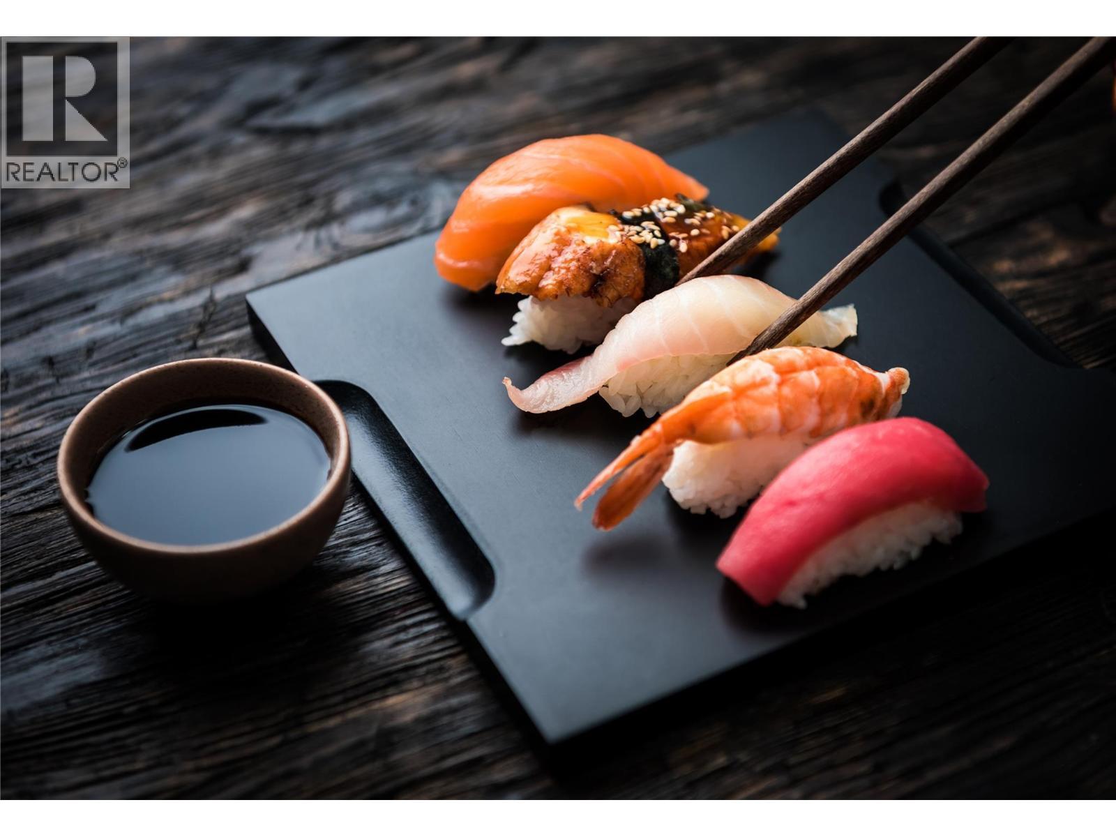 Presenting a successful and profitable Sushi Restaurant at the center of Kelowna! This a rare opportunity to acquire a turn-key restaurant with arguably one of the best locations in the heart of Kelowna. This busy and vibrant shopping center with unlimited parking and zero vacancy offers unmatched potential on top of already profitable business. The sellers worked so hard to establish the reputation and lovely atmostphere that growing number of customers notice. The growth should continue with the surrounding areas becoming one of the pot spots for population growth. PRICED TO SELL as the sellers are moving on to the next chapter. There is transferable Liquore license. Licensed as restaurant under 49 seats. Training will be provided. Many recent updates and equipment included. Actual loction is confidential. Do not approach the staff. Sign the Confidentiality Agreement for the actuall location. (id:6769)