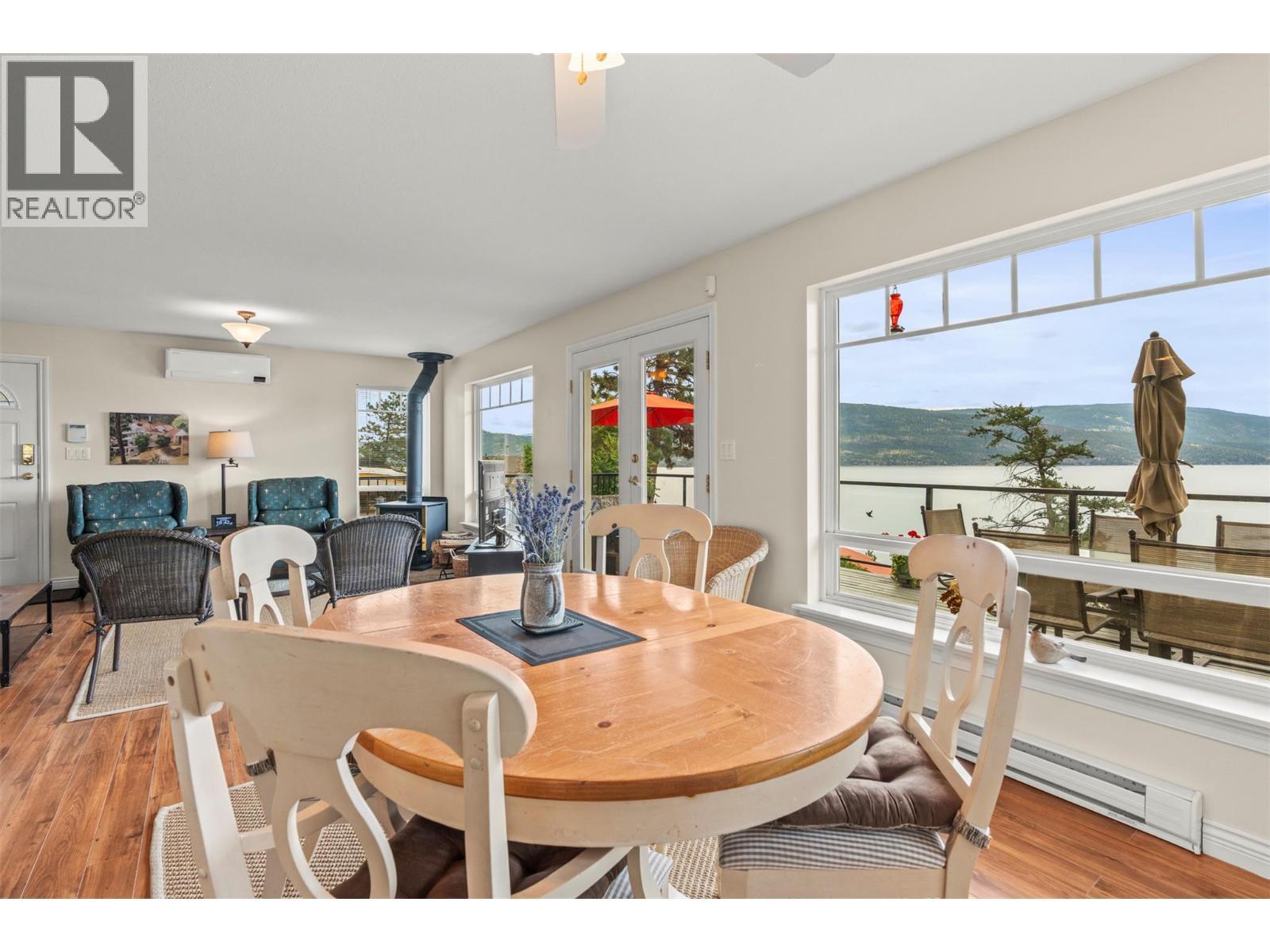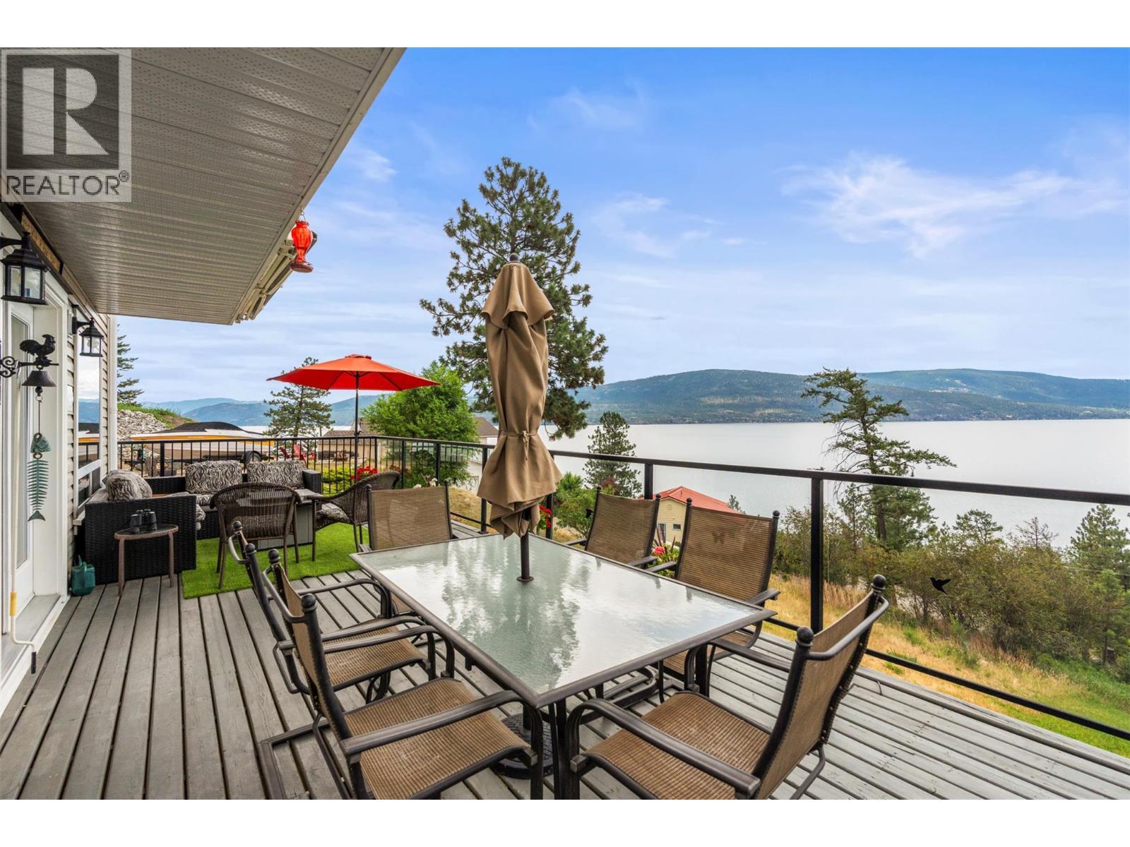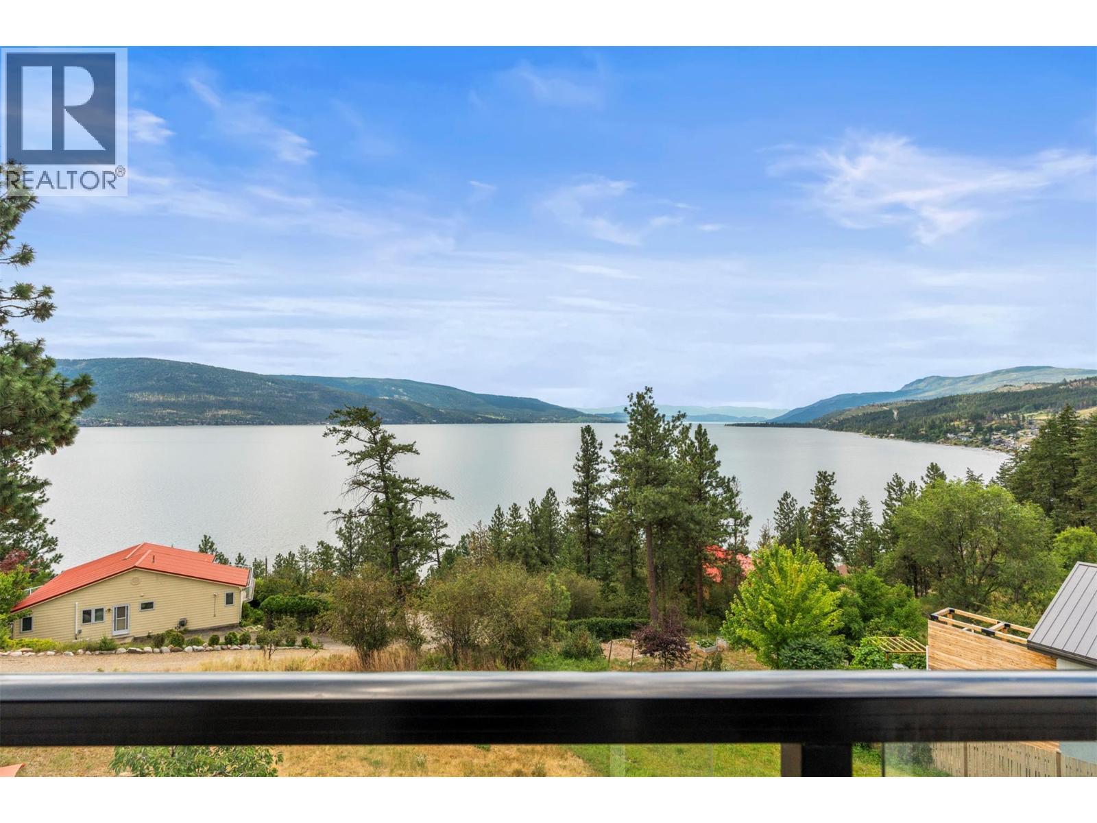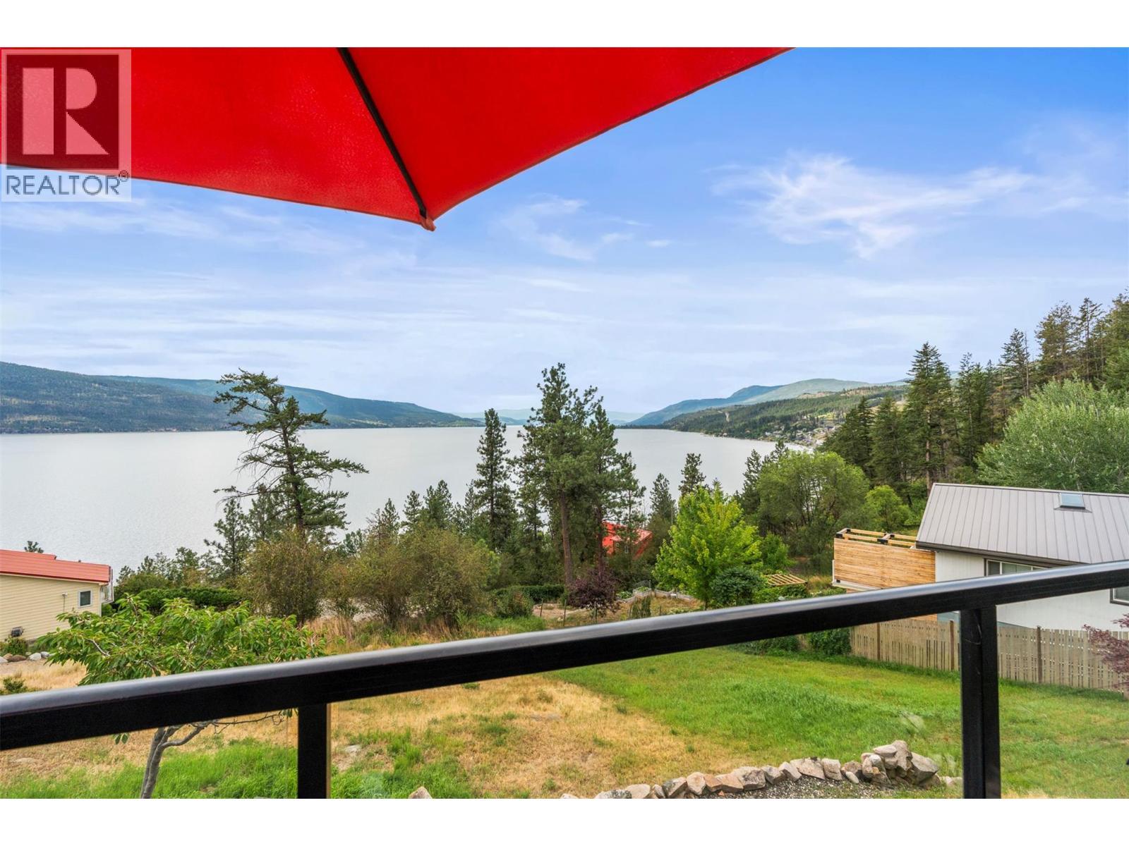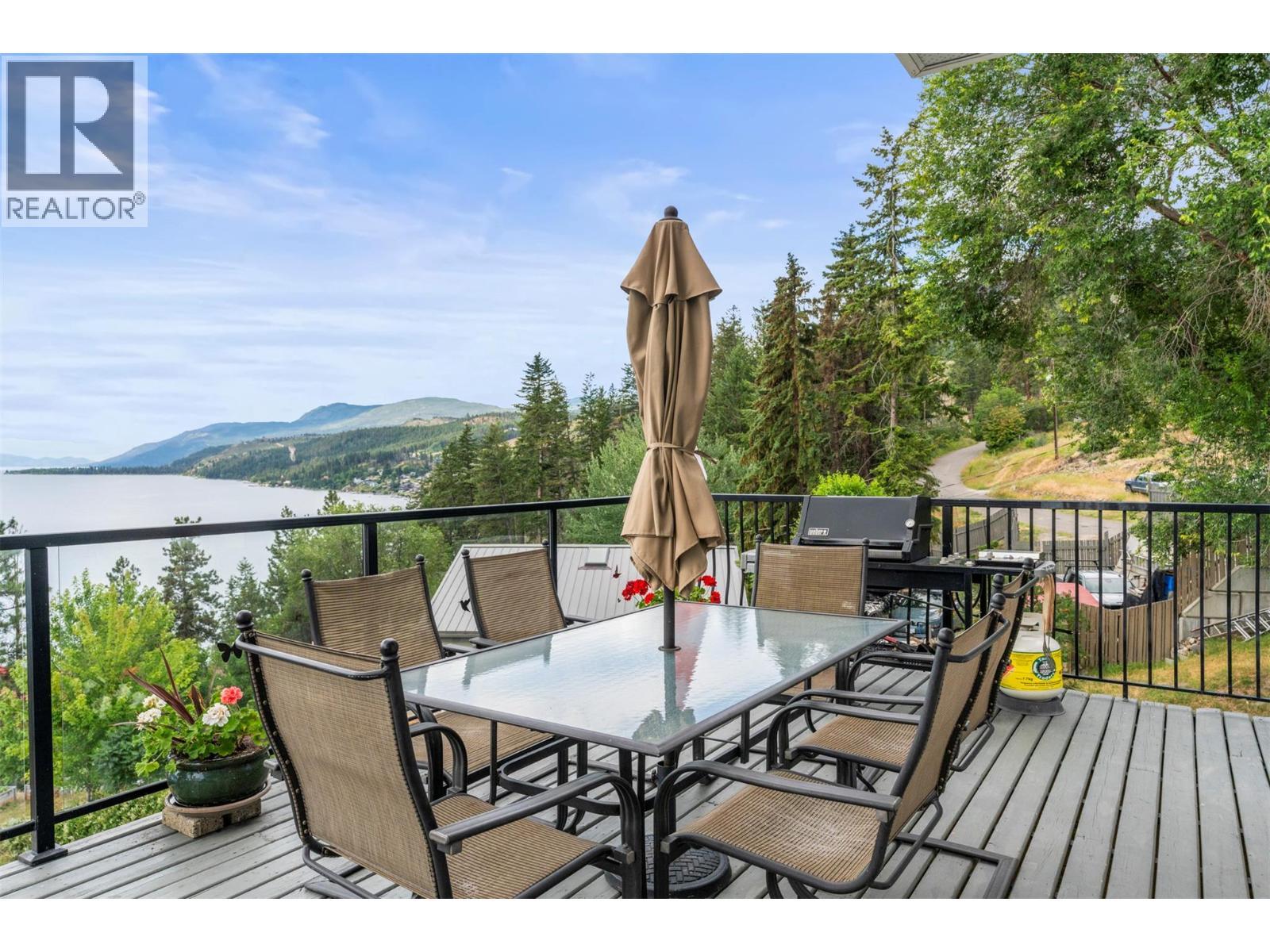 Welcome to your dream lakeview retreat! This well-maintained family home is perfectly perched to capture breathtaking expansive views of the lake from all three levels, with large south-facing windows and multiple decks to soak in the scenery. Whether you're sipping coffee on the upper balcony or enjoying a sunset by the fire pit, the views are truly unmatched. Inside, the layout is both functional and flexible. The main floor features an open-concept kitchen and dining area, seamlessly flowing into a cozy living room with a wood fireplace and walkout to a spacious deck. A full 3-piece bathroom and bedroom complete the main level. Upstairs, the oversized primary suite offers a true retreat with a sitting area, skylit 4-piece ensuite with soaker tub, and private balcony. A second bedroom with 2-piece ensuite is located across the hall. The fully finished walk-out lower level includes two additional bedrooms, a full bath, kitchen and laundry—ideal for an in-law suite or mortgage helper.Outside, enjoy ample parking including RV/boat space, a carport, mature fruit trees, a shed for garden tools, and a welcoming neighbourhood vibe. You’re just 5 minutes to the public beach and boat launch and only 10 minutes to Fintry Park. This is lake life at its best, flexible, scenic, and full of possibility. (id:6769)