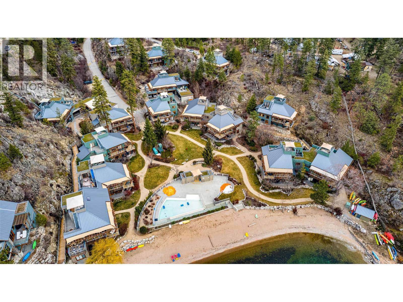 Welcome to life at The Outback Resort, where everyday living feels like a permanent vacation. This beautifully appointed three bedroom home offers the rare opportunity to own within one of the Okanagan’s most sought after lakefront communities. Inside, soaring ceilings and an open concept layout create a bright and inviting atmosphere, complemented by warm manufactured hardwood flooring throughout. The kitchen is designed for both function and style, featuring stainless steel appliances, abundant white cabinetry, tile backsplash, and a generous island ideal for entertaining. Two bedrooms are located on the main level, including one with its own private ensuite. The south facing deck and welcoming front entrance provide ideal spaces to relax and enjoy the peaceful surroundings, with sliding doors from the living area opening to take in tranquil Trout Lake views. The upper level is dedicated entirely to the primary retreat, complete with a spa inspired ensuite and private deck for peaceful mornings or sunset evenings. Ownership at The Outback extends well beyond the home itself. Residents enjoy two pools with change rooms and showers, four hot tubs, two private beaches, two fire pits, a playground, fitness centre, tennis and pickleball courts, onsite mail service, and seven day per week maintenance, groundskeeping, and snow removal. Surrounded by walking trails and secured behind a gated entrance, this is a lifestyle defined by relaxation, recreation, and connection. Experience resort living at its finest. (id:6769)