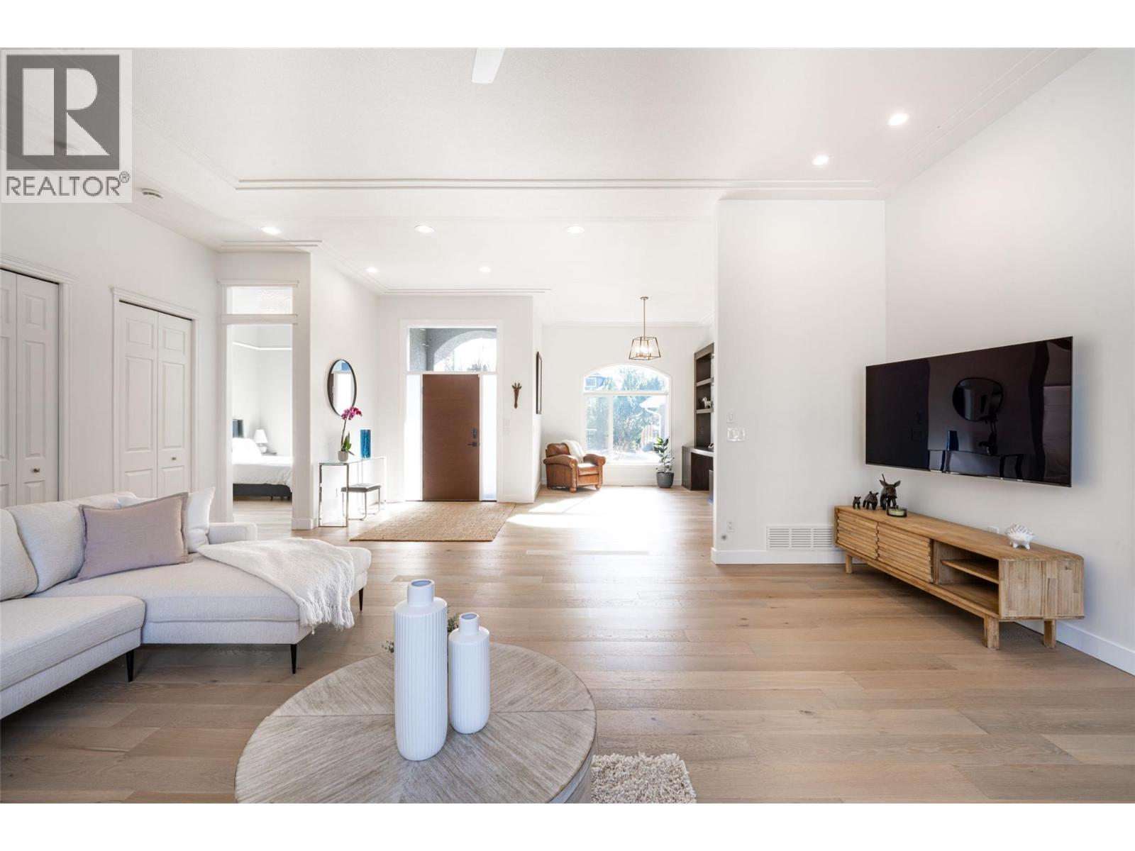 Tucked away on a private cul-de-sac backing onto protected parkland, this Dilworth Mountain Luxury Home retreat offers over 5,060 sq ft of refined living with rare privacy, elevated views, and seamless access to the heart of Kelowna. Just minutes from downtown, Mall, golf courses, Lillooet park this home delivers seclusion and central convenience. Soaring ceilings and timeless interior finishes highlight the open-concept main level, anchored by a gourmet island kitchen, and an exceptional 1,000 sq ft patio—crafted for true Okanagan living. The main-level primary suite features dramatic ceiling height and a spa-inspired ensuite, complemented by two additional bedrooms connected by a Jack-and-Jill bathroom. The walkout lower level is designed for entertaining, complete with a massive rec room, dedicated theatre, and a spacious guest bedroom. A fully self-contained SUITE with in-floor heating, private driveway, and separate garage offers outstanding flexibility for extended family or premium rental potential. TRIPLE GARAGE, shed, an electric vehicle charging station, Lennox high-efficiency furnace, on-demand hot water system, and humidifier. New engineering hardwood floor throughout the main level, designed Norelco kitchen cabinets (2025), new windows and FloorX2 Fusion+Nano garage flooring system . Over $190,000 on upgrades in the past 4 years listed. Enjoy distant city lights and peek-a-boo lake views—this home has it all as Dilworth living at its finest. (id:6769)