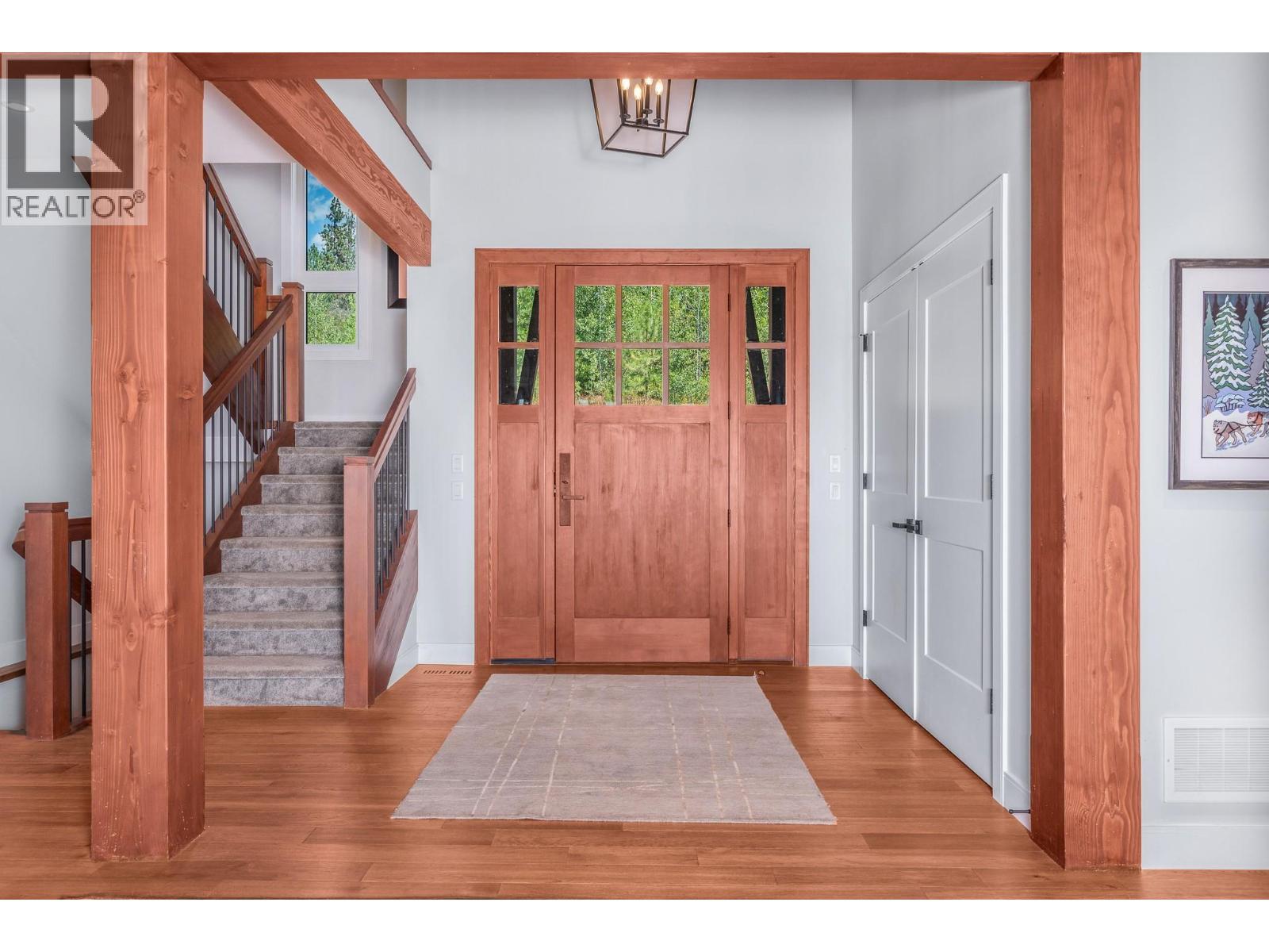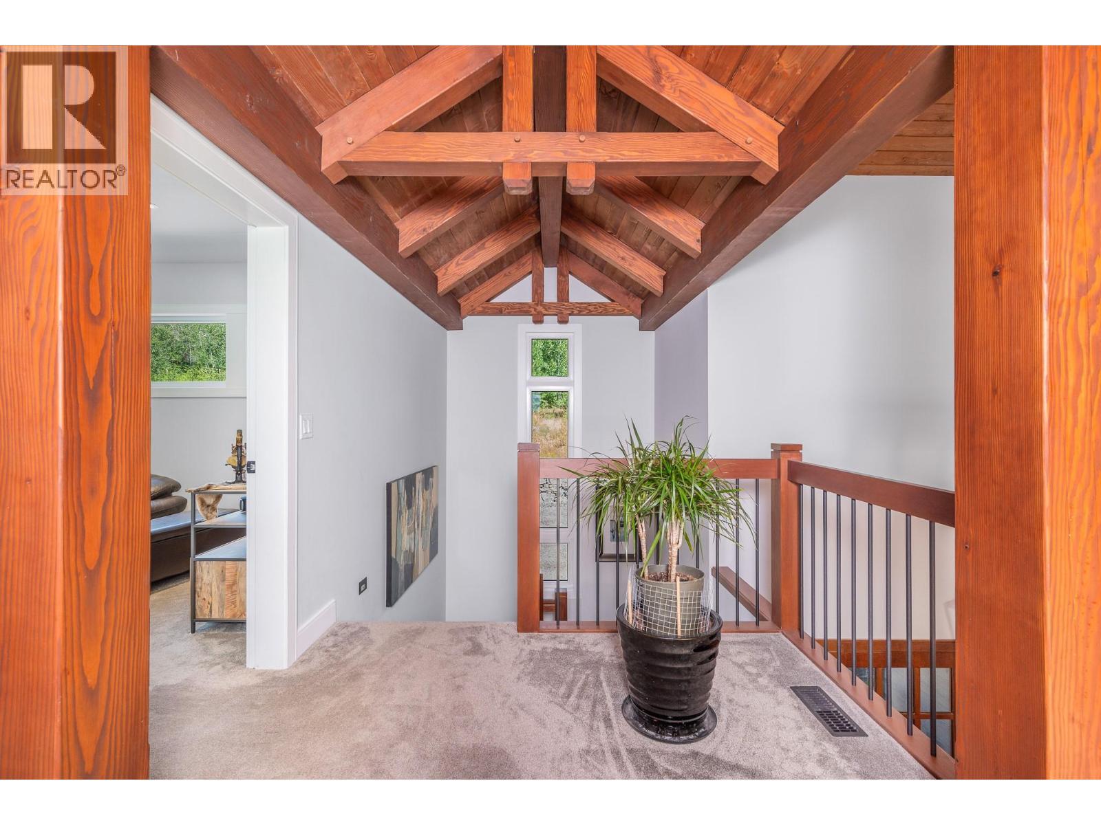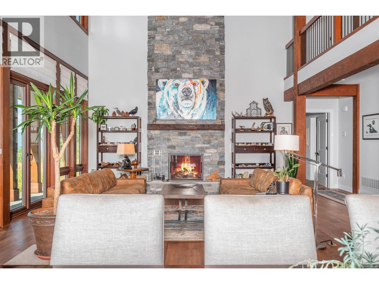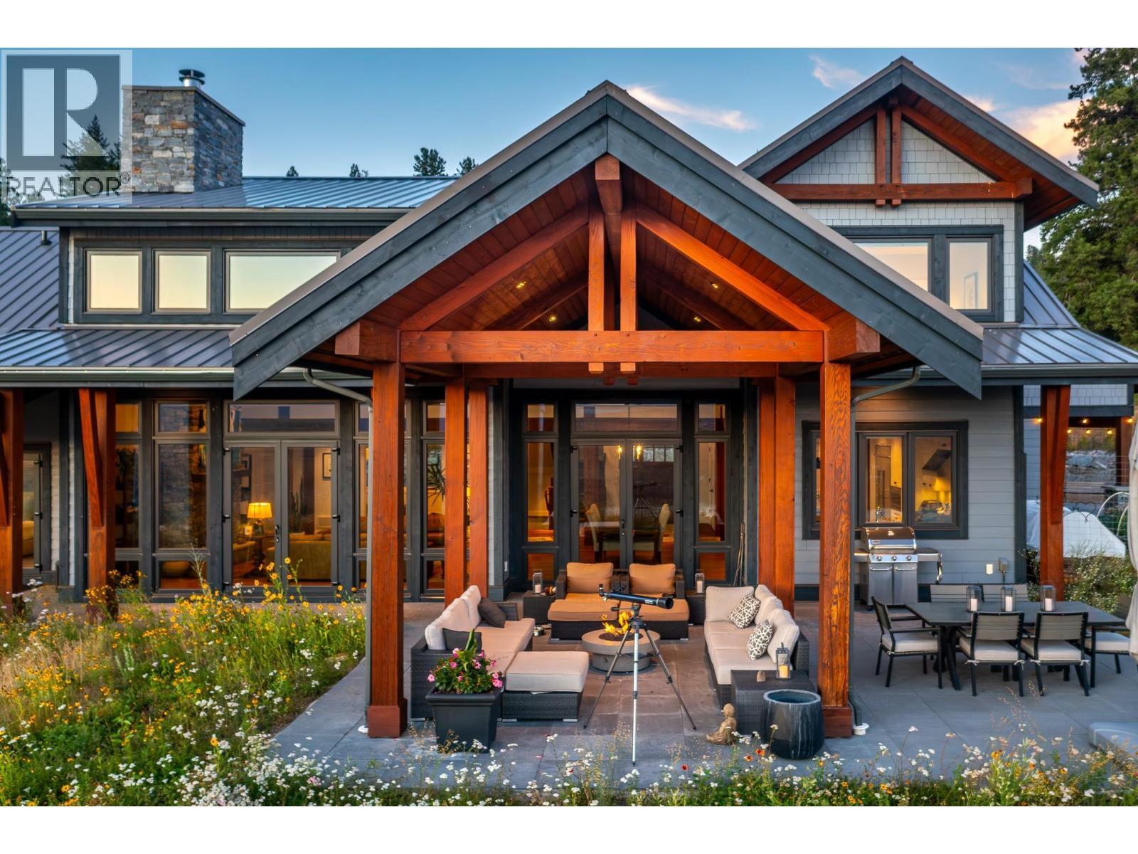 Set high on nearly 5 acres of gently sloped hillside, this private estate captures sweeping south-west views of the Okanagan Valley with no immediate neighbours. Built in 2021 by Gibsons, this level-entry timber frame residence showcases striking structural Douglas fir beams and tongue-and-groove ceilings, complemented by a high-efficiency modern wood-burning fireplace. Designed for both comfort and longevity, the home offers 4 bedrooms and 2.5 baths, with the primary suite on the main level and additional bedrooms upstairs. Soaring 23’ ceilings elevate the principal living space, while engineered hardwood, honed granite, Hunter Douglas window coverings, and a Wolf gas cooktop with premium appliances complete the interior. Mechanical systems are exceptional: geothermal heating and air conditioning with 3-zone climate control, steam humidifier for beam preservation, RO water filtration (well-fed), recirculation pumps, Generac transfer switch wired for a backup generator, and full security system. Outdoors features include a 3-bay pull-through garage, lifetime tin roof, fully irrigated grounds, hot tub, outdoor shower, and extensive fire protection with a 30,000-gallon reservoir, hydrant, and 200’ spooled fire hose. A rare blend of craftsmanship, privacy, and engineered excellence. All measurements approximate, verify if important. (id:6769)