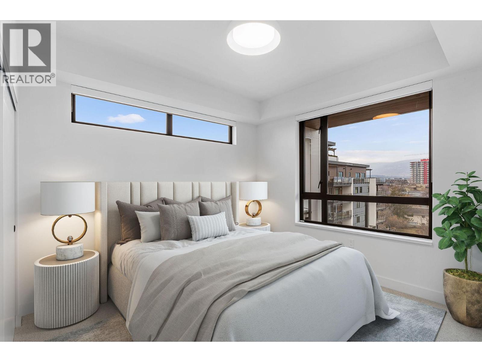 Welcome to ALMA, proudly developed by Mission Group. This south facing 2-bedroom, 1-bathroom home is filled with sunlight throughout the day, enhancing the open-concept layout and creating a bright, inviting atmosphere. The contemporary kitchen features sleek cabinetry, quartz countertops, stainless steel appliances, and ample storage seamlessly connecting to the dining and living areas for effortless entertaining and everyday comfort. Large windows frame partial lake views while maximizing the warm southern exposure Residents can enjoy amenities incl. an 8,000 sq ft lakeview terrace w/firepits, BBQs, and community gardens as well as a fully equipped fitness center, dog wash, & bike maintenance station. With a walk score of 93, you’re steps from transit, KGH, shops & restaurants of vibrant Pandosy Village, and beautiful Okanagan Lake. sq ft and room sizes are approximate and may vary. Photos may be of a similar home and layout. May be virtually staged . This home is newly constructed and move-in ready. (id:6769)