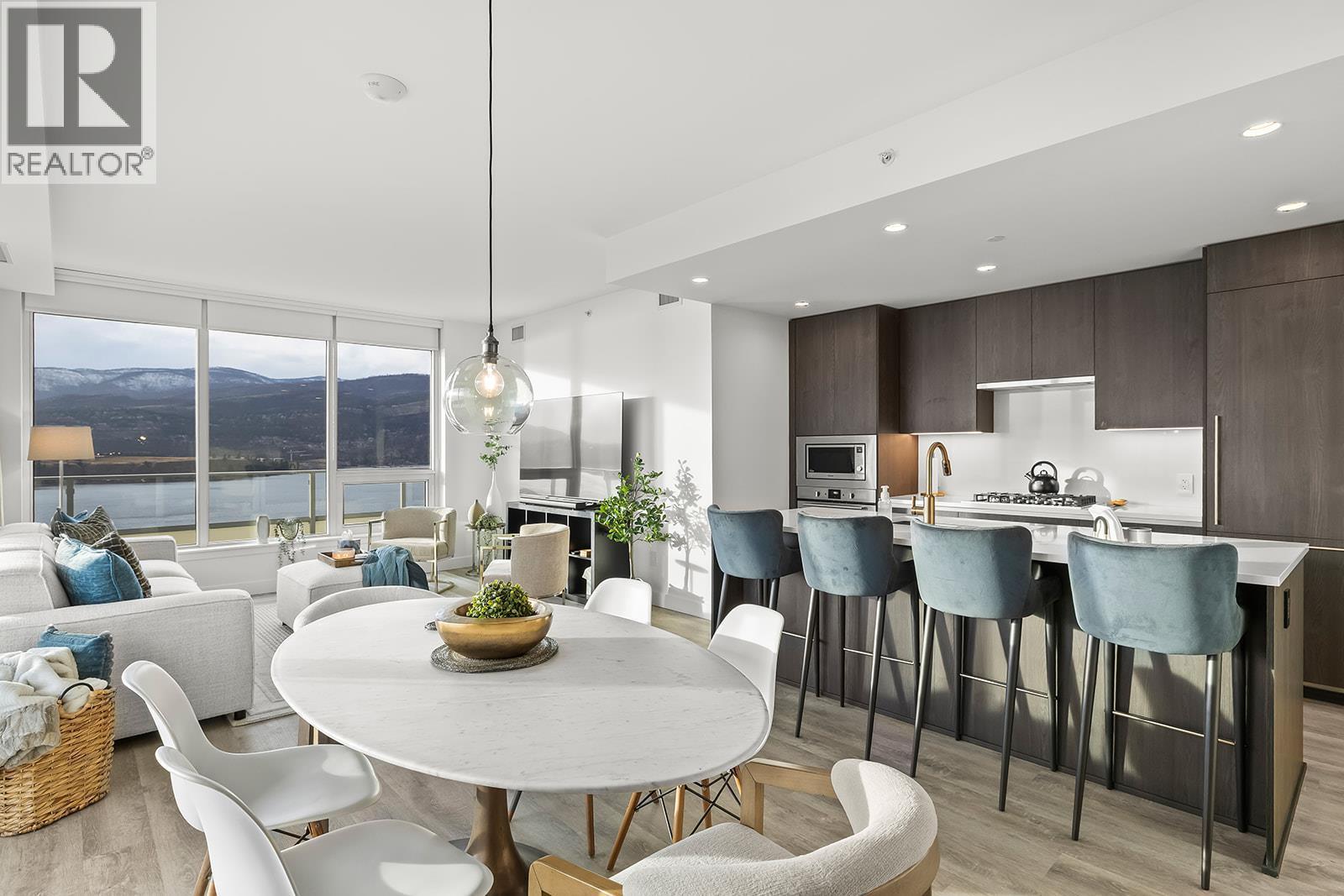 Water Street by the Park continues to redefine luxury living in downtown Kelowna, blending elevated design with sweeping lake and mountain views from the 20th floor stretching both South and North across Okanagan Lake. Natural light fills the home through expansive windows, enhancing the spacious 3 bedroom plus den/storage layout designed for comfort and flexibility. A wrap-around balcony extends the living space outdoors, creating a seamless connection to the ever changing scenery, while one secondary bedroom offers its own private balcony for added versatility. The primary suite feels like a true retreat with balcony access, a walk through closet, and a spa inspired ensuite featuring double vanity, soaker tub, and separate glass shower. The designer kitchen anchors the main living area with a large island, gas cooktop, wall oven, built-in microwave, integrated fridge and freezer, plus a wine fridge. One secure parking stall adds everyday convenience. Residents enjoy resort style amenities including a rooftop pool, two hot tubs, fire tables, fitness centre, yoga and spin studio, sauna, theatre, putting green, dog wash, indoor play area, and multiple social and co working spaces, all steps from beaches, shops, cafes, and restaurants that define the Okanagan lifestyle. (id:6769)