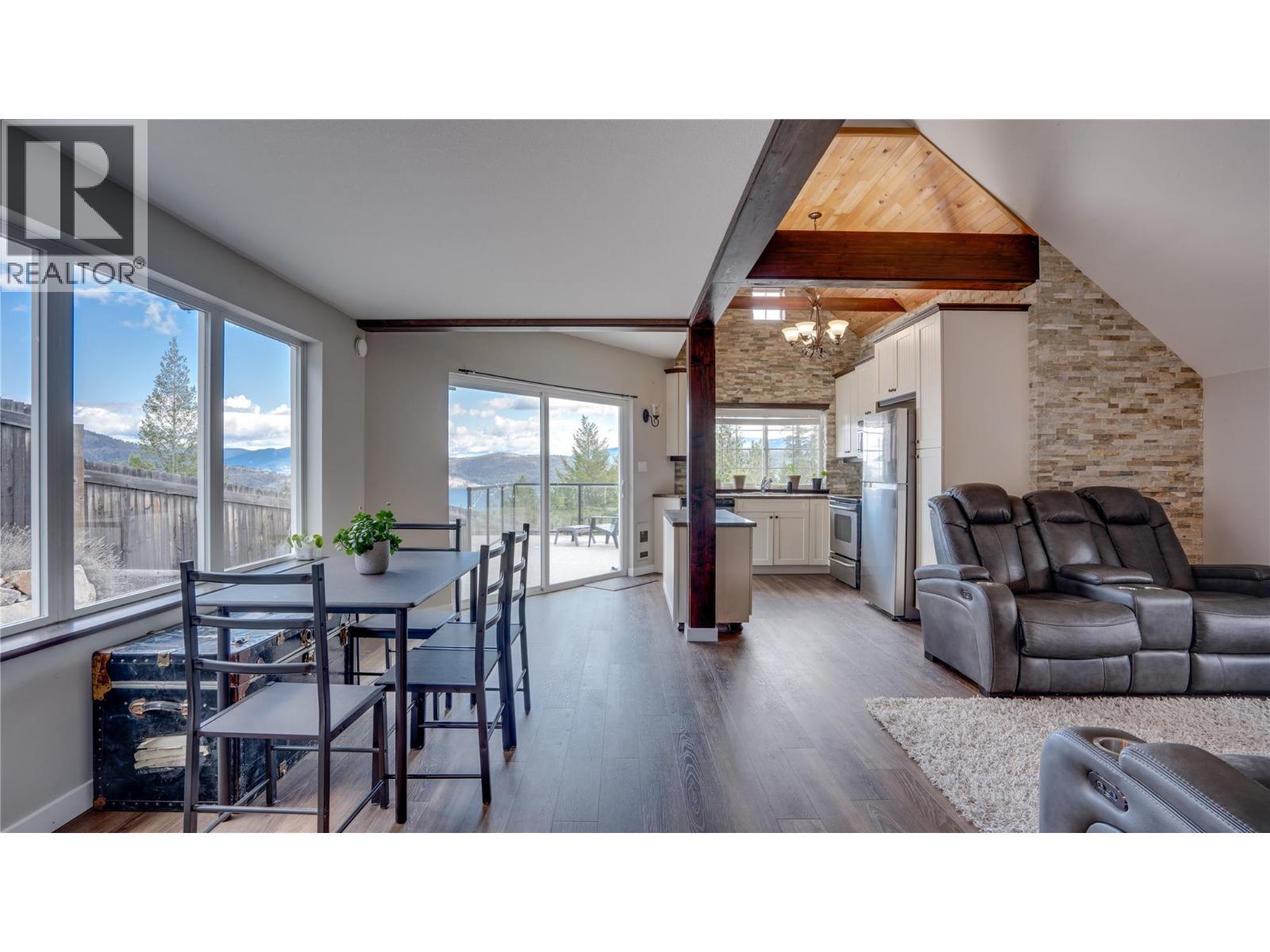 Breathtaking views of Okanagan Lake make this 2–3 bedroom home a true hidden gem. Currently configured as a spacious two-bedroom layout, the loft can easily be converted back into a third bedroom, offering flexible living options for families or guests. Tucked into a private, park-like setting and surrounded by lush forest, the property feels like a peaceful retreat while still being just minutes from a vibrant outdoor community known for its dirt biking, hiking trails, and beautiful lakeside beaches. Inside, large windows frame stunning lake views and fill the home with natural light. Vaulted ceilings and rustic wood beams create a warm and inviting atmosphere, blending comfort with character. The fully fenced yard provides an excellent space for entertaining family and friends, while the property also features a dedicated RV parking area—ideal for outdoor enthusiasts or visiting guests. Step outside to enjoy the spacious upper deck overlooking the scenery or relax in the tranquil lower seating area surrounded by nature. Offering privacy, charm, and easy access to outdoor recreation, this unique property perfectly balances peaceful living with adventure just moments away. (id:6769)