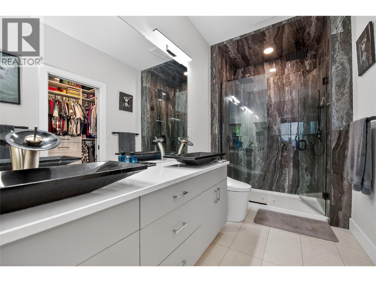 Experience elevated Okanagan living in this custom designed half duplex that captures some of the most breathtaking lake, valley & mountain views. Thoughtfully built alongside the builder w/ enhanced finishes & design details, this home offers a rare combination of luxury, comfort & everyday functionality. Step inside & you are immediately welcomed by a stunning floor to ceiling tiled gas fireplace & the wall of windows that fill the home w/ natural light. The heart of the home is the gorgeous kitchen, featuring custom cabinetry, a quartz waterfall island, gas range & plenty of space. The main floor primary bedroom offers a peaceful retreat w/ its own fireplace, a patio door, walk-in closet & spa-inspired ensuite complete with dual sinks, a tiled shower w/ double shower heads & a bidet toilet. The main level also features laundry & an additional bathroom. Off the living room leads to the covered deck, where morning coffee or BBQs can be enjoyed while taking in the sweeping views, w/ a gas hookup. The walkout lower level offers additional space w/ a family room featuring another floor to ceiling fireplace, 2 more bedrooms & a full bathroom w/ fireplace. Step outside to the lower patio & relax in the hot tub beneath the Okanagan sky. Additional highlights include hot water on demand, an attached double garage & extra parking. Just minutes from The Rise Golf Course, Silver Star Mountain Resort, Okanagan Lake & some of the region’s best wineries. (id:6769)