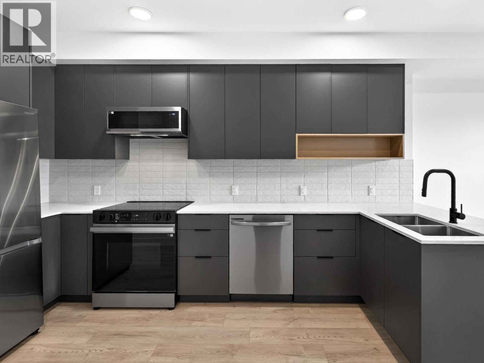 Experience modern urban living in this brand new 1-bedroom, 2-bathroom condo in Nolita, located in the heart of downtown Kelowna. This thoughtfully designed home features an open-concept layout with a versatile flex space, perfect for a home office or guest area. The stunning kitchen showcases contemporary finishes and quality craftsmanship, ideal for both everyday living and entertaining. Primary bedroom features walk through closet and ensuite. Second bathroom for guests and visitors. Step outside to your large private balcony and enjoy the vibrant city atmosphere. Nolita offers an excellent building with premium amenities, including an owners’ patio with lounge and BBQ area. Just steps to shopping, dining, parks, and the waterfront—everything you need is right here. (id:6769)