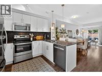 Welcome to Brighton in Kelowna's desirable Lower Mission! This stunning centrally located 2-bedroom, 2-bathroom corner unit townhome is meticulously maintained and filled with natural light. The bright open layout features stylish finishes and quality craftsmanship throughout. The kitchen showcases stainless steel appliances, beautiful cabinetry, and a quartz countertop with an island that is perfect for entertaining. The garage provides ample storage with secured parking for one vehicle plus a covered carport for the second. Additional highlights include in-suite laundry, two striking plaster feature walls, air conditioning, two generous sized bedrooms and two full bathrooms. Newly painted and move-in ready, this home offers a clean slate for its next owner. Enjoy the unbeatable convenience of being just a short walk or bike ride to the lake, beaches, highly rated schools, H2O, and all that Lower Mission has to offer. Built in 2016 by Mission Group, this private pet-friendly residence is a rare find in the complex, boasting additional fenced outdoor yard space- ideal for extra enjoyment. Don't miss the chance to make this easy-to-care-for gem your new home! (id:6769)