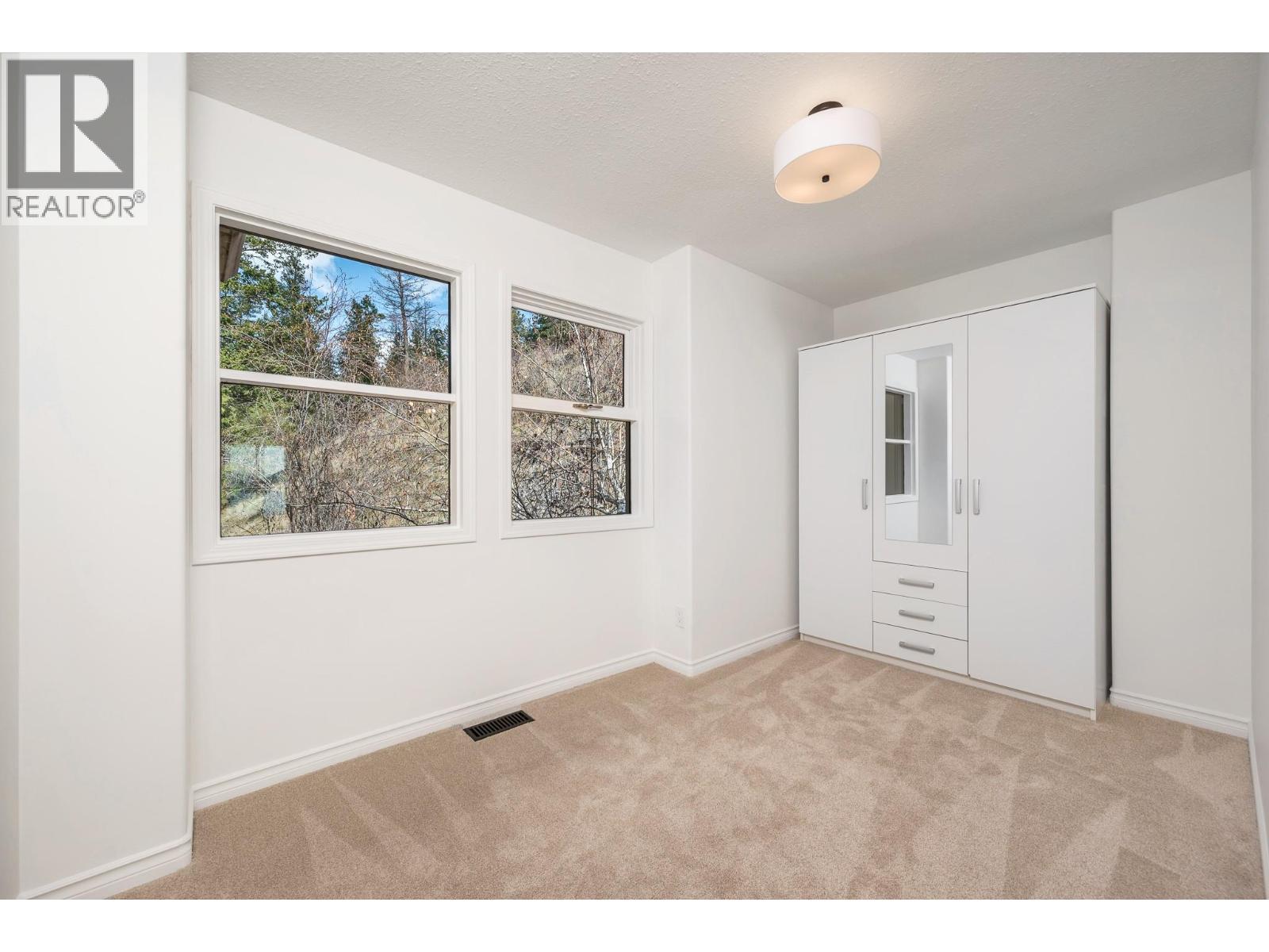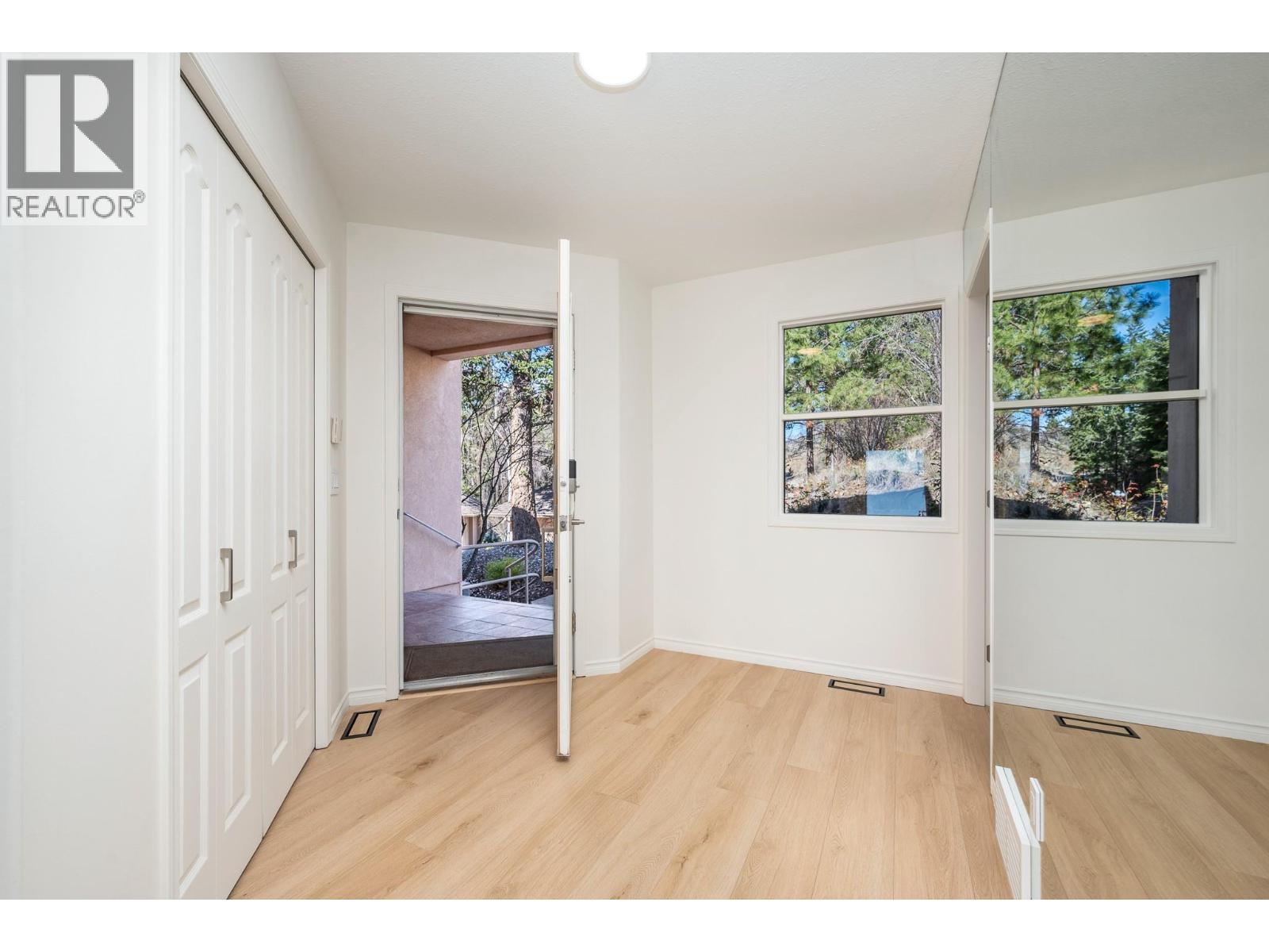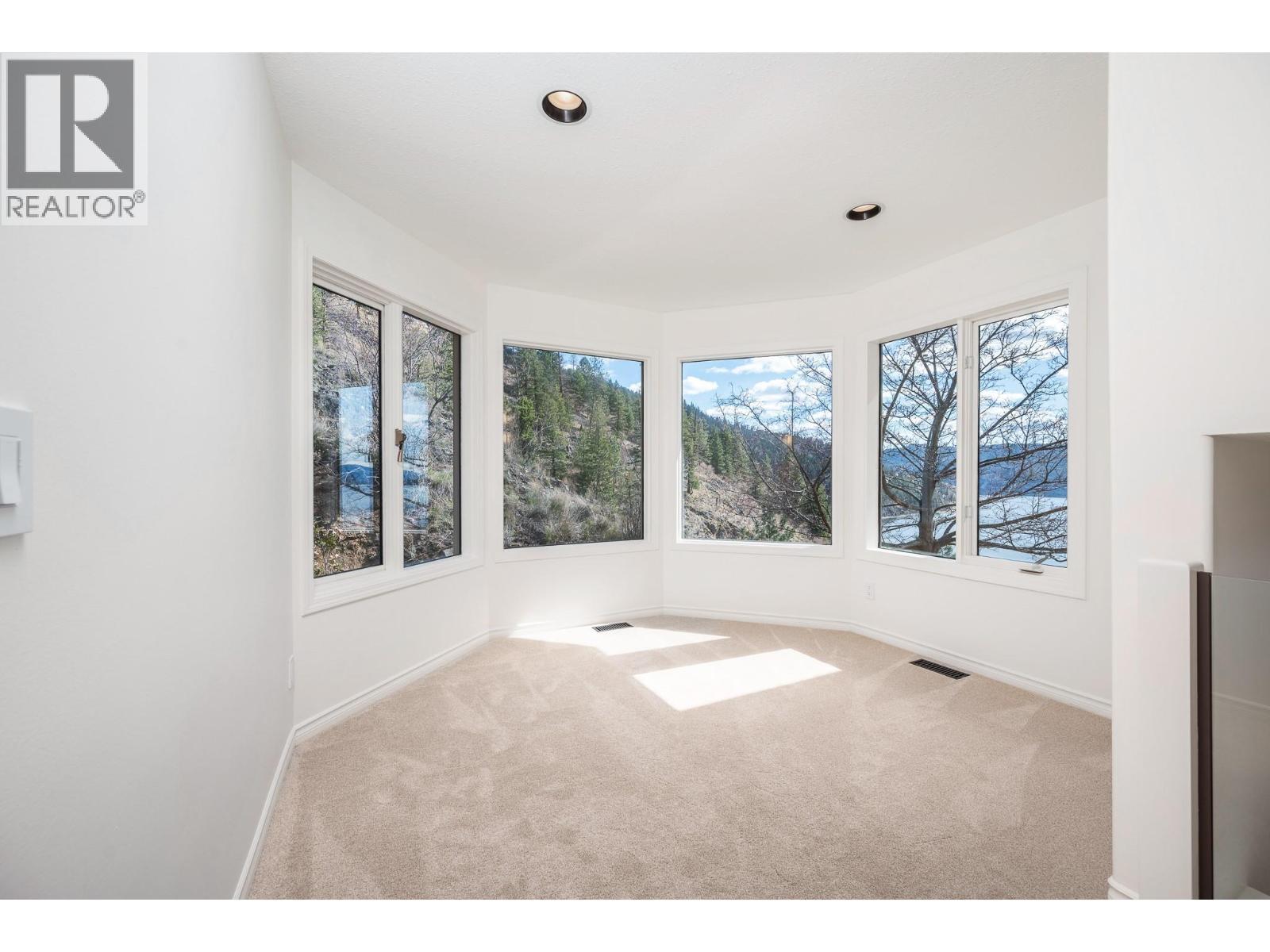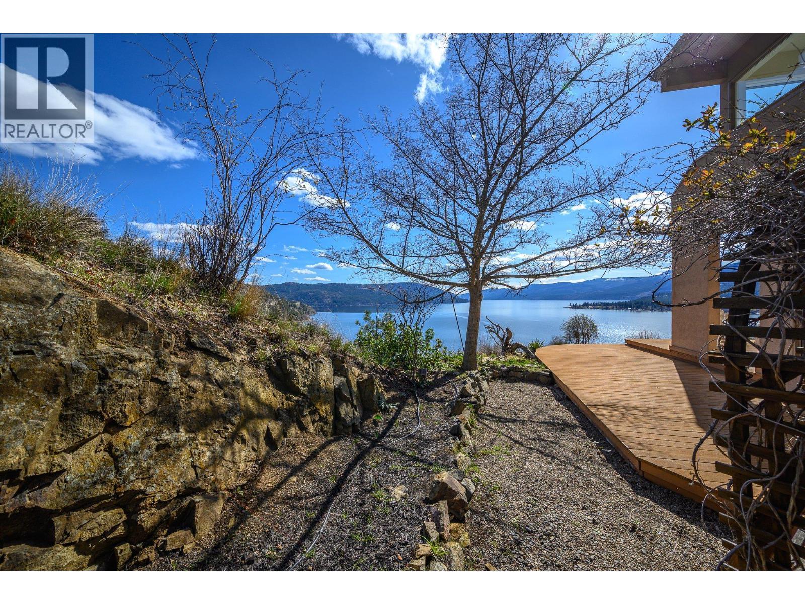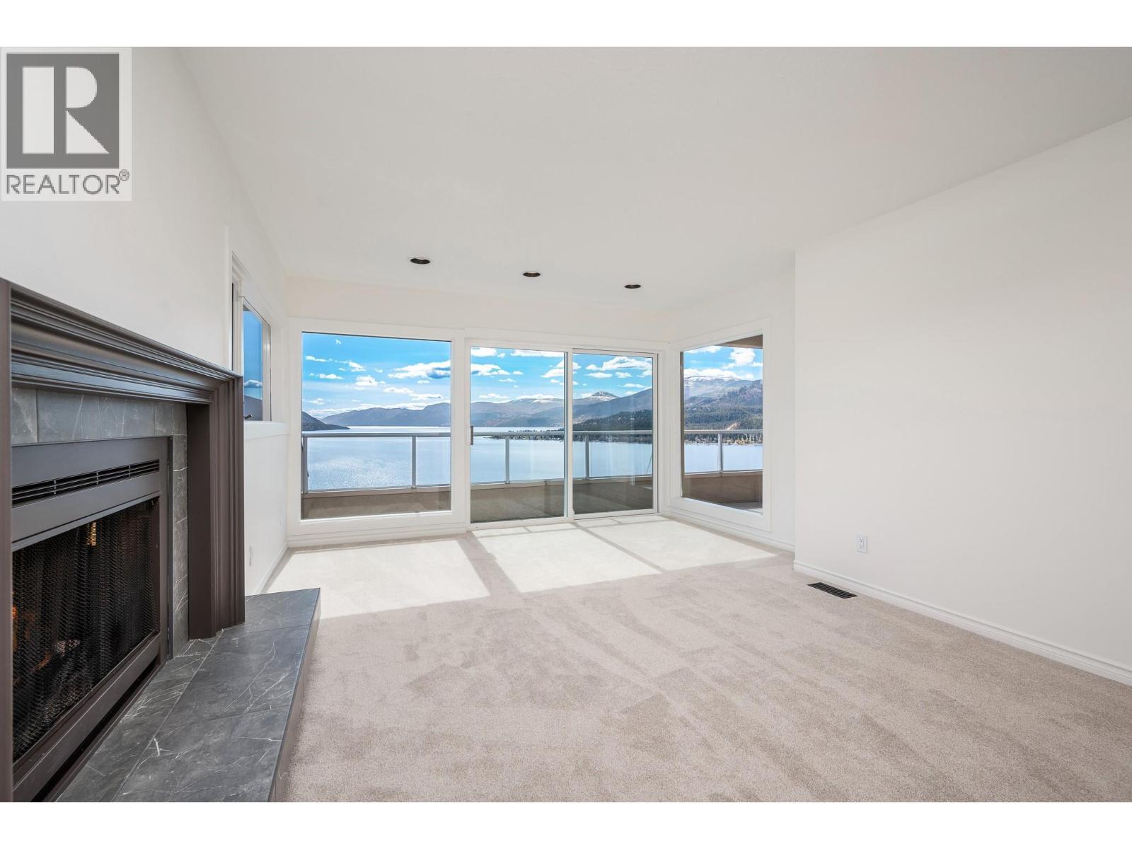 Perched on the bluffs of Okanagan Lake, this stunning end-unit townhouse offers 3 bedrooms + den, 2 bathrooms, and sweeping lake views from almost every room. With no neighbors on one side, this home feels completely private, surrounded by nature and panoramic vistas that set it apart in Peregrine Point Estates. Offering lock-and-leave convenience, year-round living, or a recreational retreat, this beautifully updated home - on the market for the first time ever - has it all! Bright living, dining, and kitchen areas feature a gas fireplace and abundant natural light, perfect for entertaining or relaxing. Upstairs the massive primary bedroom captures the incredible lake view and opens onto a balcony for sunrise and sunset views plus a private ensuite and walk in closet, The large second bedroom also enjoys balcony access and a gas fireplace. A smaller third bedroom, versatile den/sunroom, a convenient storage room + crawl space add functionality and practicality. Many thoughtful updates include fresh paint, new flooring and carpet, lighting, updated plumbing, and a new hot water tank (plus more), offering peace of mind. Residents enjoy a gated, pet-friendly community with over 500’ of private beachfront, dock, swimming, boat launch, walking paths, tennis/pickleball courts, picnic areas, and a charming gazebo. Parking includes a single garage, an extra outdoor stall, and ample guest spaces. This is a truly turnkey lakefront lifestyle opportunity. Don't miss the virtual tour! (id:6769)