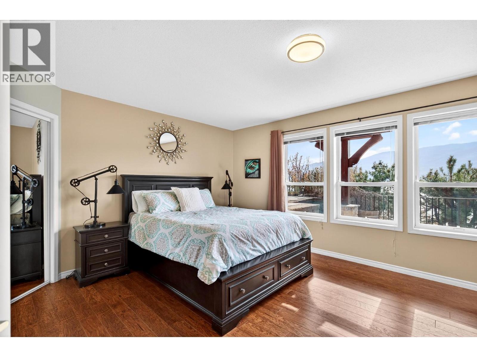 Rare semi-waterfront location! This exceptional private retreat offers breathtaking views of Okanagan Lake and backs directly onto Beach Ave. Nestled in a quiet, highly desirable neighbourhood, the property includes a licensed buoy for your boat, perfect for embracing the Okanagan lifestyle. This custom-built home showcases quality craftsmanship throughout, featuring a grand foyer, stunning quarried stone, and beautiful exposed wooden beams. This well-maintained residence offers 3 bedrooms + office and a media room that could double as a home gym. A spacious loft with a balcony has endless possibilities as a studio, games room, or additional bedroom. The finished walkout basement features a separate entrance with a privacy door, plus a wet bar that provides your guests’ ultimate privacy with the potential to suite. Step outside to your serene, private backyard oasis, complete with more quarried stone, wooden beams, extensive stamped concrete, and an impressive marble fire table. This beautifully landscaped backyard with no lawn to cut offers direct access to Beach Ave via private stairs. Multiple decks and outdoor living spaces create the perfect setting to relax or entertain while listening to the waves or watching kayakers pass by. This move-in-ready home features lots of fresh paint throughout and is smoke and pet-free. Furniture is negotiable. Hot water tank (2026), poly-B replaced (2024), garage heated (2016), furnace (2017), roof (2018). Smart irrigation system. (id:6769)