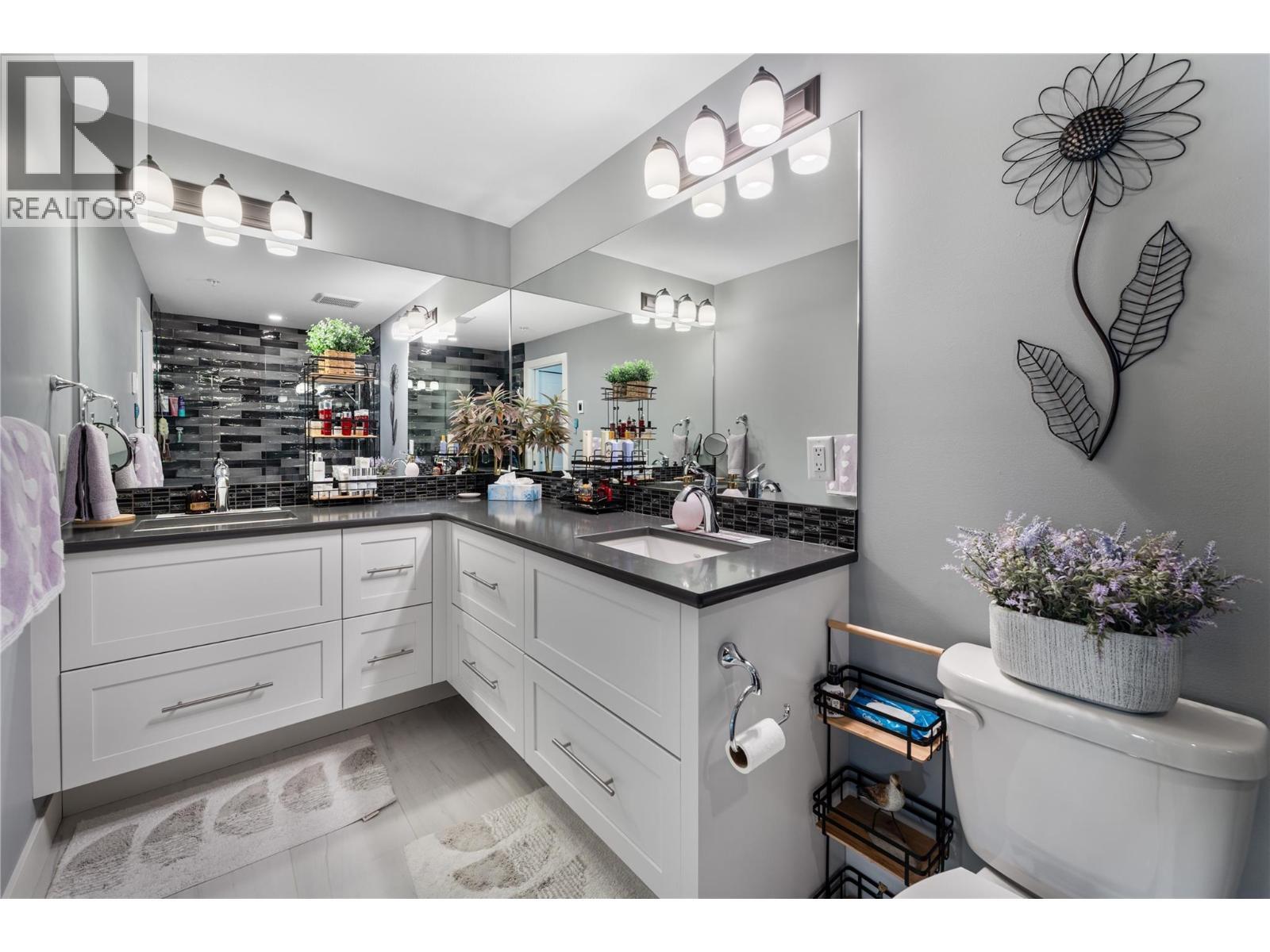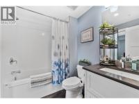 Stunning lakeview 2 bedroom, 2 bathroom condo offering two spacious balconies. This thoughtfully designed floorplan features custom finishes throughout, including over $30,000 in California Closets upgrades that add both function and a high-end, tailored feel. The chef inspired kitchen offers stainless steel appliances, custom cabinetry, a pantry, and a large island that anchors the open concept living and dining space, complete with a Dimplex electric fireplace and ideal for entertaining. The primary bedroom offers a private retreat with a beautifully appointed ensuite featuring a generous walk in shower, along with access to a covered deck perfect for morning coffee with breathtaking lake views. A second full bathroom with a bathtub provides comfort for guests or family. Enjoy year round comfort with forced air heating, central air conditioning, and on demand hot water, complemented by a fresh, modern designer colour palette that shows like new. An oversized storage locker on the same floor adds everyday convenience. At Granite, residents enjoy a rooftop pool and hot tub, plus full access to McKinley Beach amenities including a marina, fitness centre, courts, gardens, and the Our Place Amenity Centre. Located 15 minutes to the airport, 20 minutes to downtown Kelowna, and 6 minutes to Glenmore shopping, this home offers the perfect blend of luxury, convenience, and lakeside living. (id:6769)