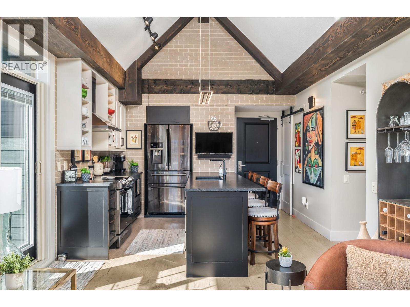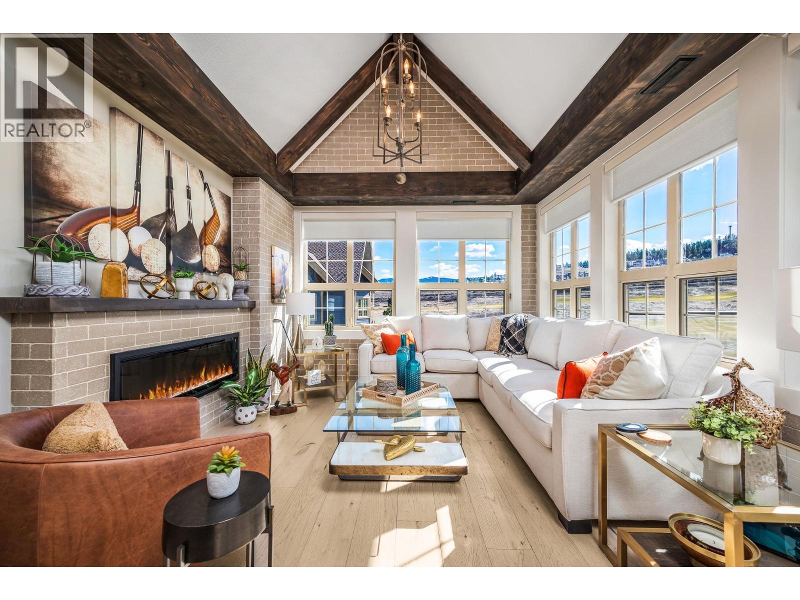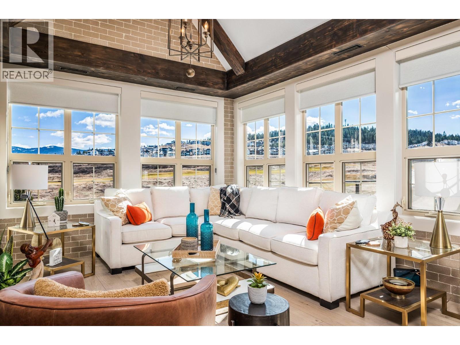 EXCEPTIONAL, ONE-OF-A-KIND TOP-FLOOR SUITE! VAULTED CEILINGS, SOUTHEAST EXPOSURE, BREATHTAKING VIEWS OF THE GOLF COURSE! This stunning suite is ideal as a full-time residence or an investment opportunity with revenue potential through Predator Ridge. Experience the perfect balance of privacy & convenience, just steps away from the first tee & clubhouse. Full renovation just 4 years ago: fir beams in the living area, a striking brick feature wall with a 52"" linear fireplace featuring a 7-color display and remote control & 8"" wide White Oak engineered hardwood floors. The kitchen boasts custom cabinetry, honed granite countertops, SS appliances with a induction oven, designer lighting & Hunter Douglas window coverings. Additional features include built-in shelves at the entry, a pantry & floor-to-ceiling, wall-to-wall custom closets in the main bedroom. The main bath offers luxurious touches such as curbless showers, free-standing tub, under-mount sinks, heated flooring & two recessed mirrored toiletry cabinets. Second bedroom includes a built-in Murphy bed, perfect for guests or flexible use. Ownership includes access to an outdoor pool, lounge area, hot tub, BBQ area, as well as access to the Fitness Centre, which offers an indoor pool, hot tub, steam rooms, weight room & yoga studio. Enjoy two world-class golf courses, multiple dining options, a market & miles of hiking & biking trails. Only 45 minutes to Silver Star & 25 minutes to Kelowna International Airport. GST Paid. (id:6769)