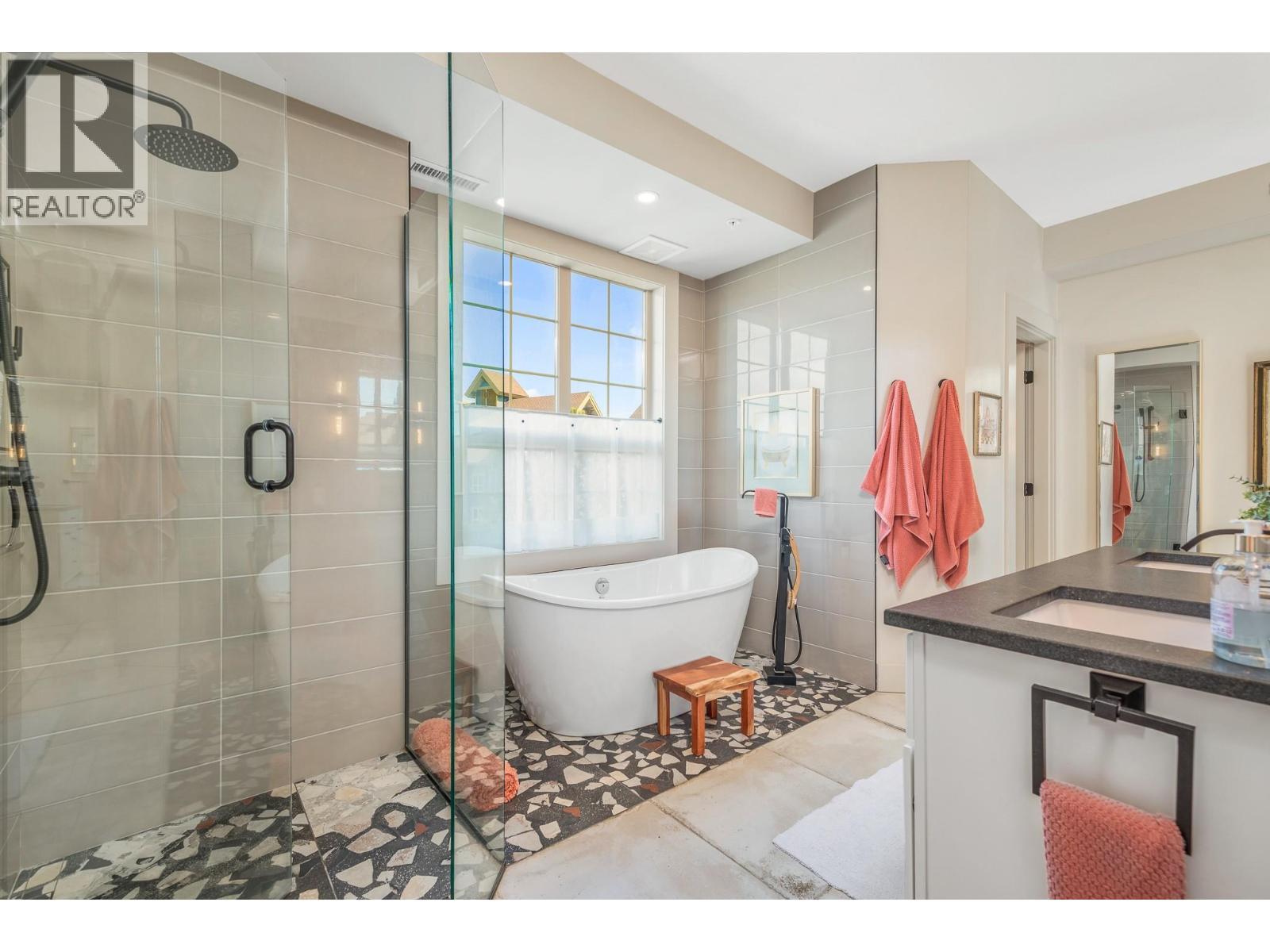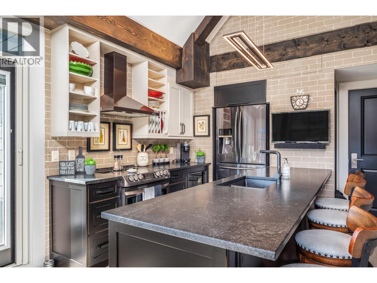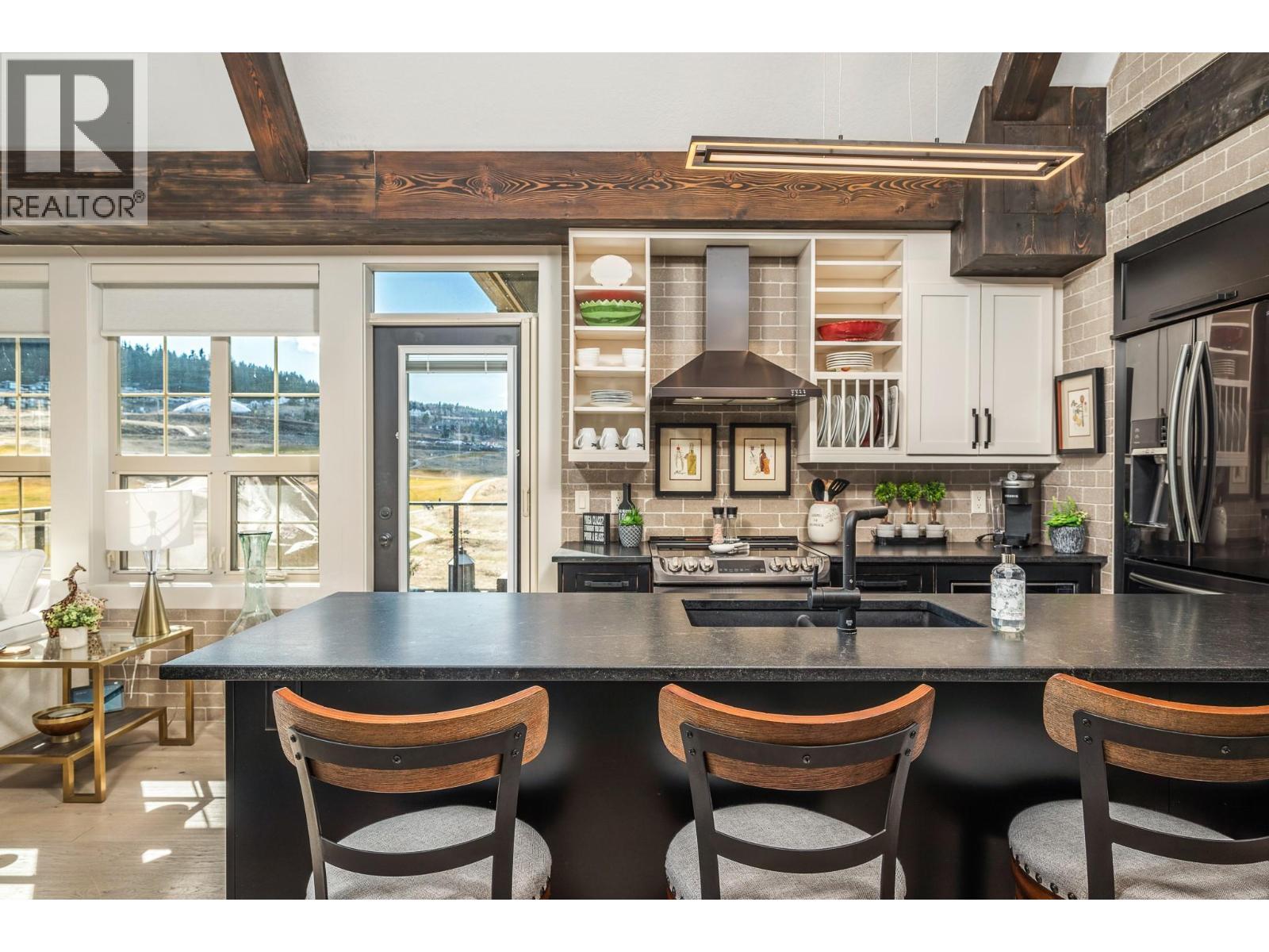EXCEPTIONAL, ONE-OF-A-KIND TOP-FLOOR SUITE! VAULTED CEILINGS, SOUTHEAST EXPOSURE, BREATHTAKING VIEWS OF THE GOLF COURSE! This stunning suite is ideal as a full-time residence or an investment opportunity with revenue potential through Predator Ridge. Experience the perfect balance of privacy & convenience, just steps away from the first tee & clubhouse. Full renovation just 4 years ago: fir beams in the living area, a striking brick feature wall with a 52"" linear fireplace featuring a 7-color display and remote control & 8"" wide White Oak engineered hardwood floors. The kitchen boasts custom cabinetry, honed granite countertops, SS appliances with a induction oven, designer lighting & Hunter Douglas window coverings. Additional features include built-in shelves at the entry, a pantry & floor-to-ceiling, wall-to-wall custom closets in the main bedroom. The main bath offers luxurious touches such as curbless showers, free-standing tub, under-mount sinks, heated flooring & two recessed mirrored toiletry cabinets. Second bedroom includes a built-in Murphy bed, perfect for guests or flexible use. Ownership includes access to an outdoor pool, lounge area, hot tub, BBQ area, as well as access to the Fitness Centre, which offers an indoor pool, hot tub, steam rooms, weight room & yoga studio. Enjoy two world-class golf courses, multiple dining options, a market & miles of hiking & biking trails. Only 45 minutes to Silver Star & 25 minutes to Kelowna International Airport. GST Paid. (id:6769)